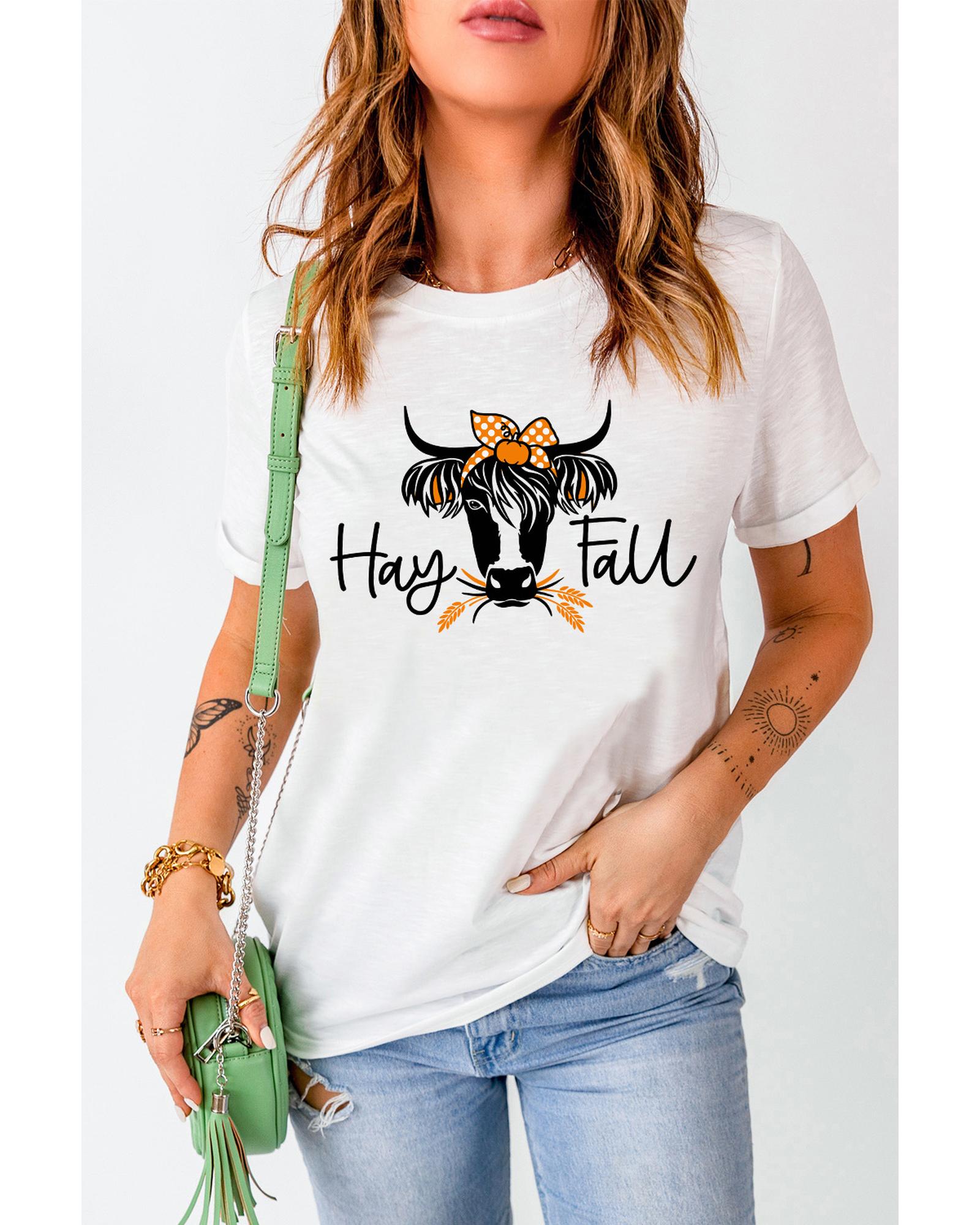 Stylish and trendy White Hay Fall Cow Head Graphic Tee Made from high - quality materials Short sleeve tee with a unique cow head print design Available in multiple sizes Size chart provided for easy reference Relaxed fit for comfortable wear Perfect for casual occasions Add a touch of luxury to your everyday style