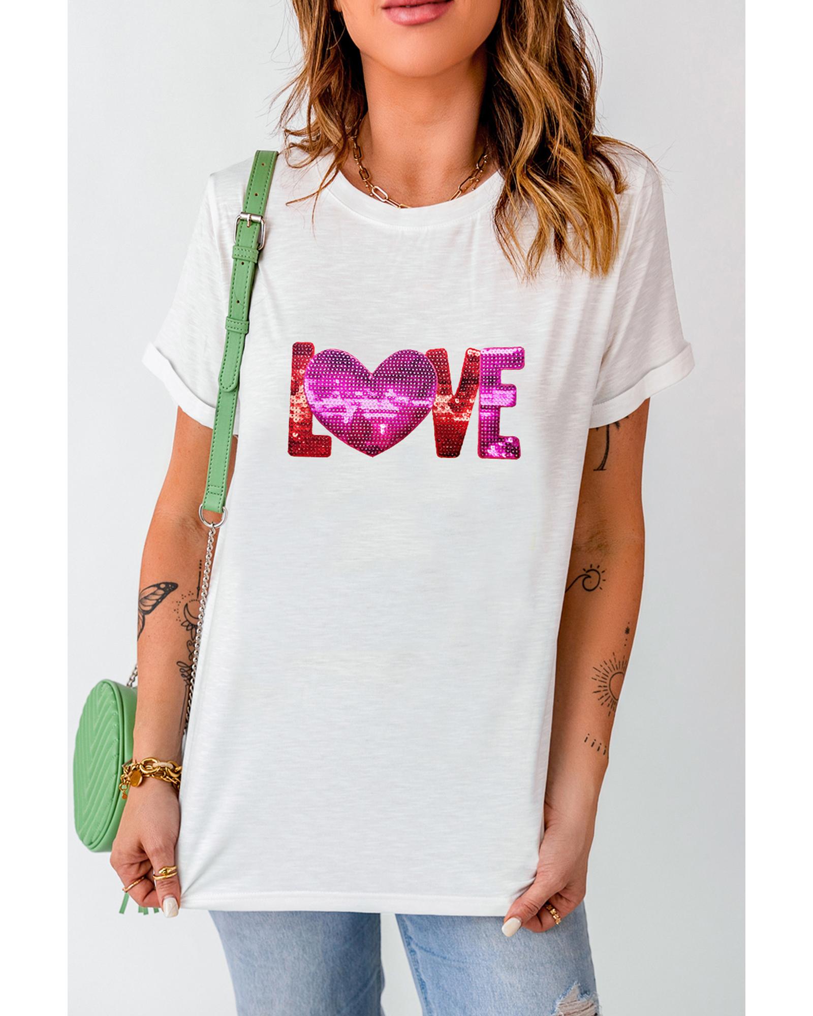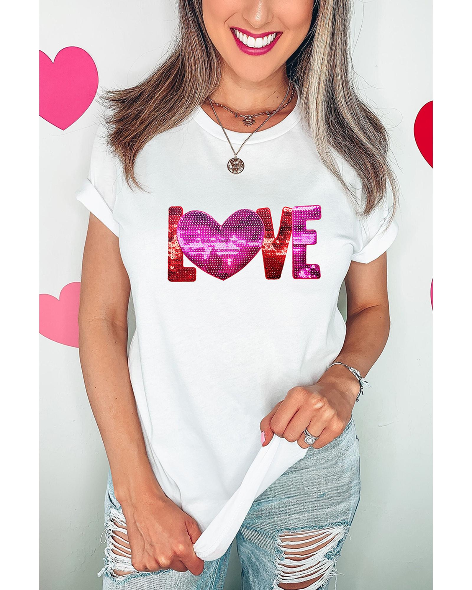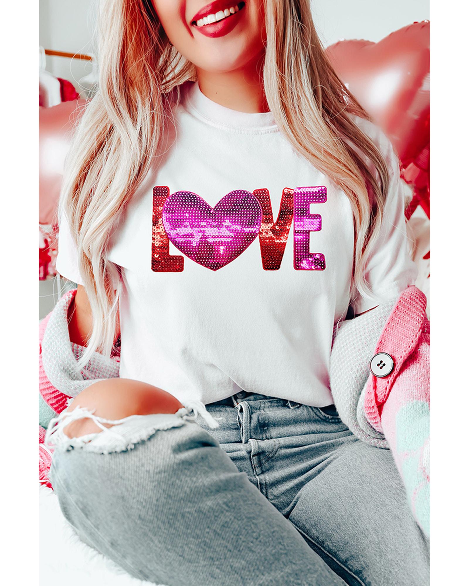 White Heart LOVE Patched Pattern Crewneck Valentines T Shirt – 2XL