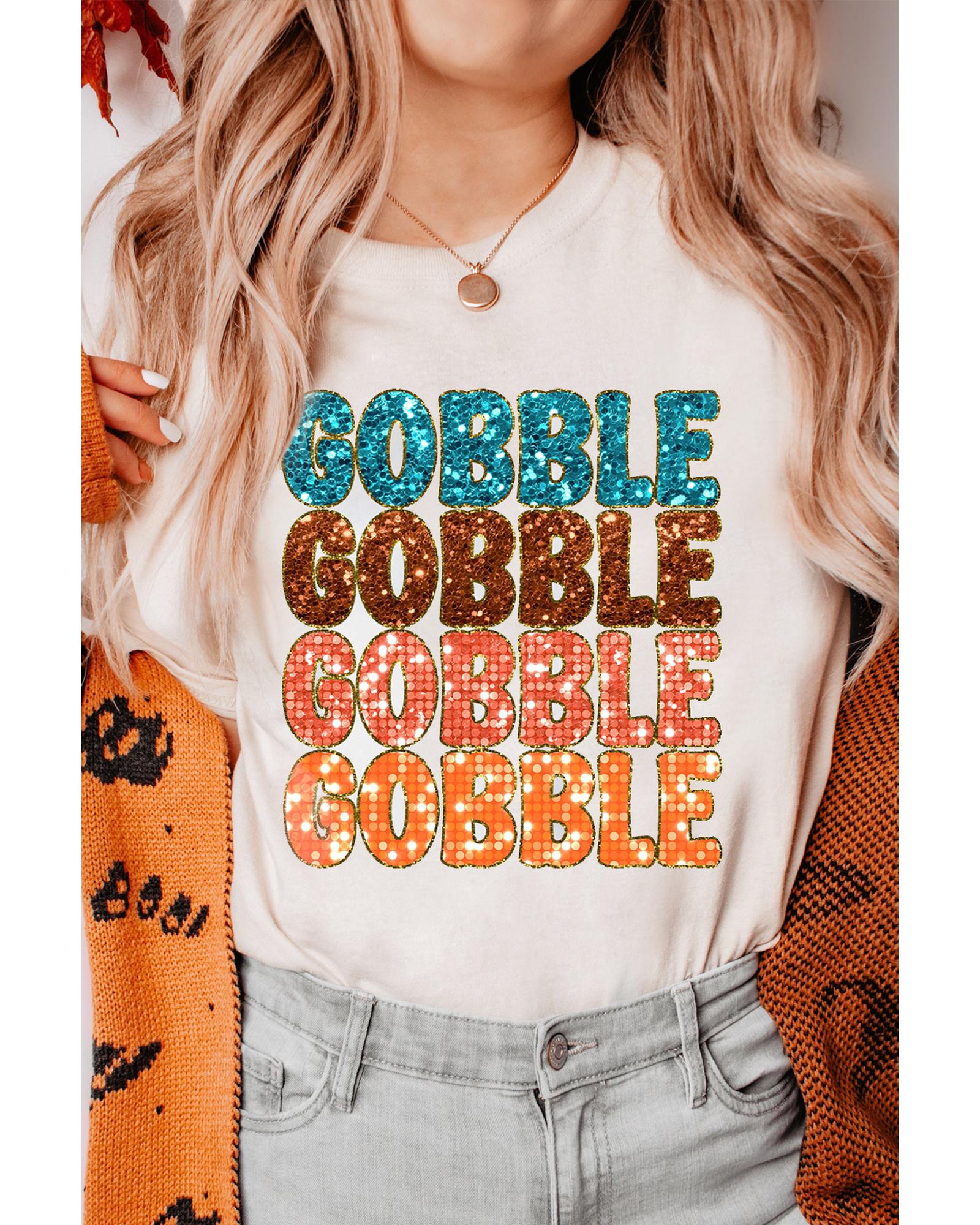 - White Heat Transfer GOBBLE Graphic Crewneck Thanksgiving T