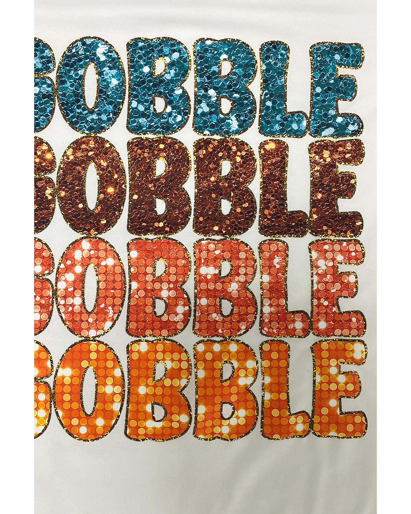- White Heat Transfer GOBBLE Graphic Crewneck Thanksgiving T
