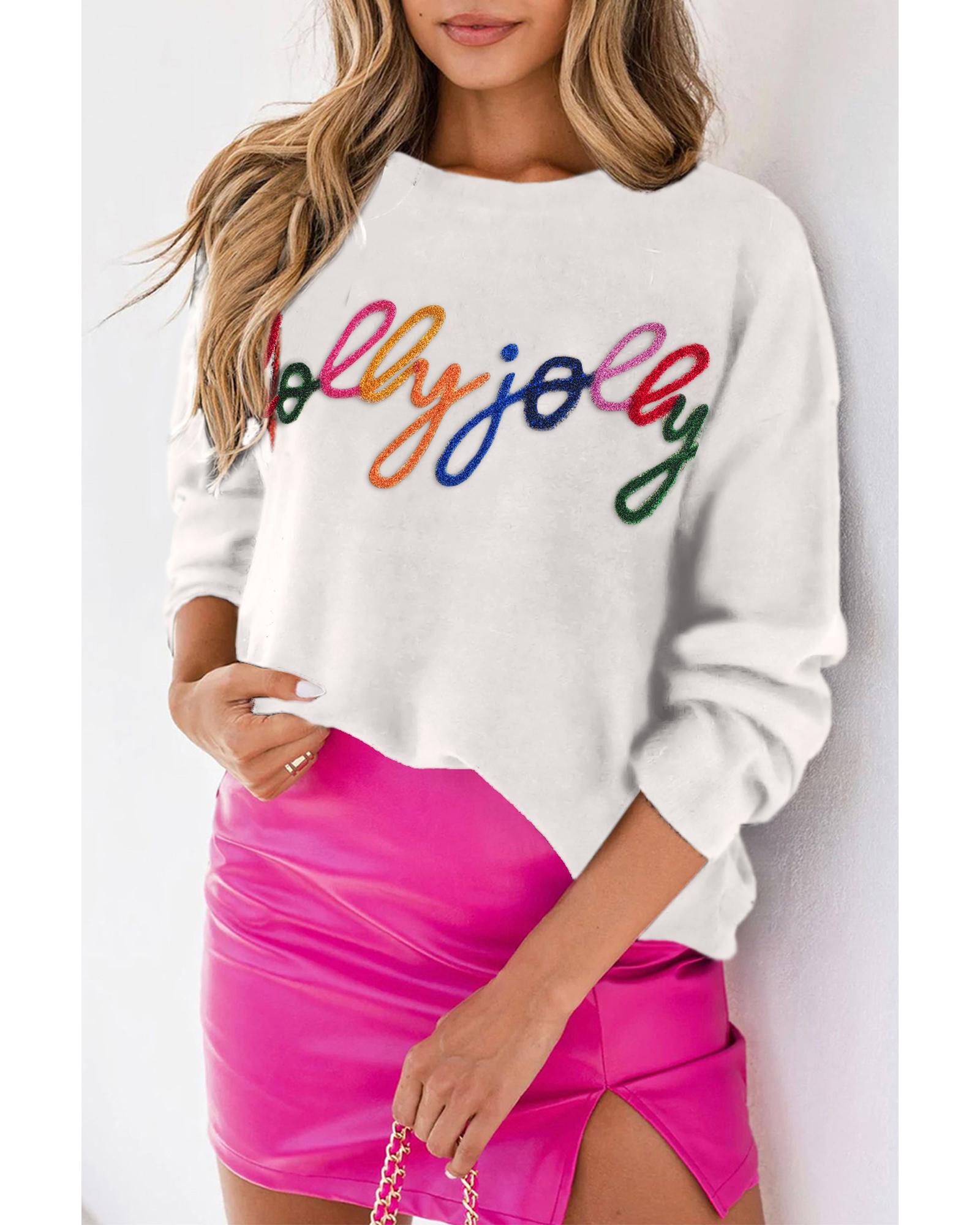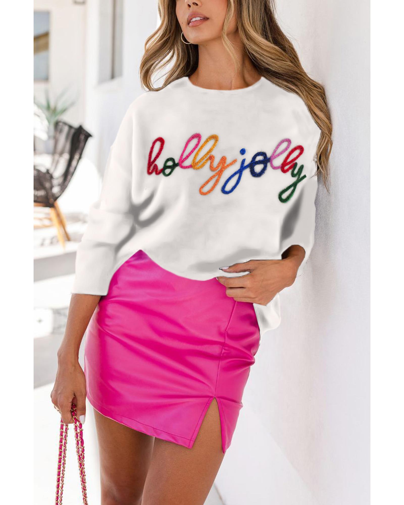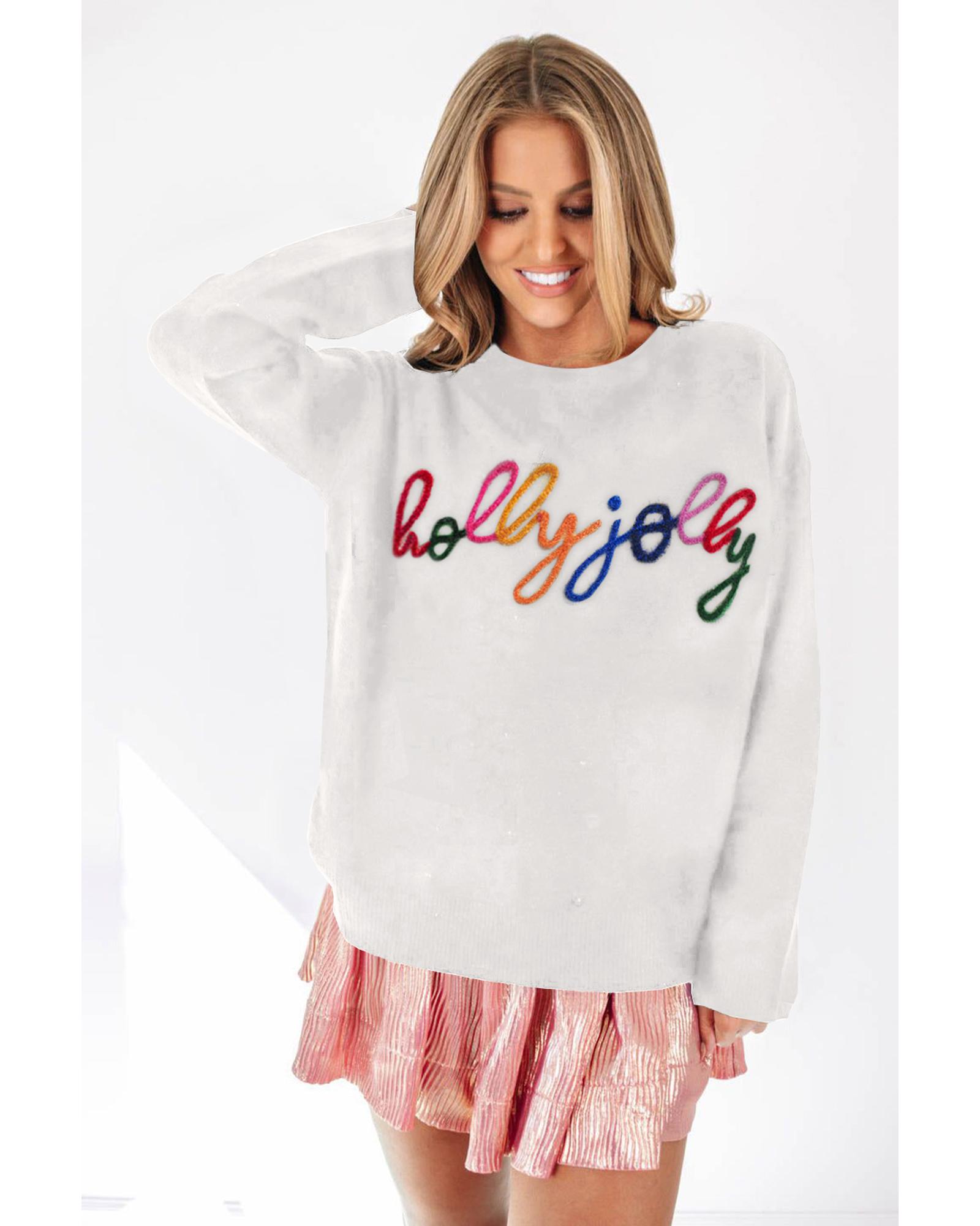White Holly Jolly Round Neck Casual Sweater – XL