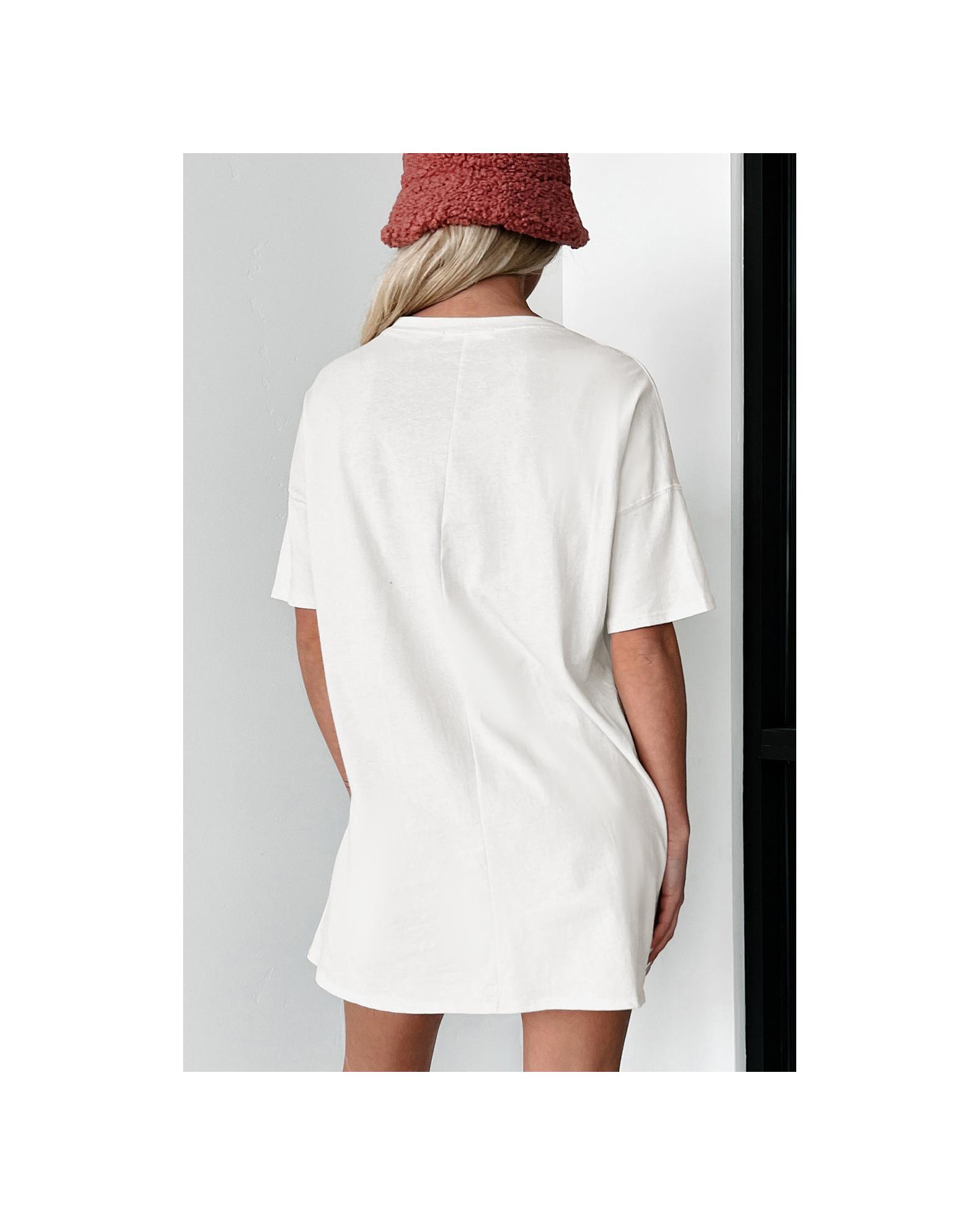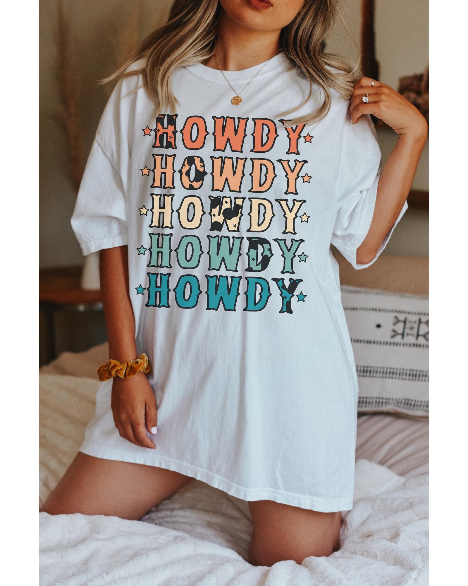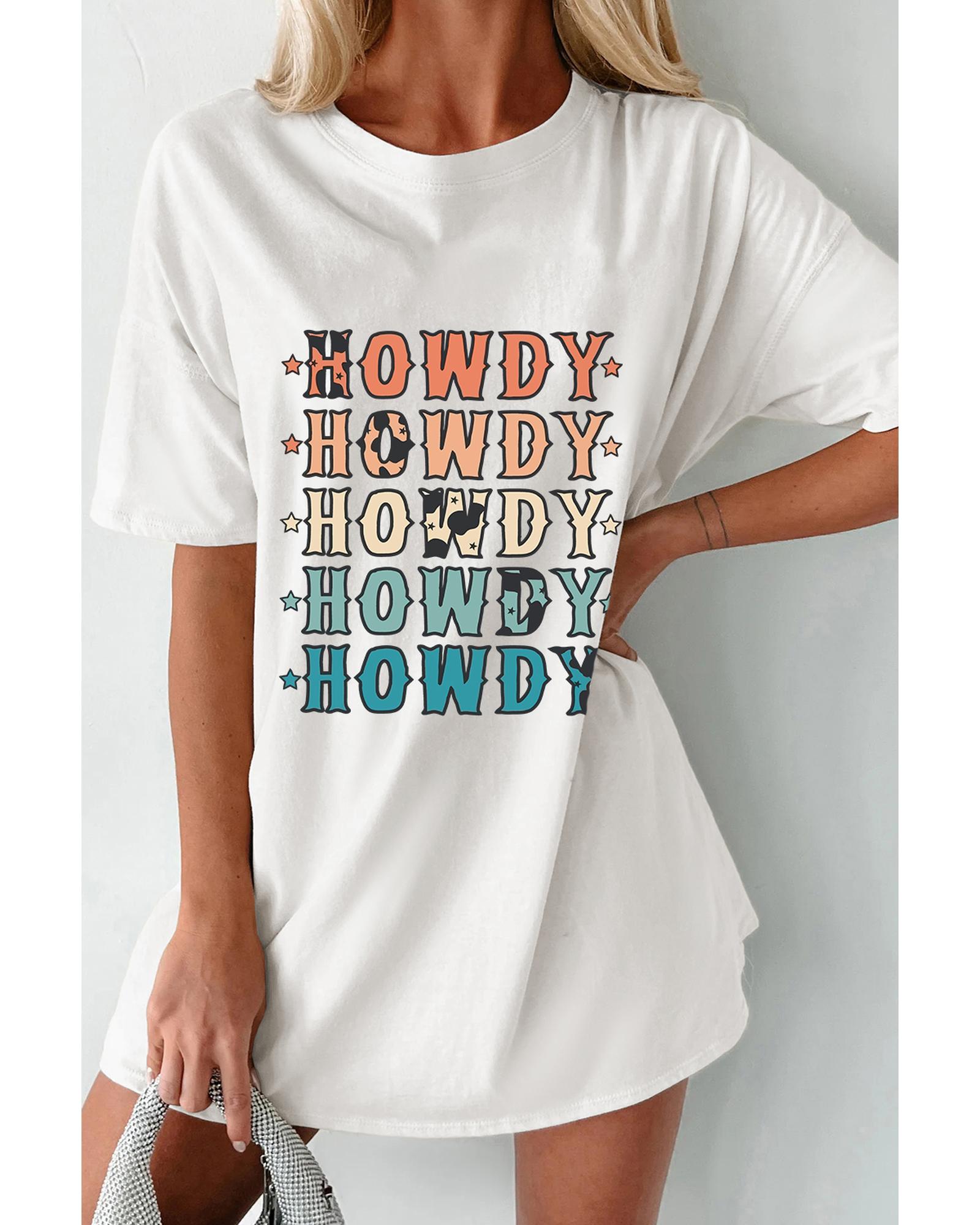 White HOWDY Stars Print Crew Neck Loose Fit T Shirt – M