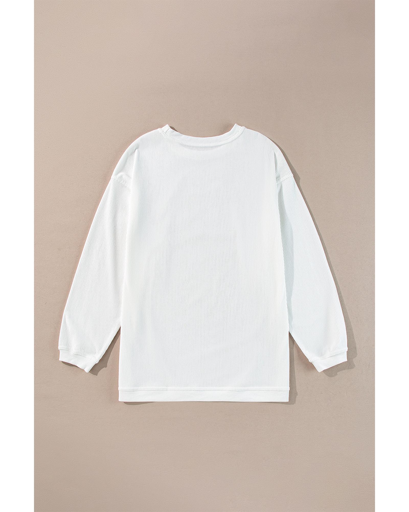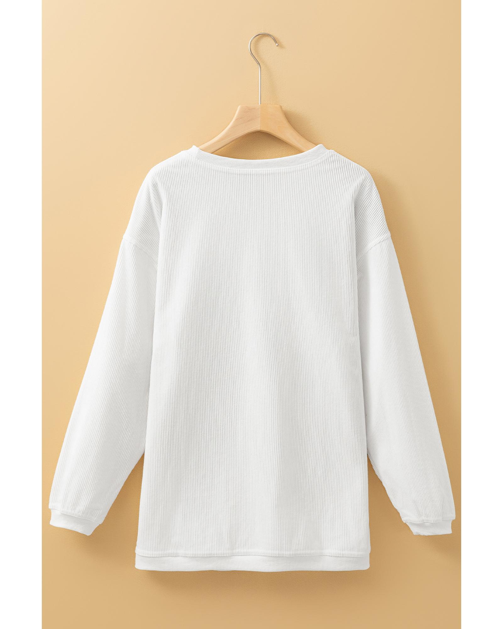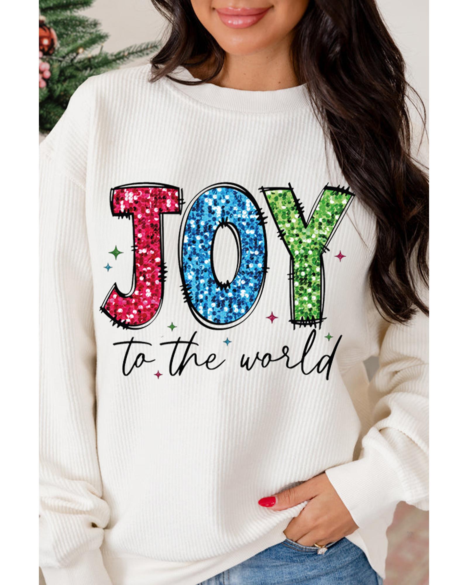 White JOY to the world Ribbed Crewneck Pullover Sweatshirt – M