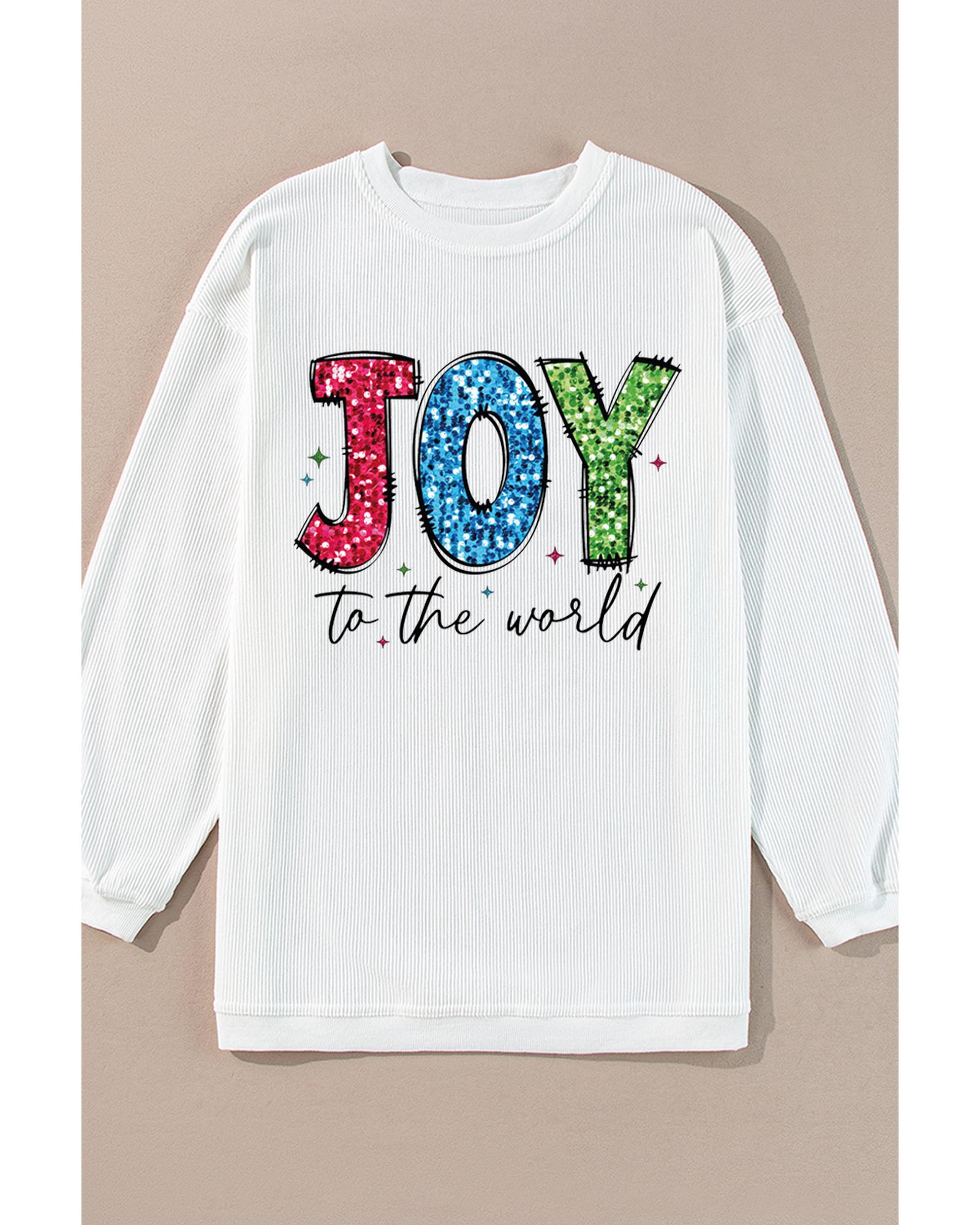 White JOY to the world Ribbed Crewneck Pullover Sweatshirt – S
