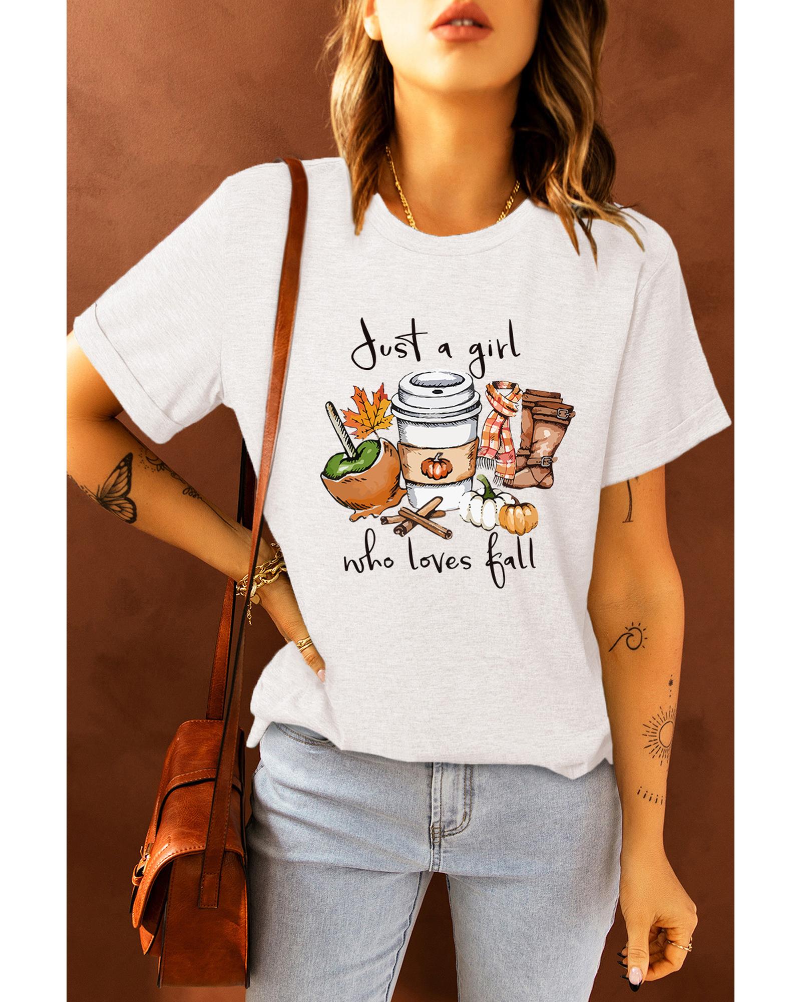 White Just A Girl Who Loves Fall Graphic T Shirt Fall Vibe Graphic Print Crew Neck High - quality materials Stylish and unique design Comfortable and relaxed fit Versatile and easy to style Available in multiple sizes