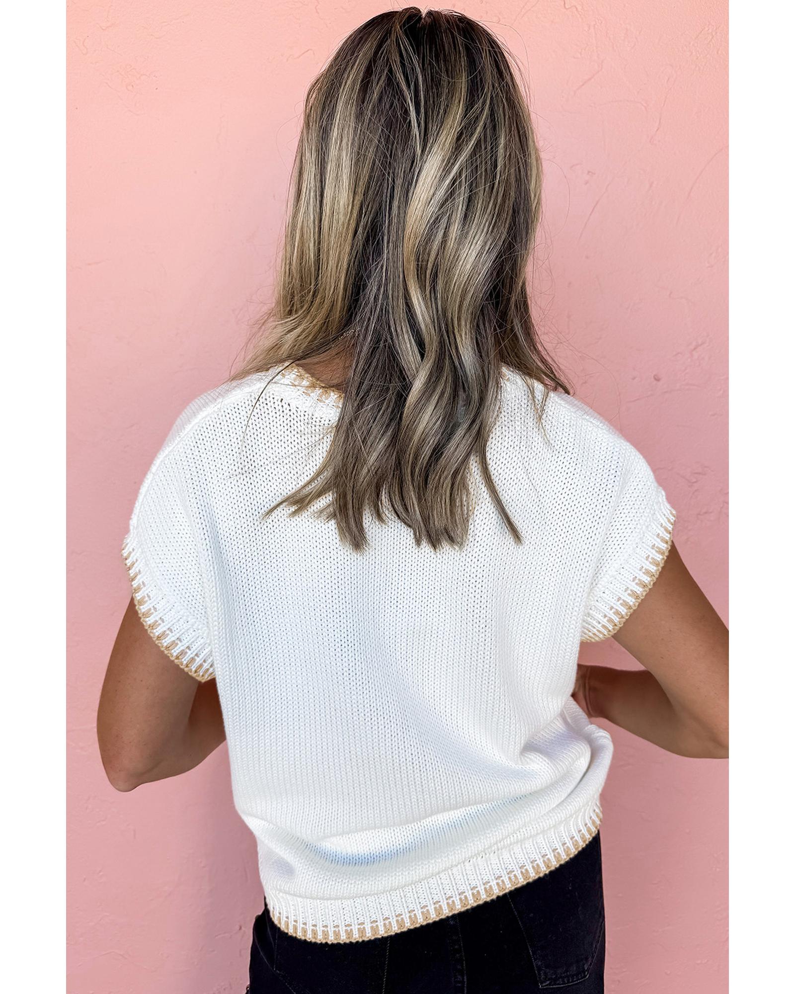 White Knitted YEEHAW Stitch Edge Crew Neck Sweater T Shirt – XL