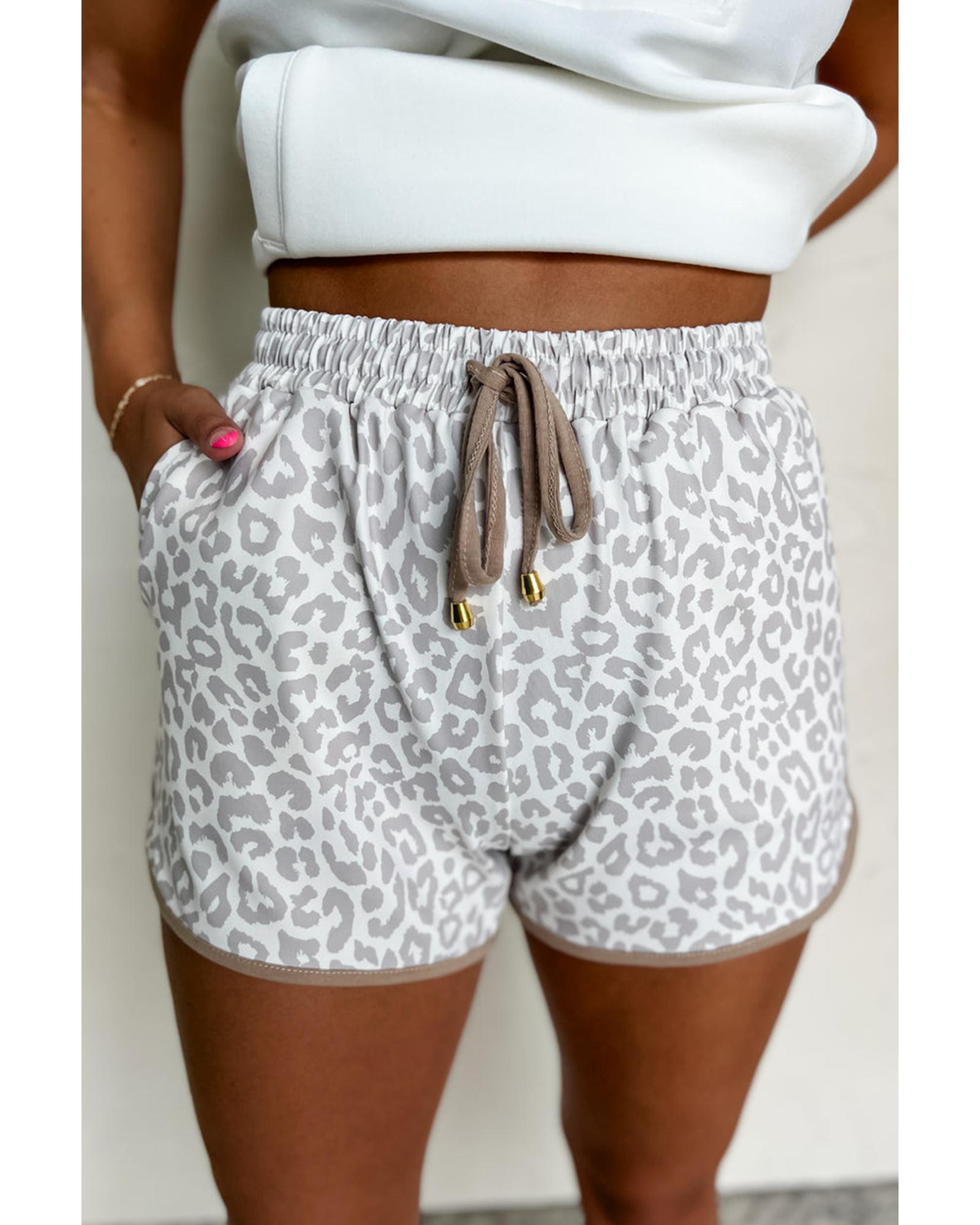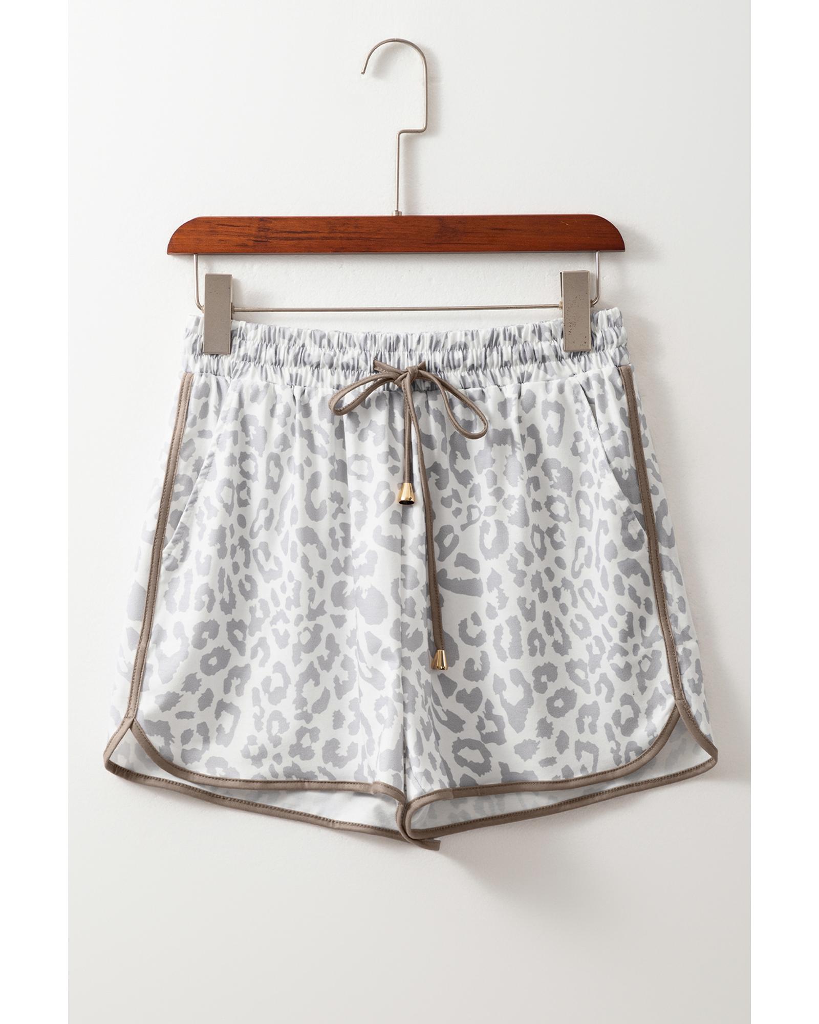 White Leopard Elastic Waist Lace up Contrast Trim Casual Shorts – M