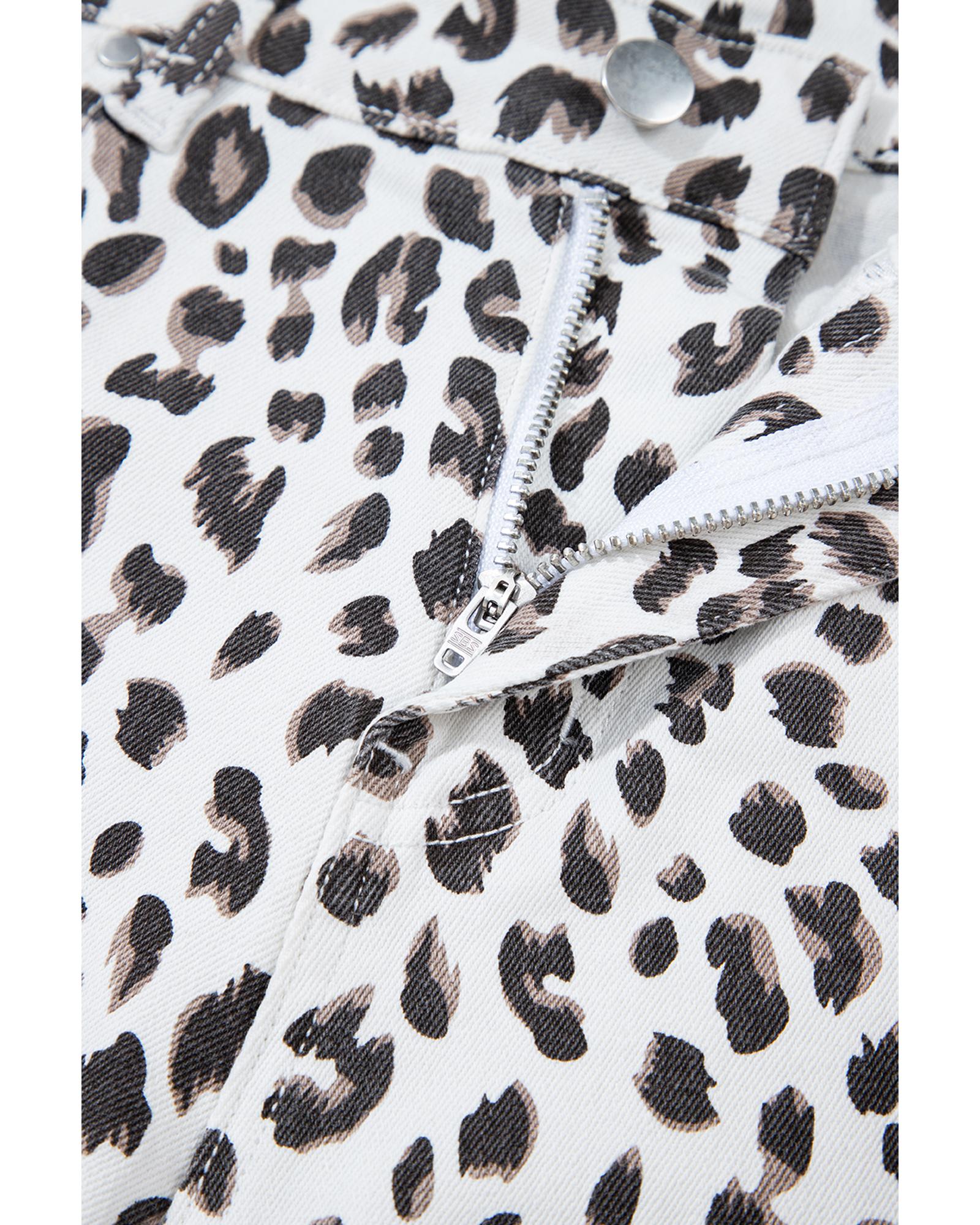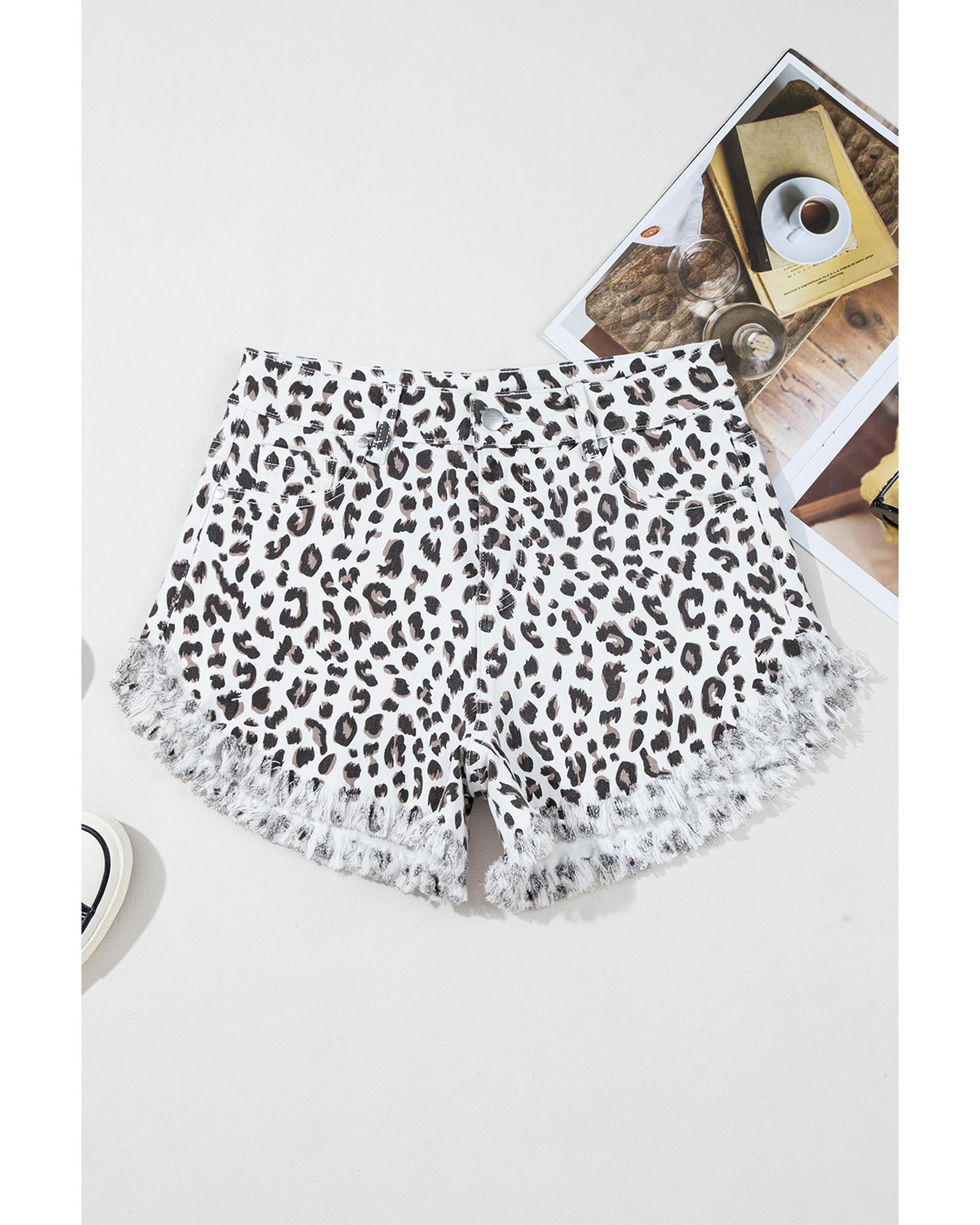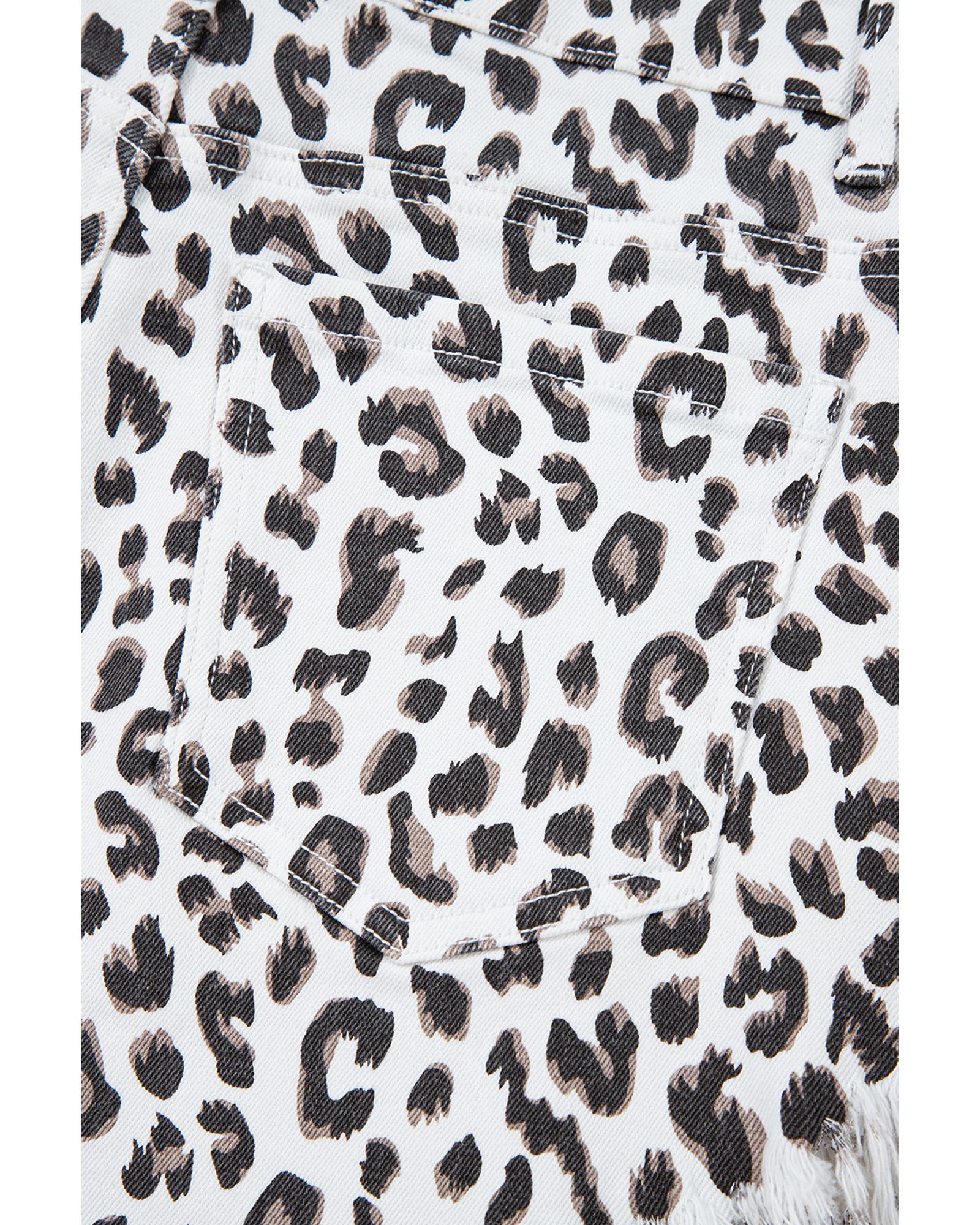 White Leopard Frayed Hem Denim Shorts – 12 US