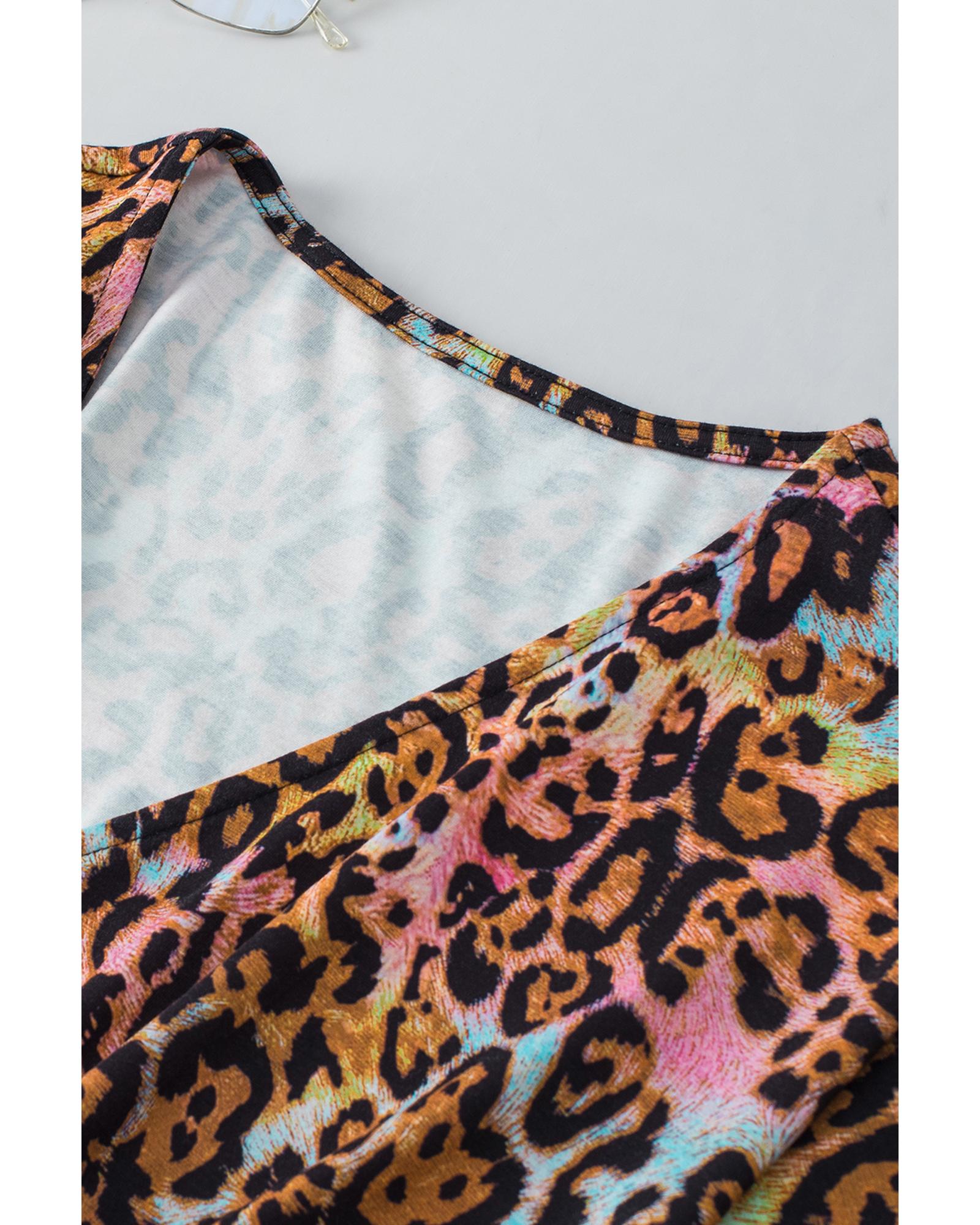 White Leopard Print Wide Sleeve Peplum Hem Blouse – L