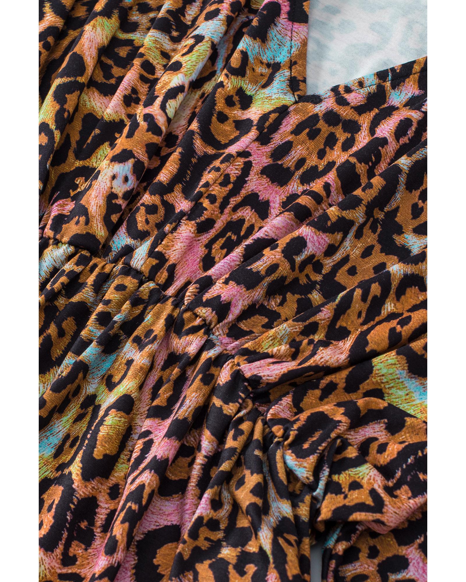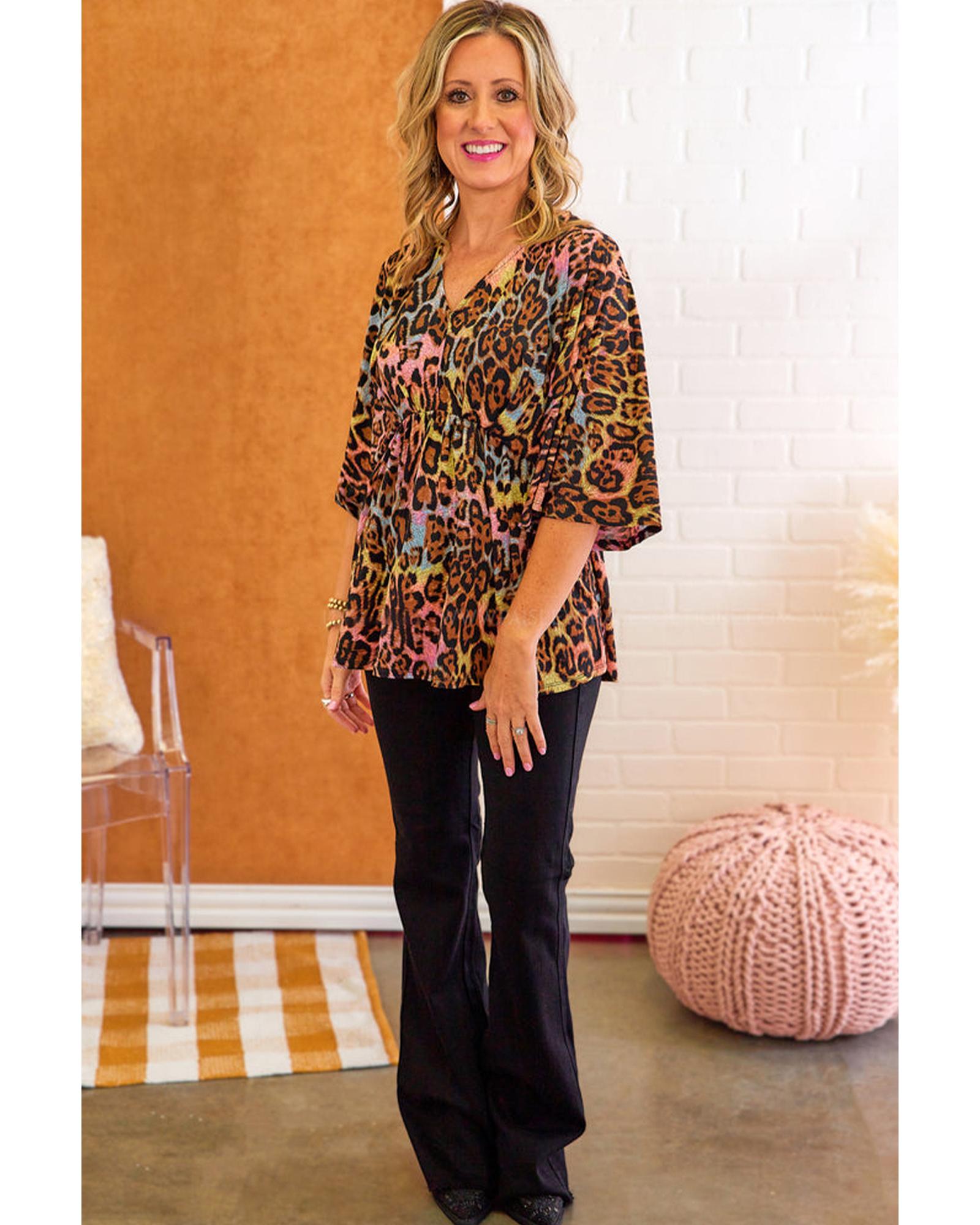 White Leopard Print Wide Sleeve Peplum Hem Blouse – S