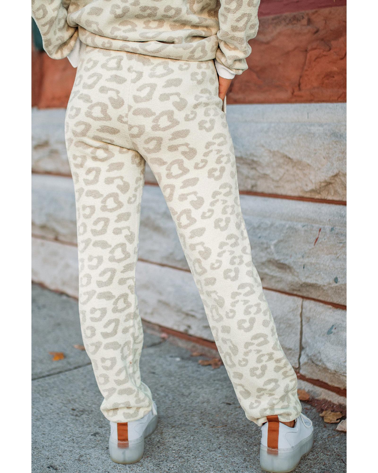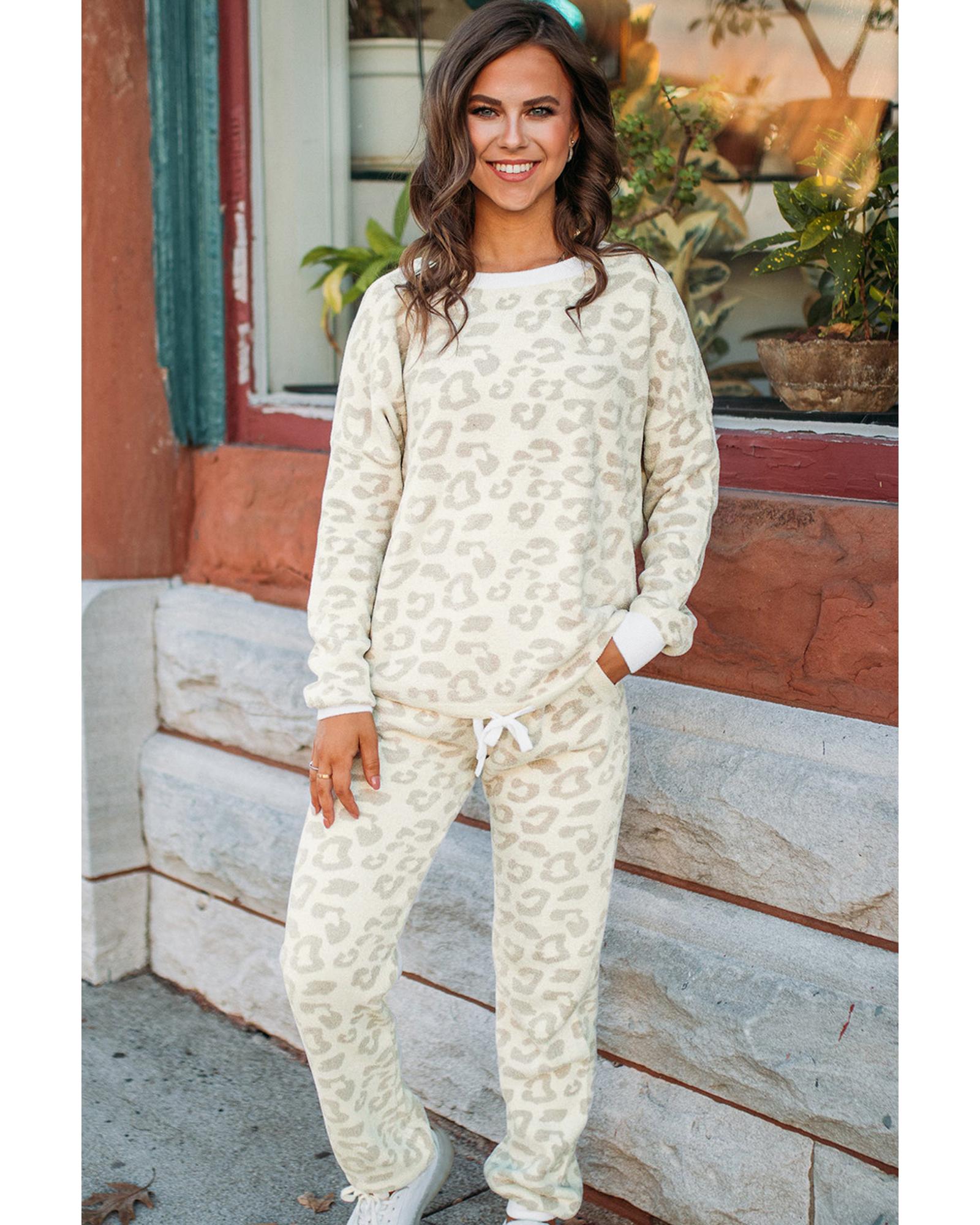 White Leopard Pullover and Drawstring Pants Lounge Set – XL
