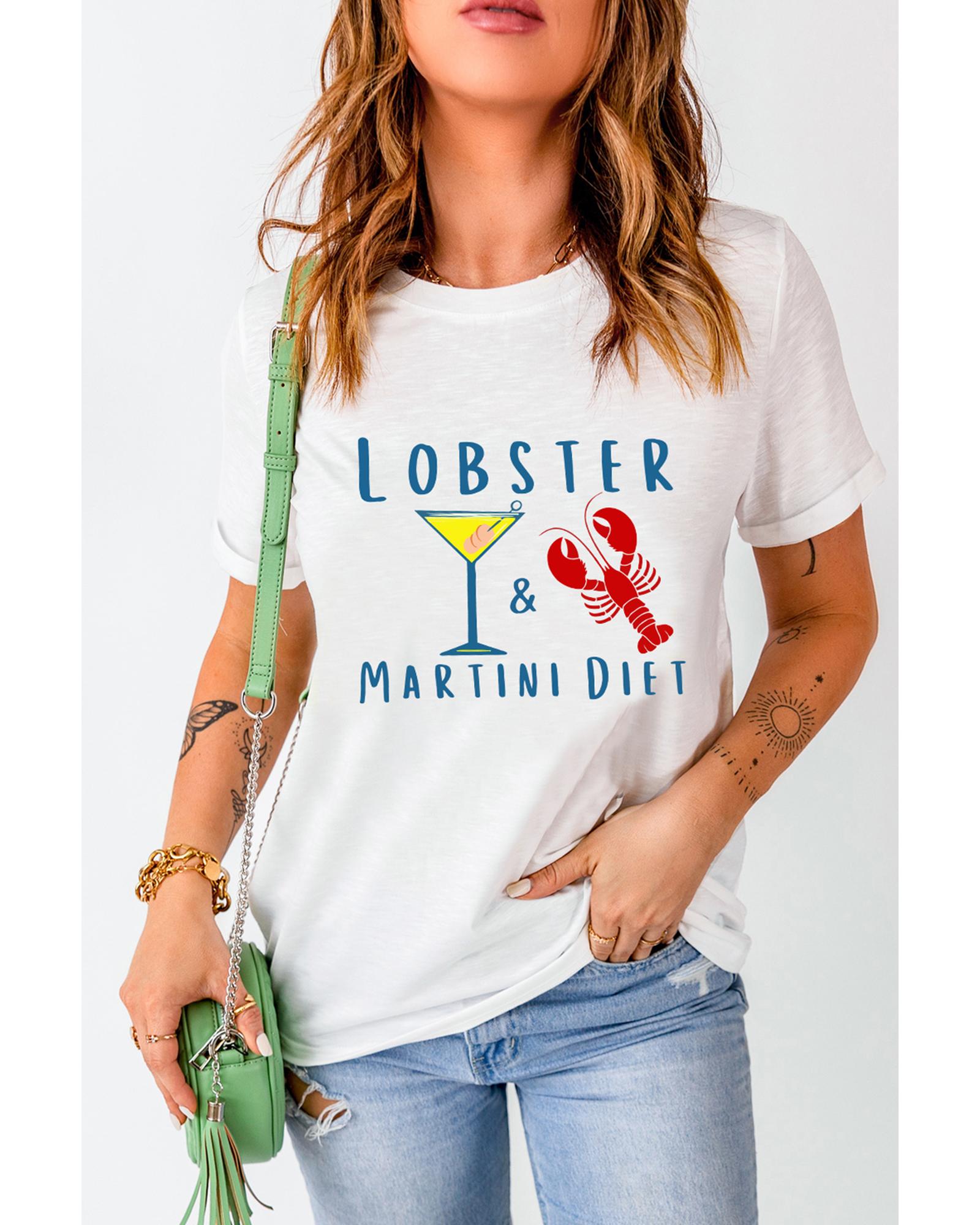 - White LOBSTER MARTINI DIET Cocktail & Crawfish Print T