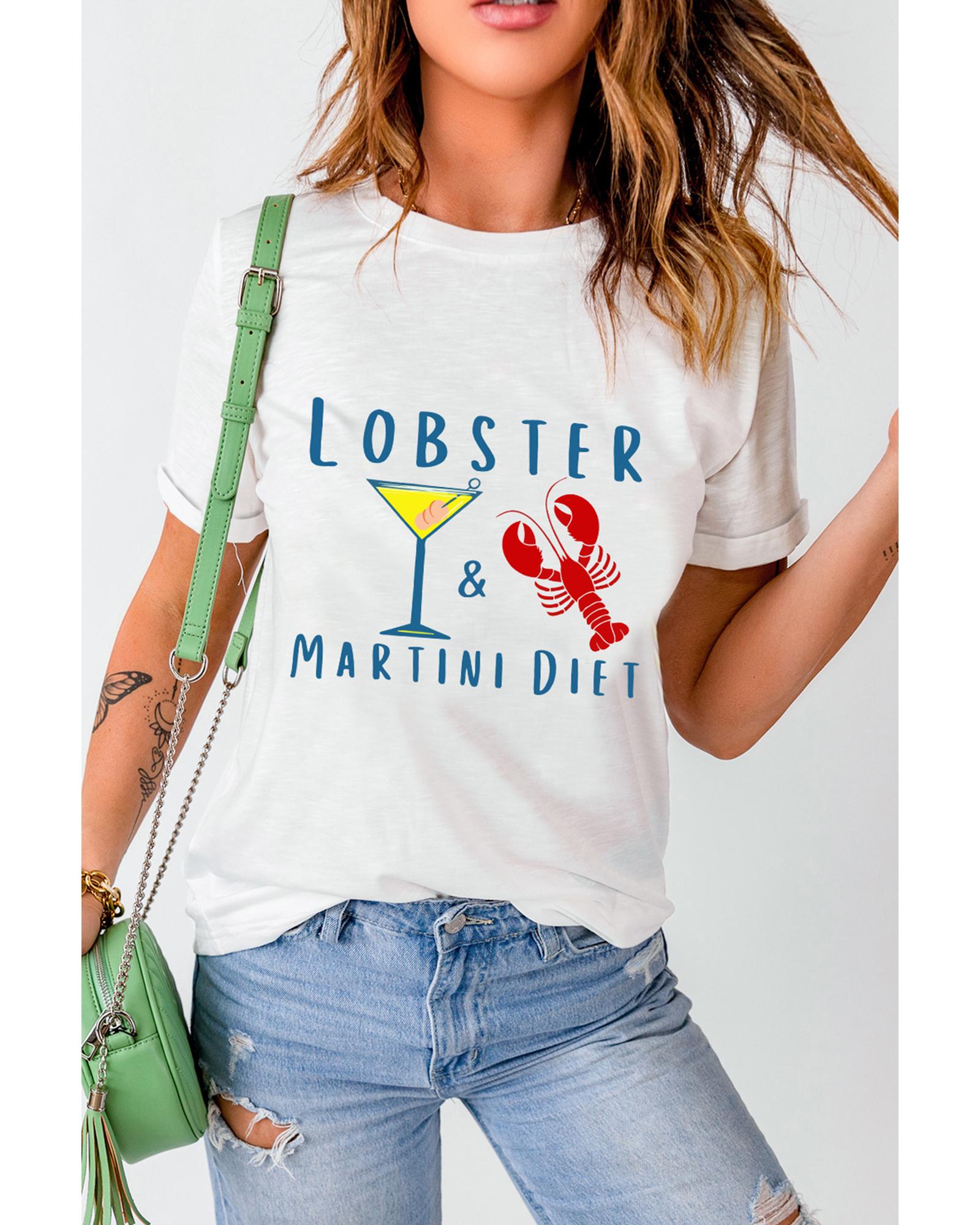 - White LOBSTER MARTINI DIET Cocktail & Crawfish Print T
