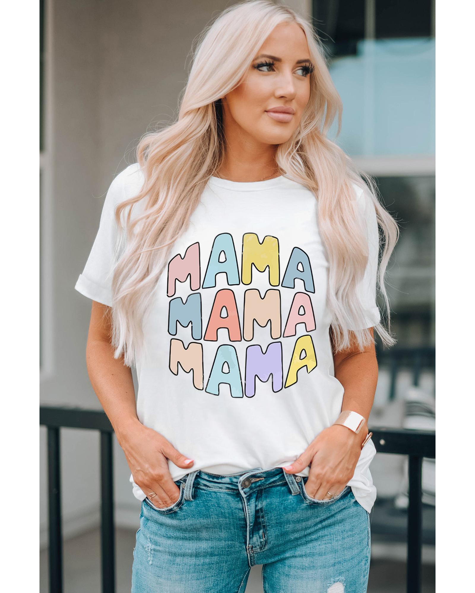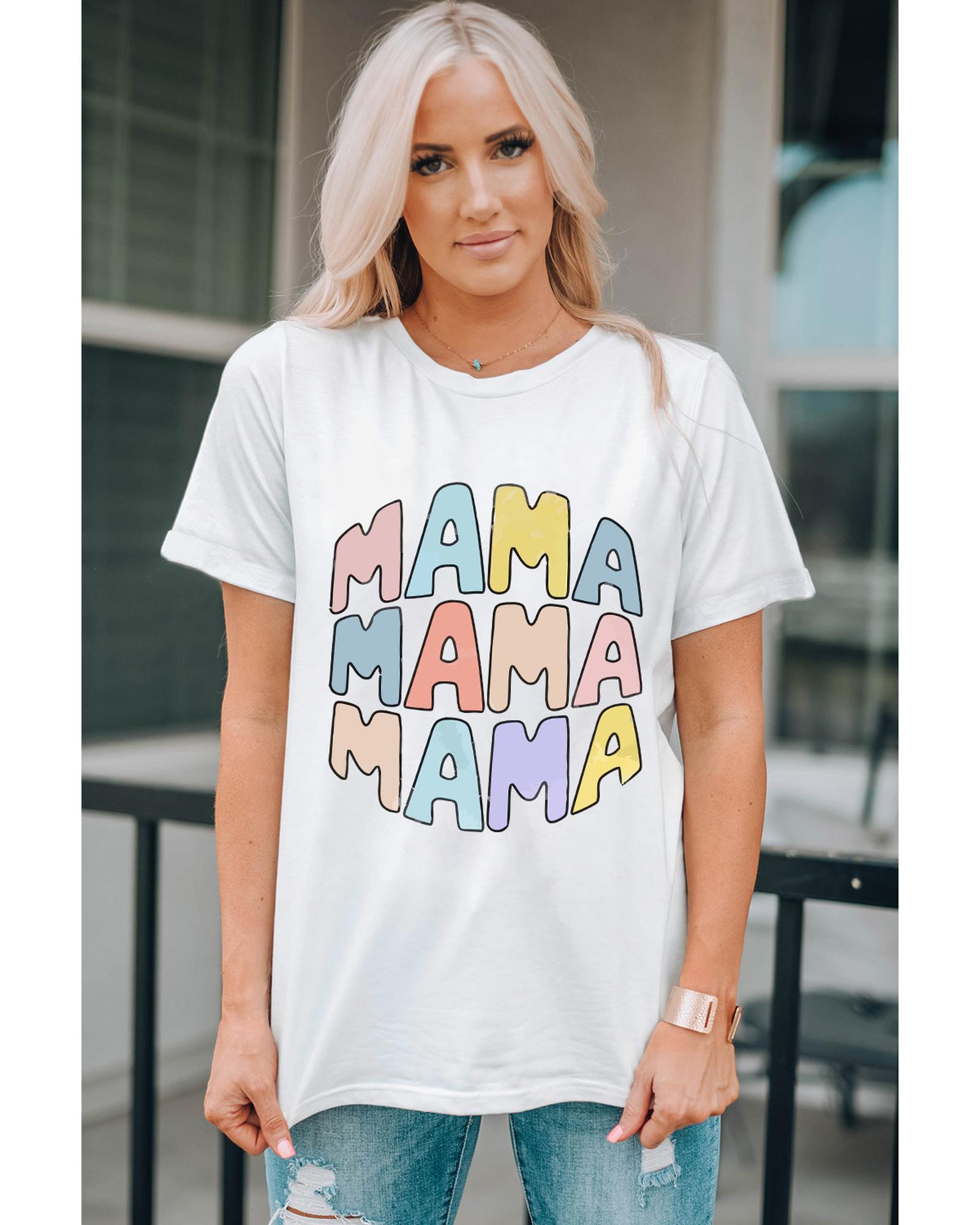White MAMA Slogan Print Crew Neck Casual T Shirt – M