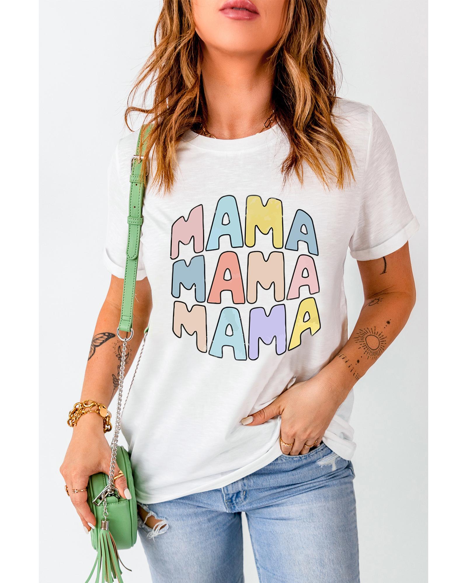 White MAMA Slogan Print Crew Neck Casual T Shirt – XL