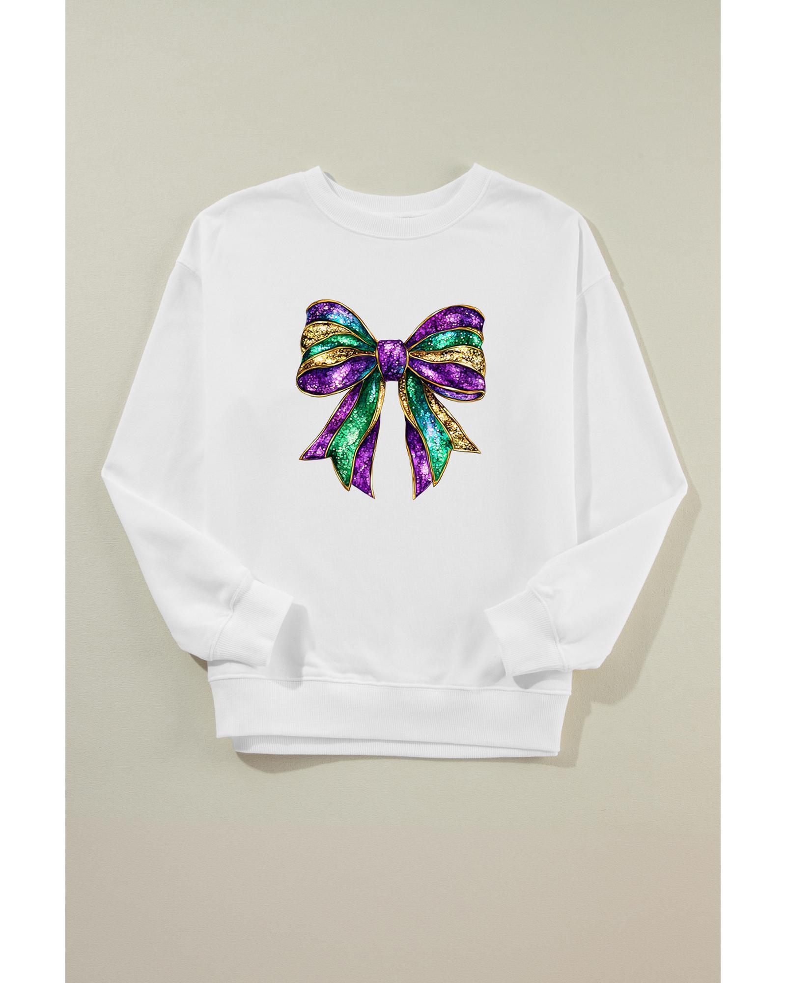 White Mardi Gras Bow Graphic Drop Shoulder Sweatshirt – 2XL