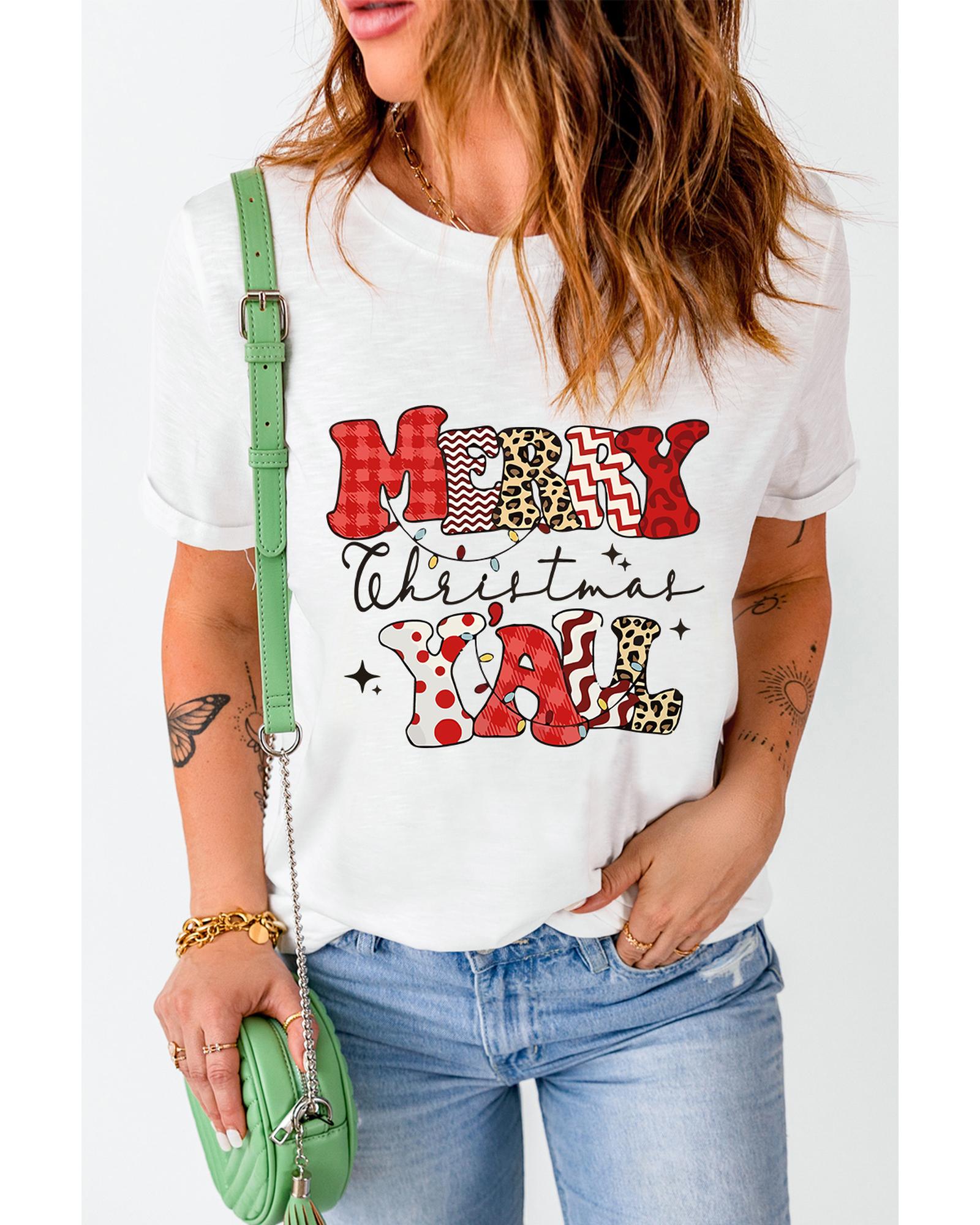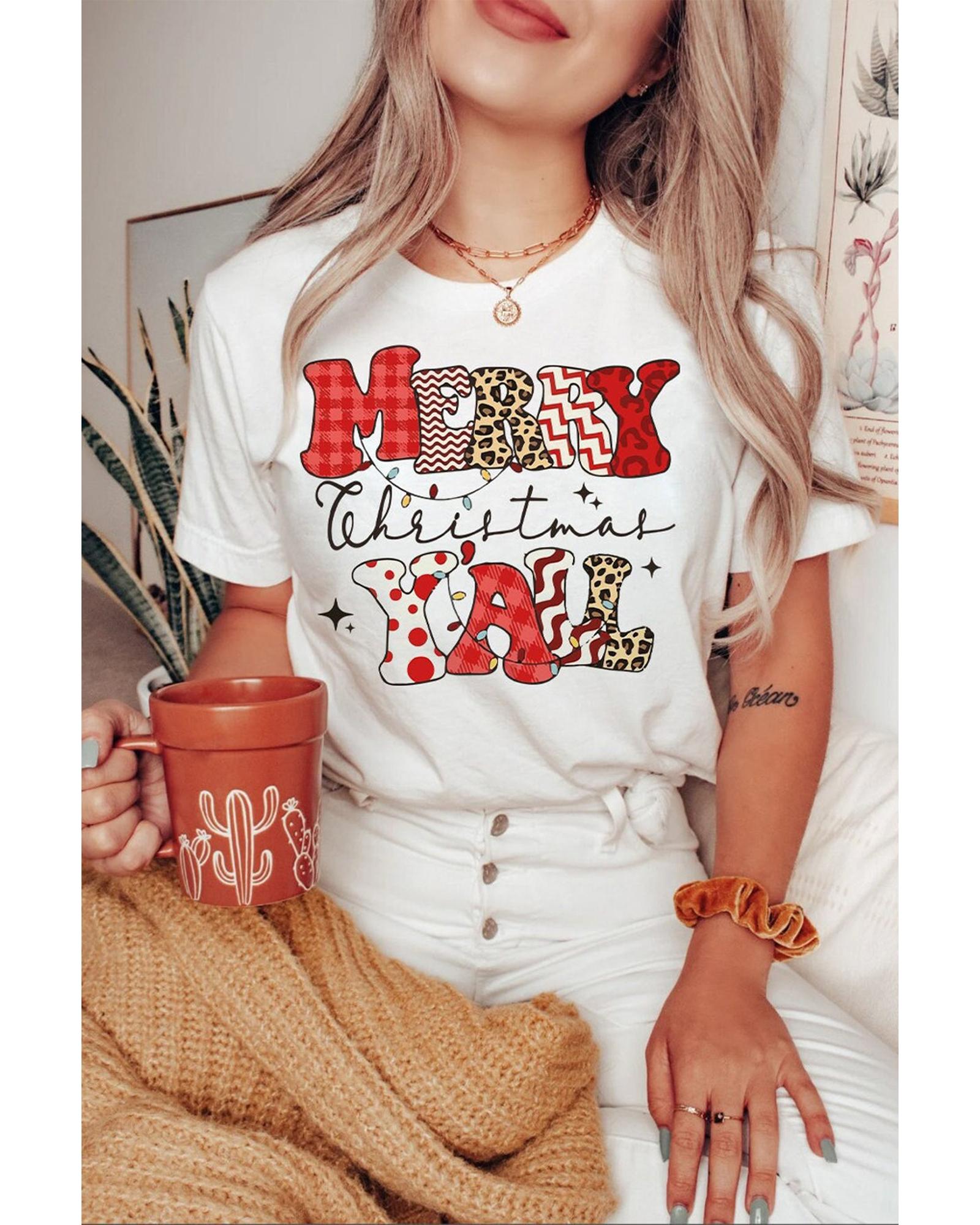 White MERRY Christmas YAll Graphic Crewneck T Shirt – M