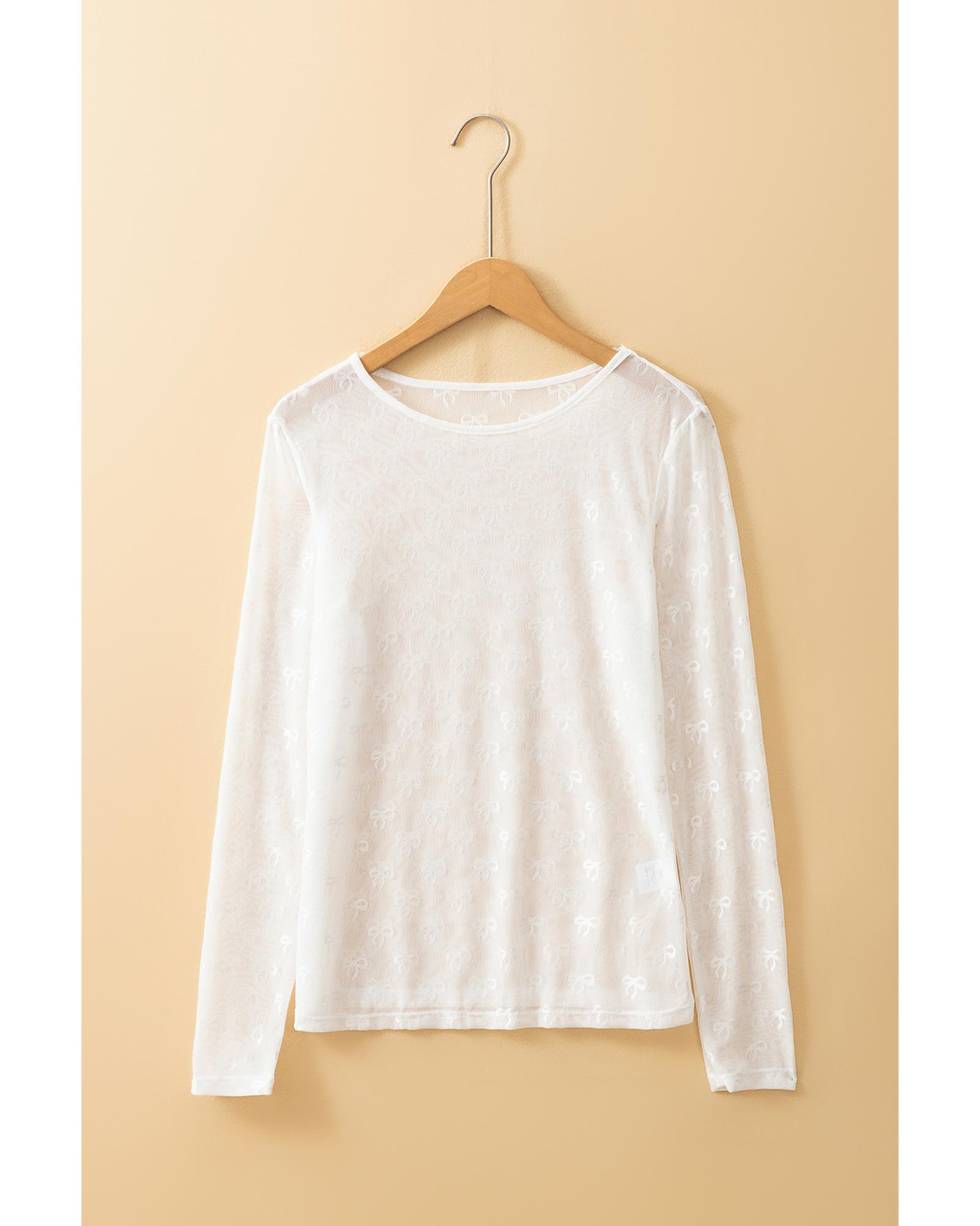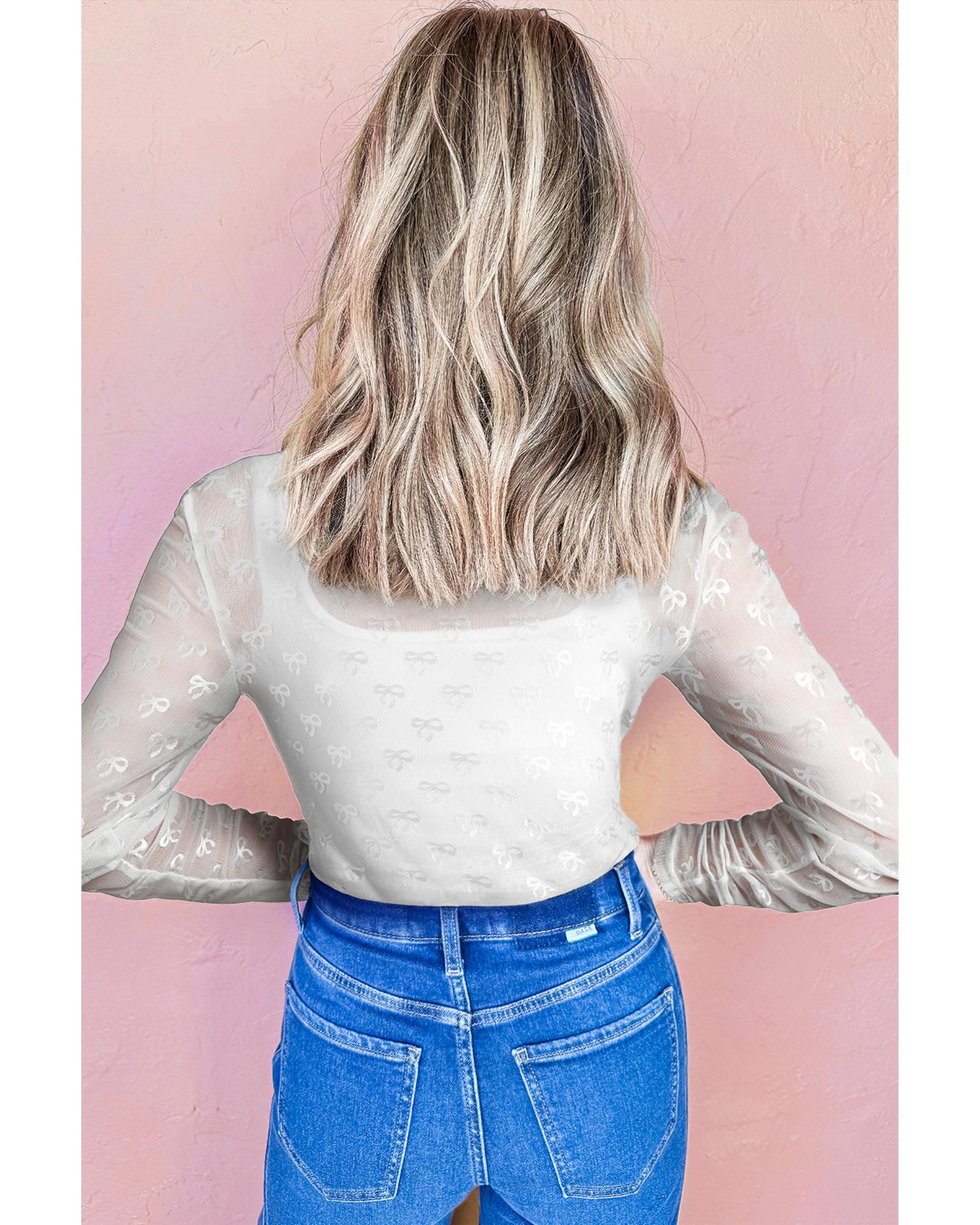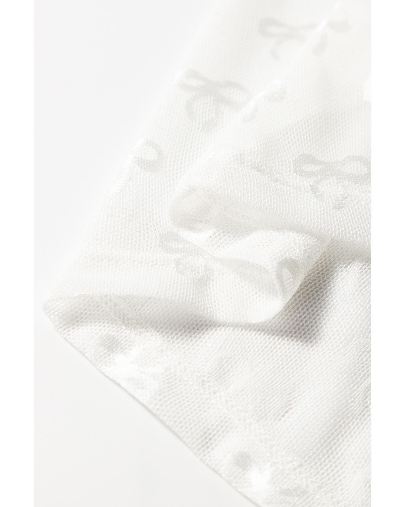 - Sheer fabric with a bow pattern for a cute and graceful look