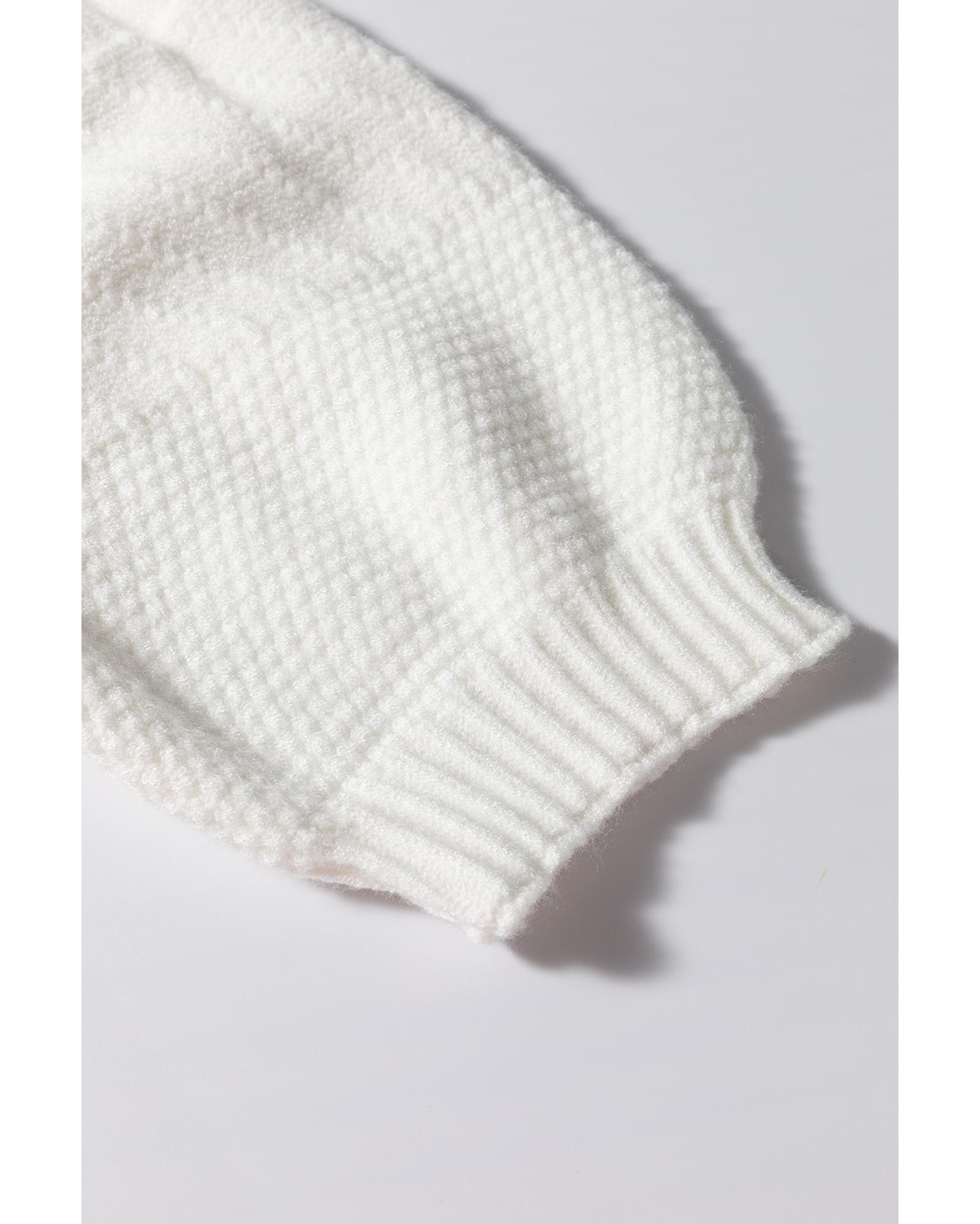 White Multicolor Stitch Detail Cable Knit Short Sleeve Sweater – L