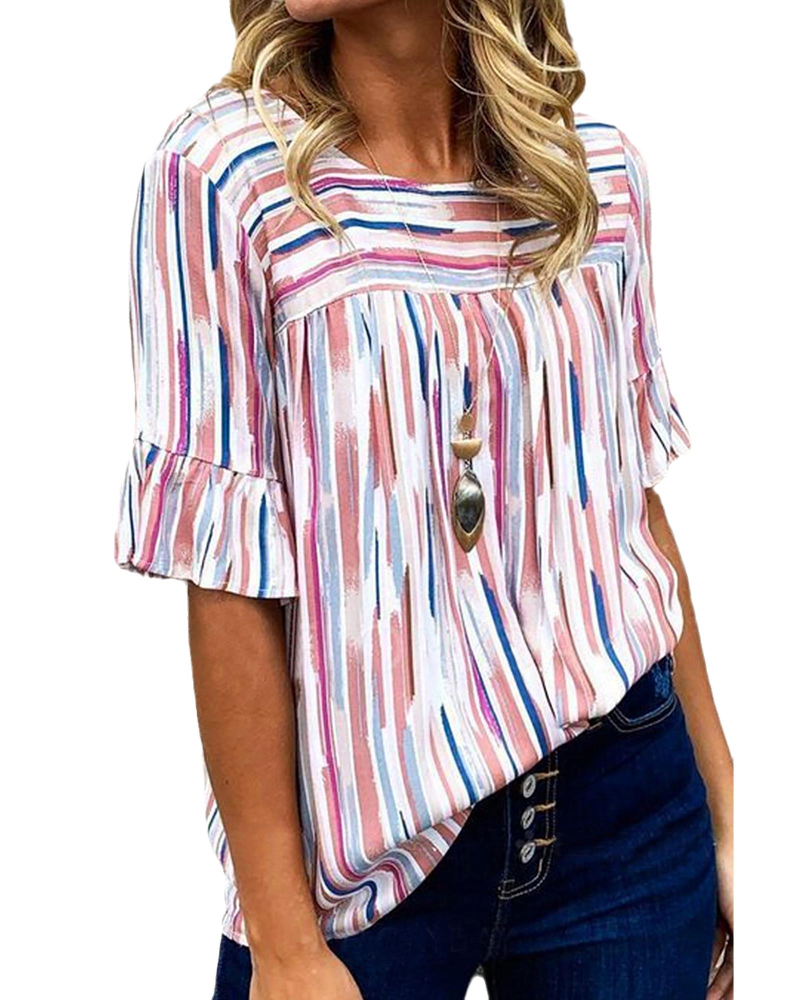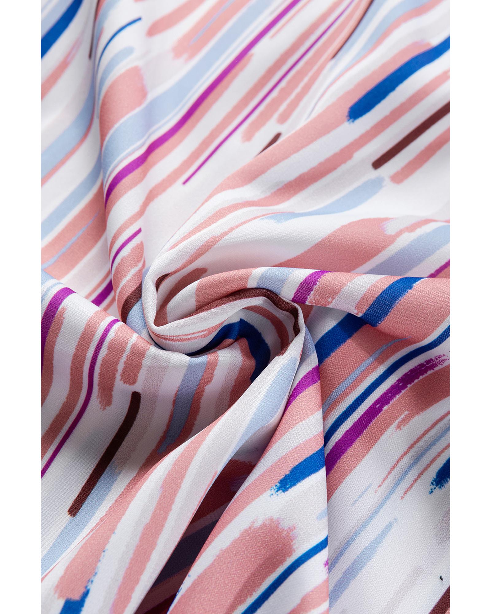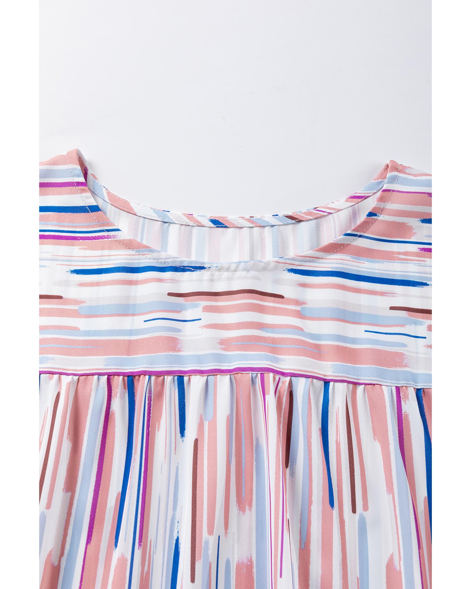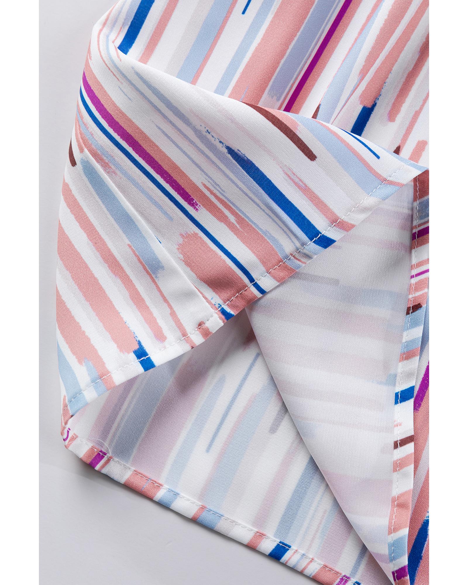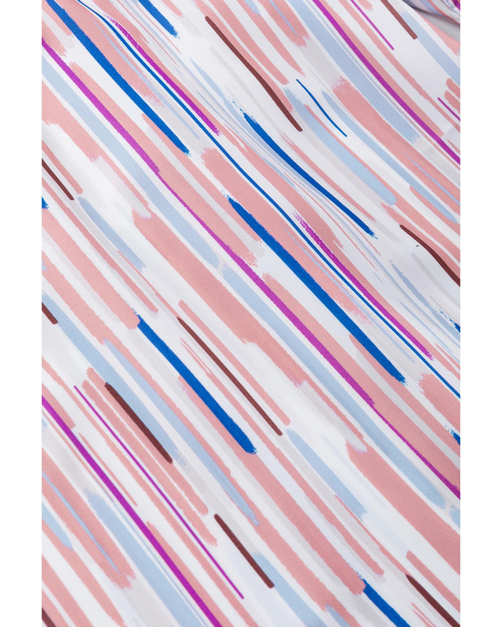 - White Multicolor Striped Splash Half Sleeve Blouse