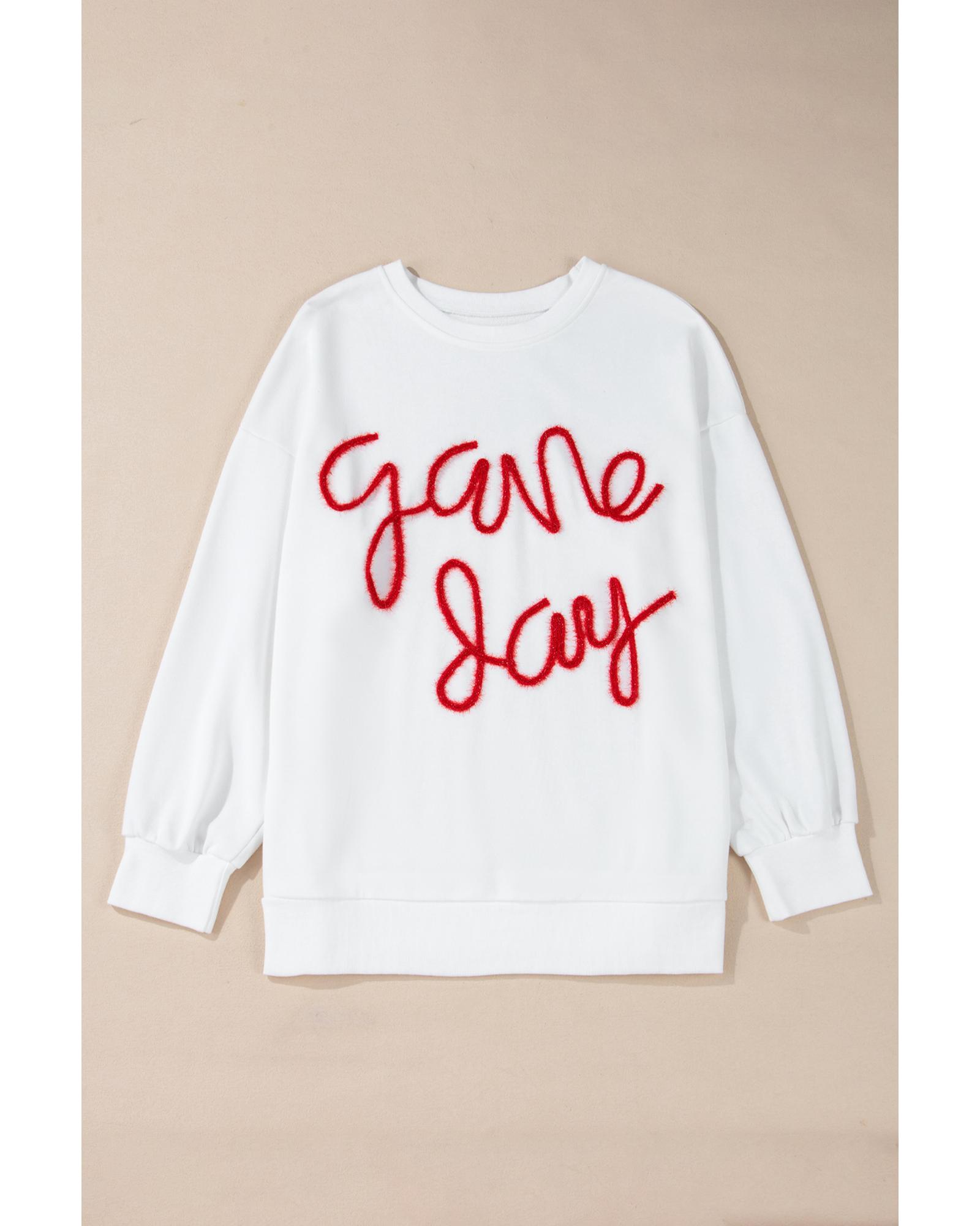 White Plus Size Game Day Tinsel Rugby Football Season Sweatshirt – 2X