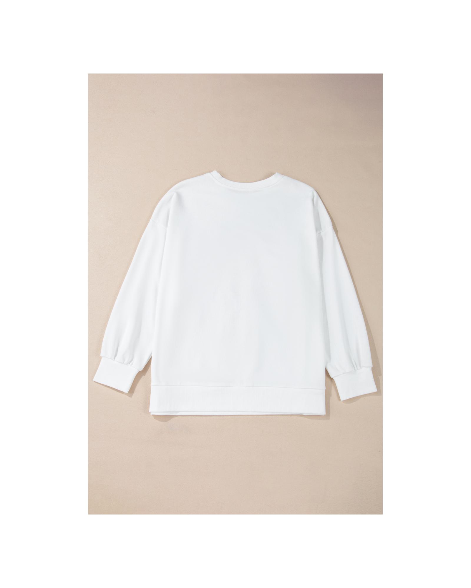 - White Plus Size Game Day Tinsel Rugby Football Season Sweatshirt