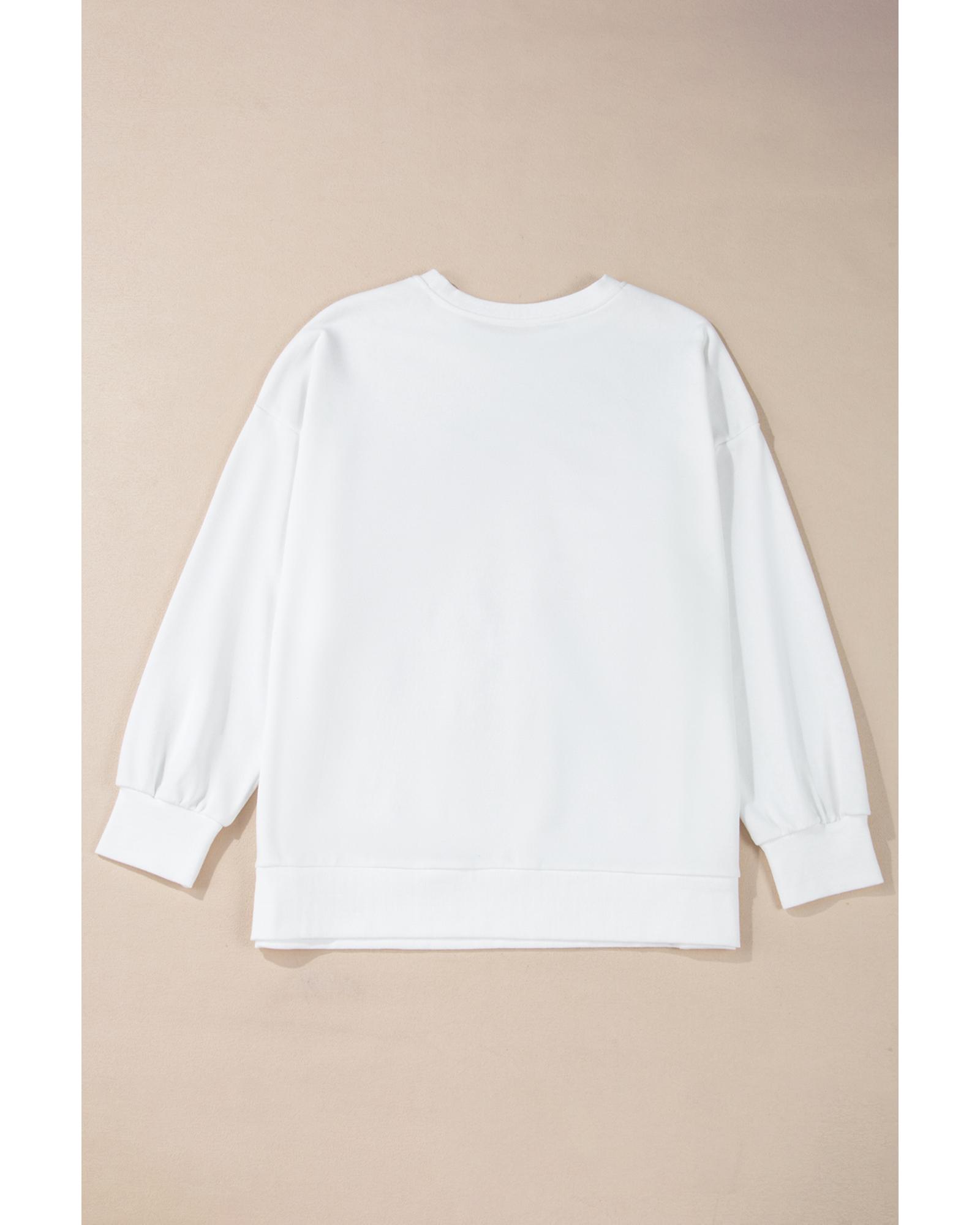 - White Plus Size Game Day Tinsel Rugby Football Season Sweatshirt