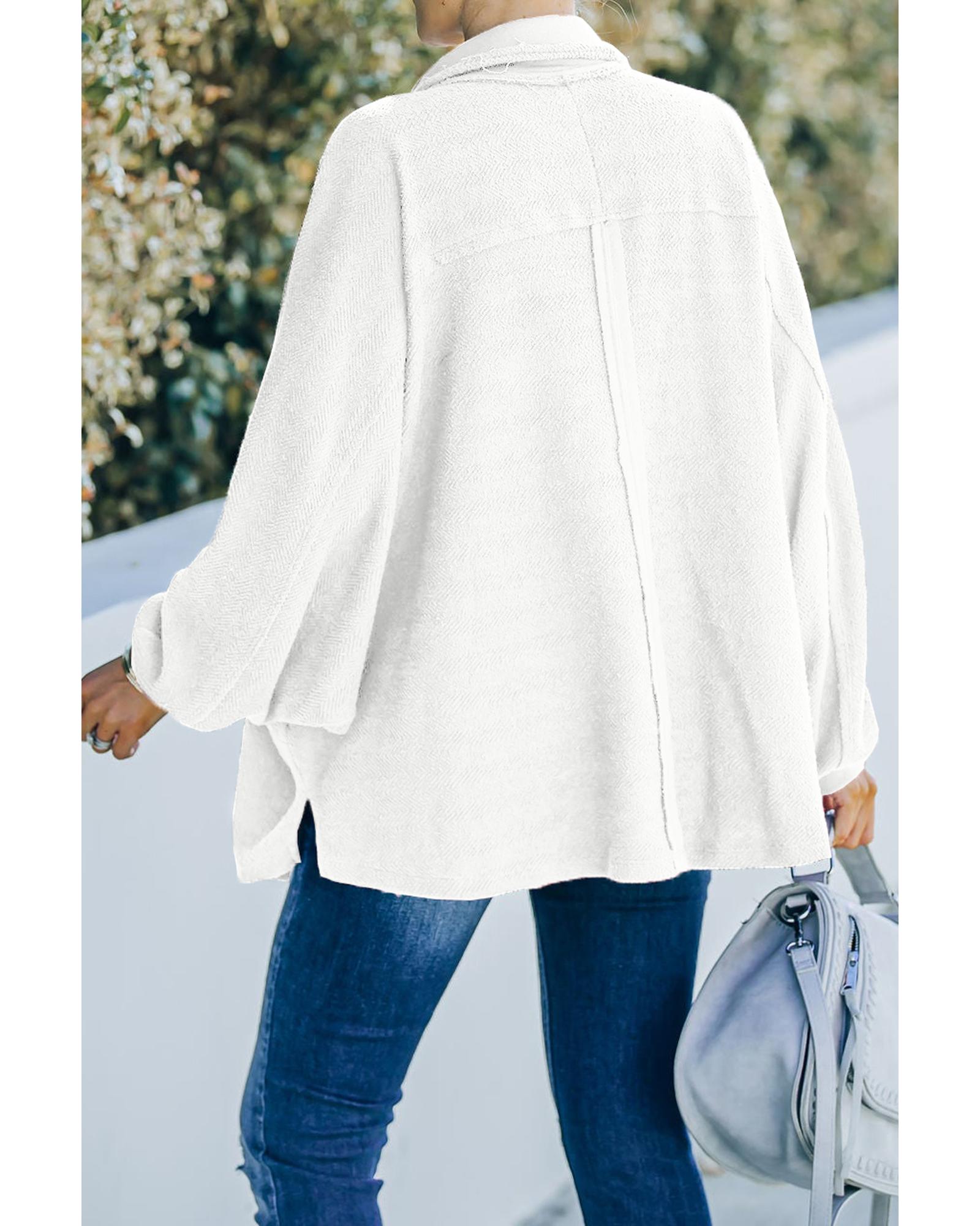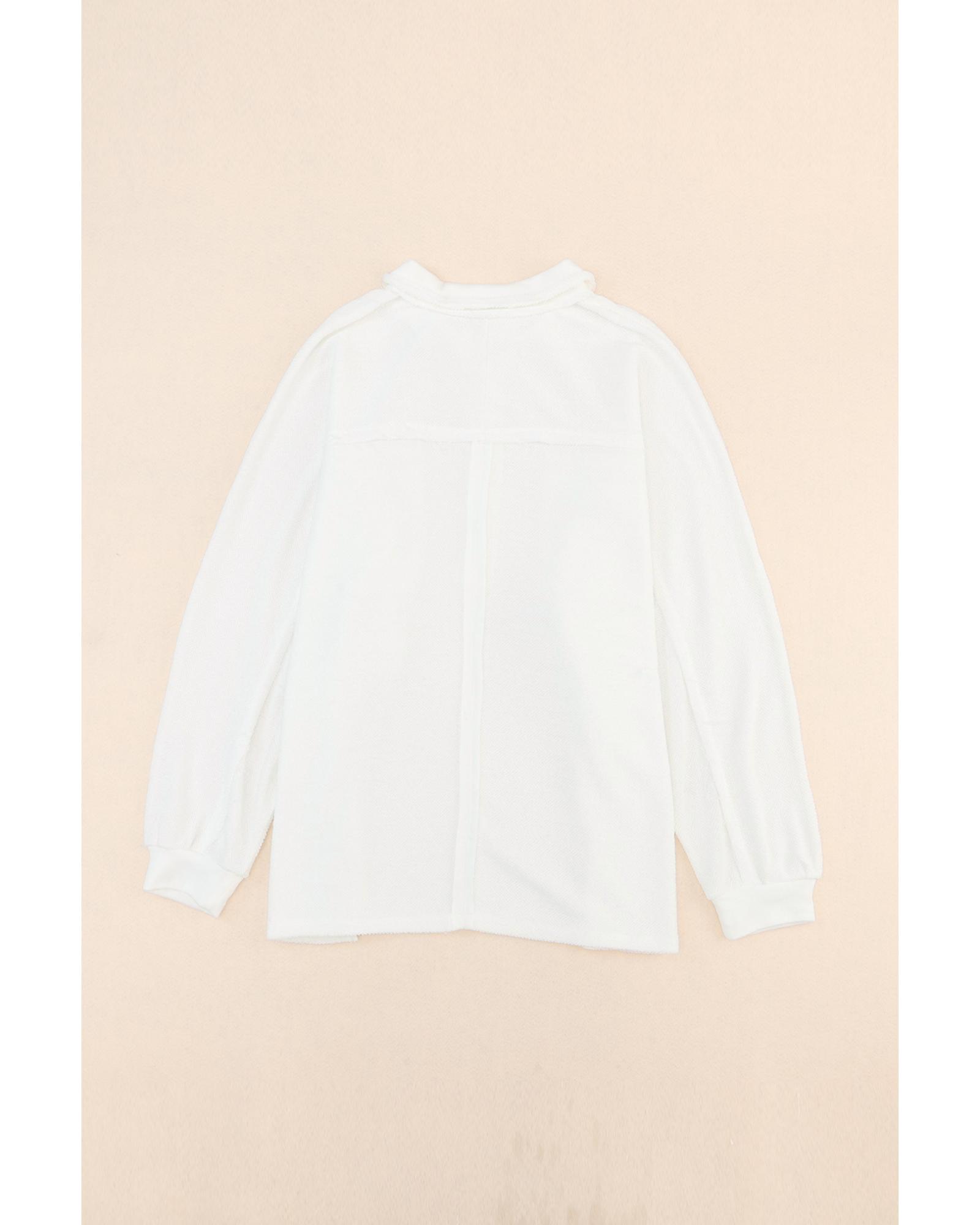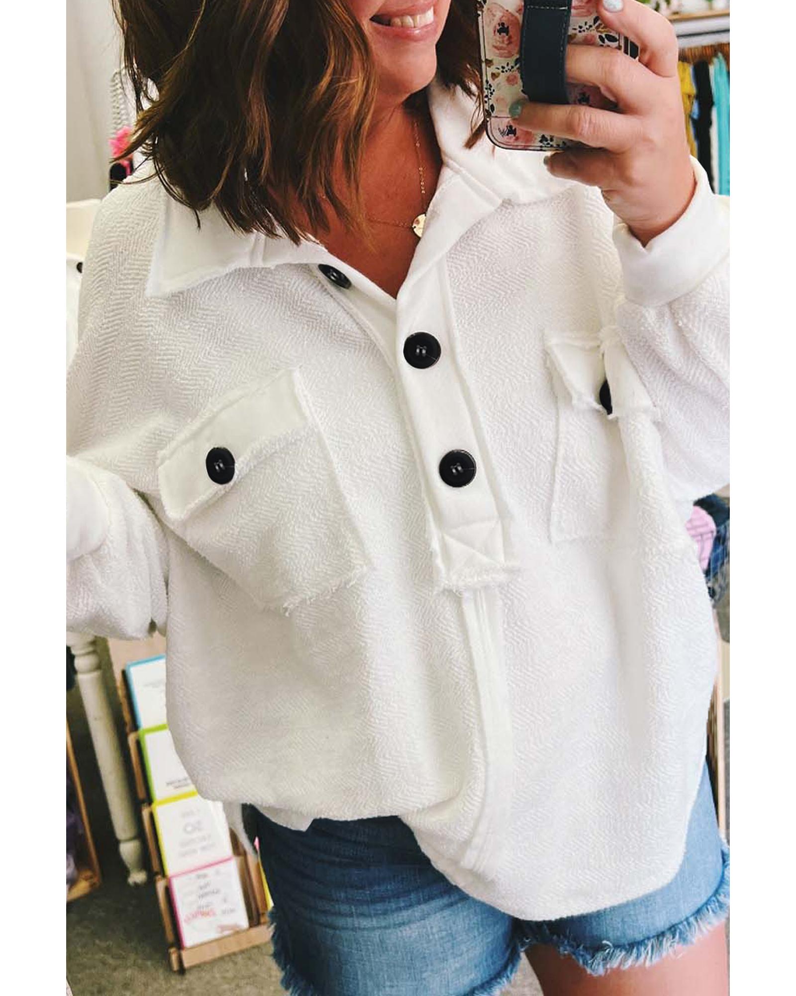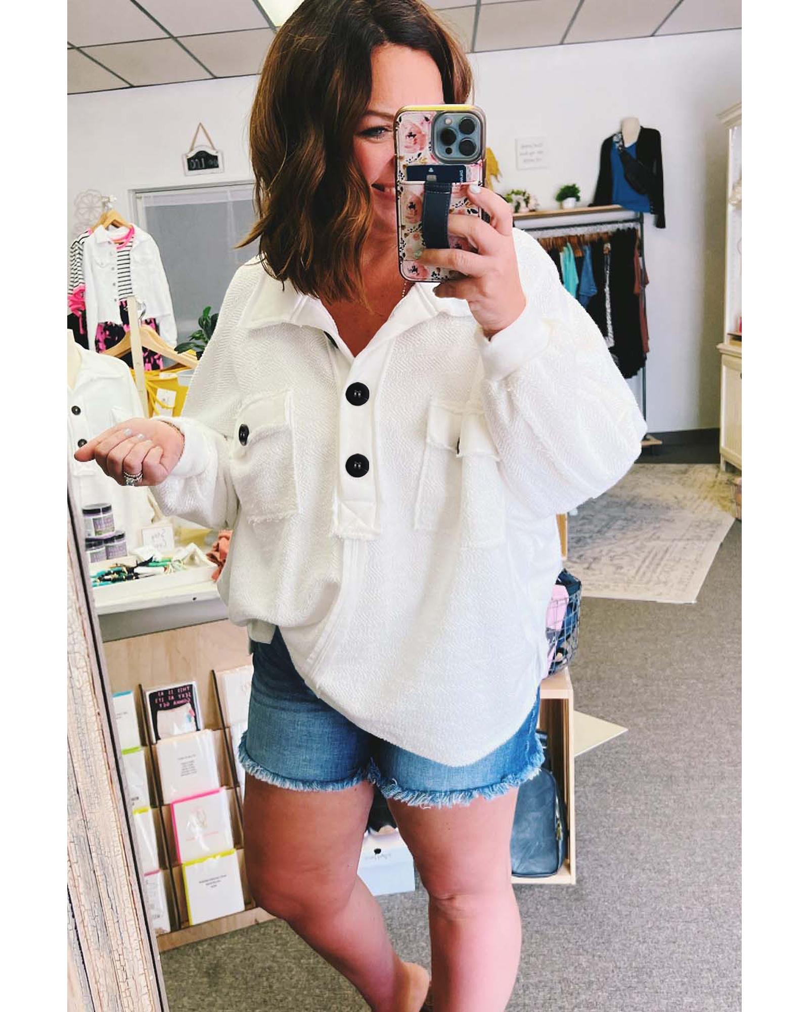 White Plus Size Long Sleeve Flap Pocket Henley Top – 3X