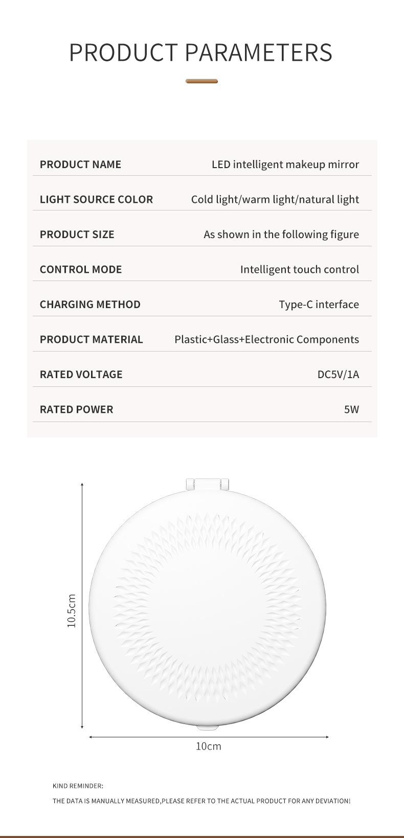 Tricolor Light Source: Switch between warm, natural, and cold lights for versatile makeup application.