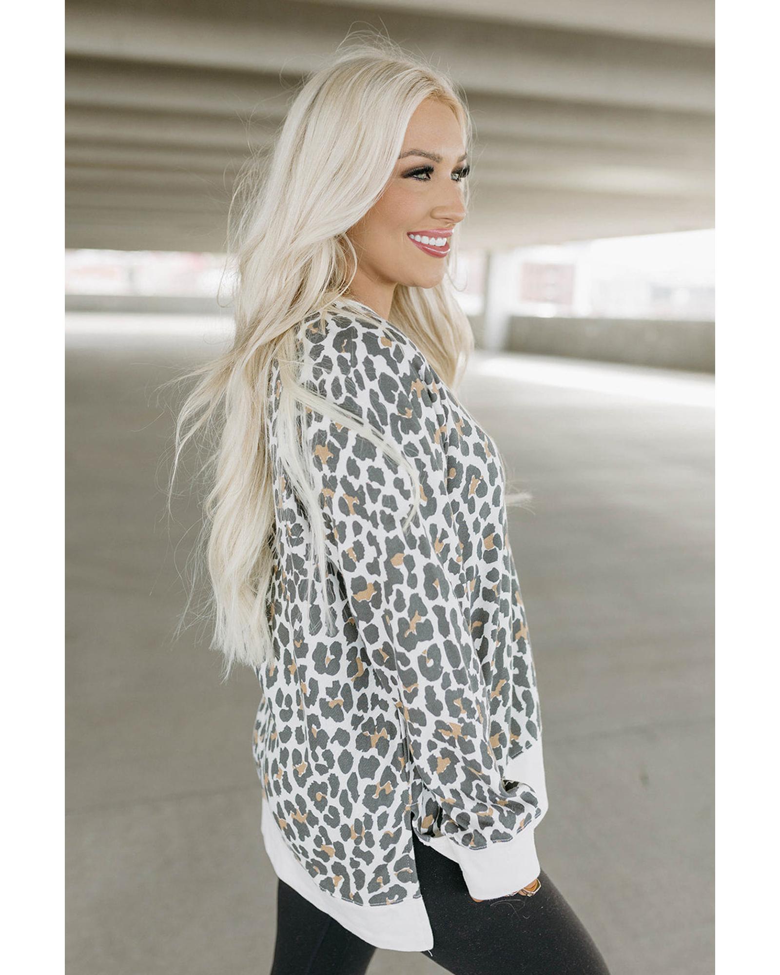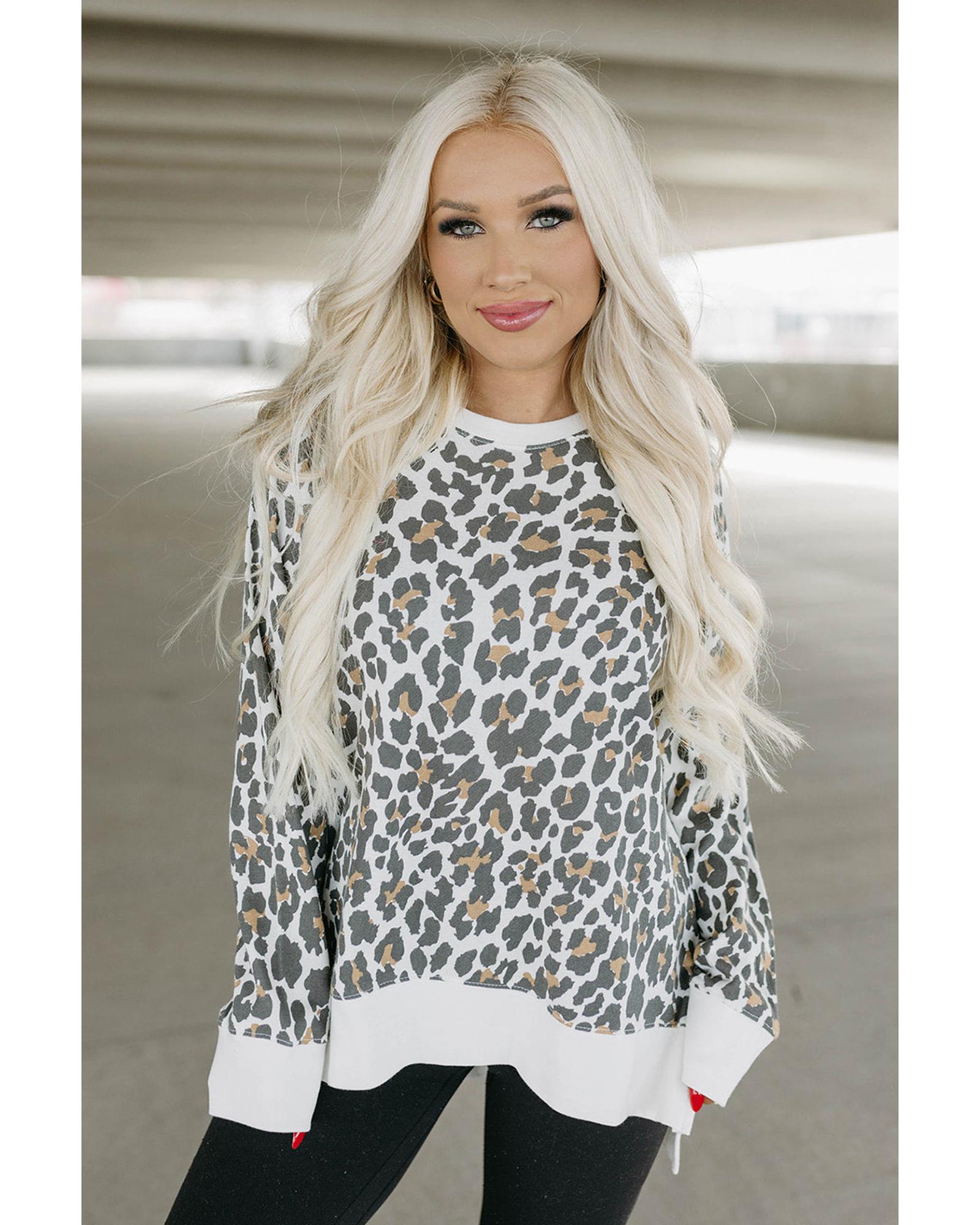Khaki Leopard Print Drawstring Hoodie and Skinny Pants Lounge Set - M