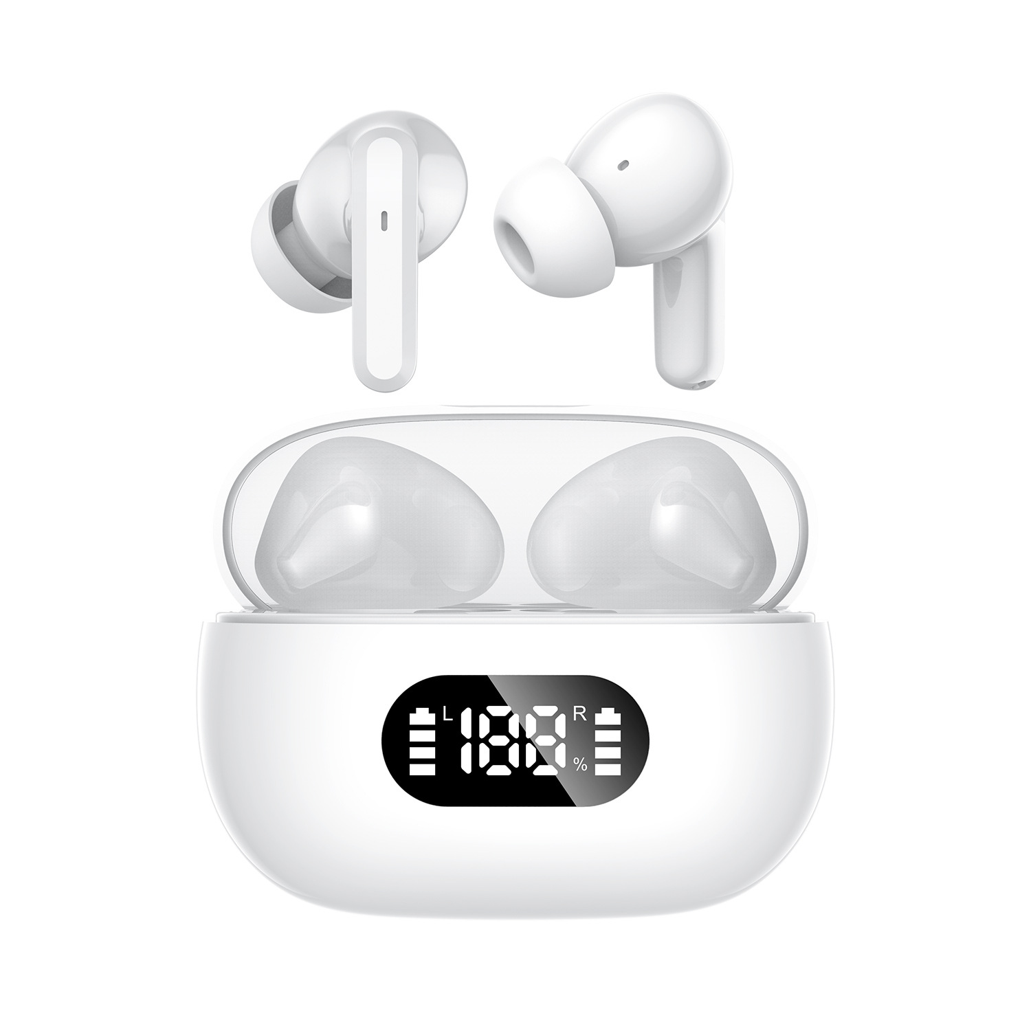 • Smart LED Digital Display: The charging case features a clear LED screen showing the remaining battery percentage of the case itself, plus individual charge status indicators (L/R bars) for the left and right earbuds. Never guess your battery levels again.