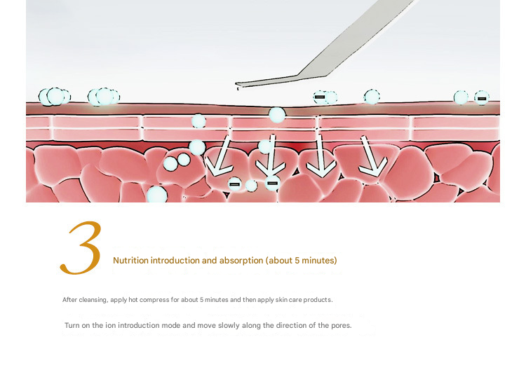 - Enhanced Nutrient Absorption: The Ion- (Import) mode uses negative ions to push serums and moisturisers deeper into the skin, maximising their effectiveness and hydrating your skin from within.