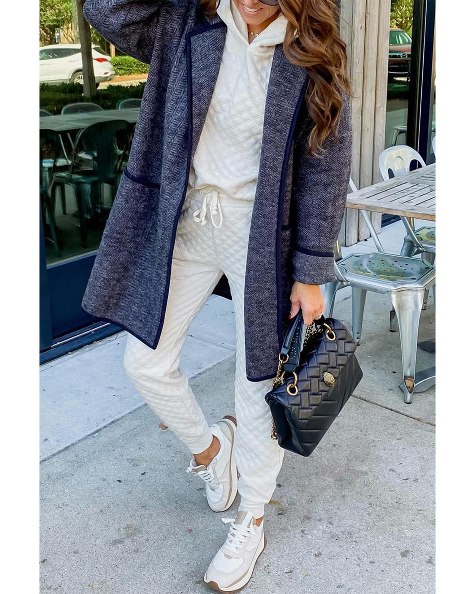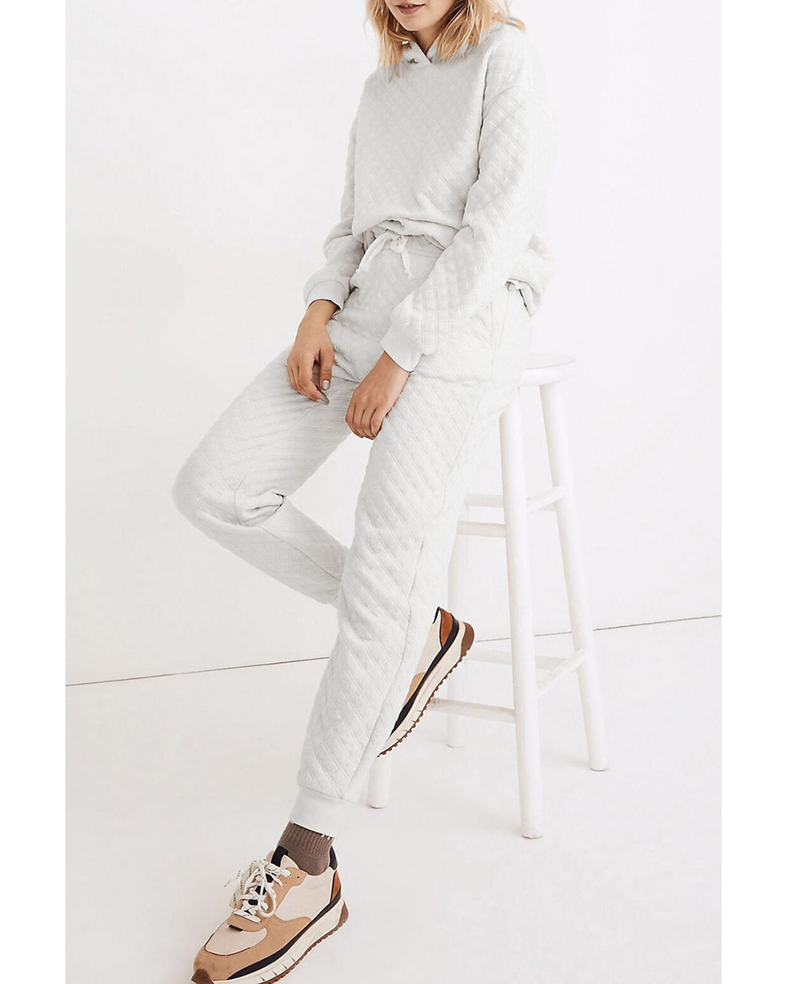- White Quilted Hoodie and Sweatpants Two Piece Set