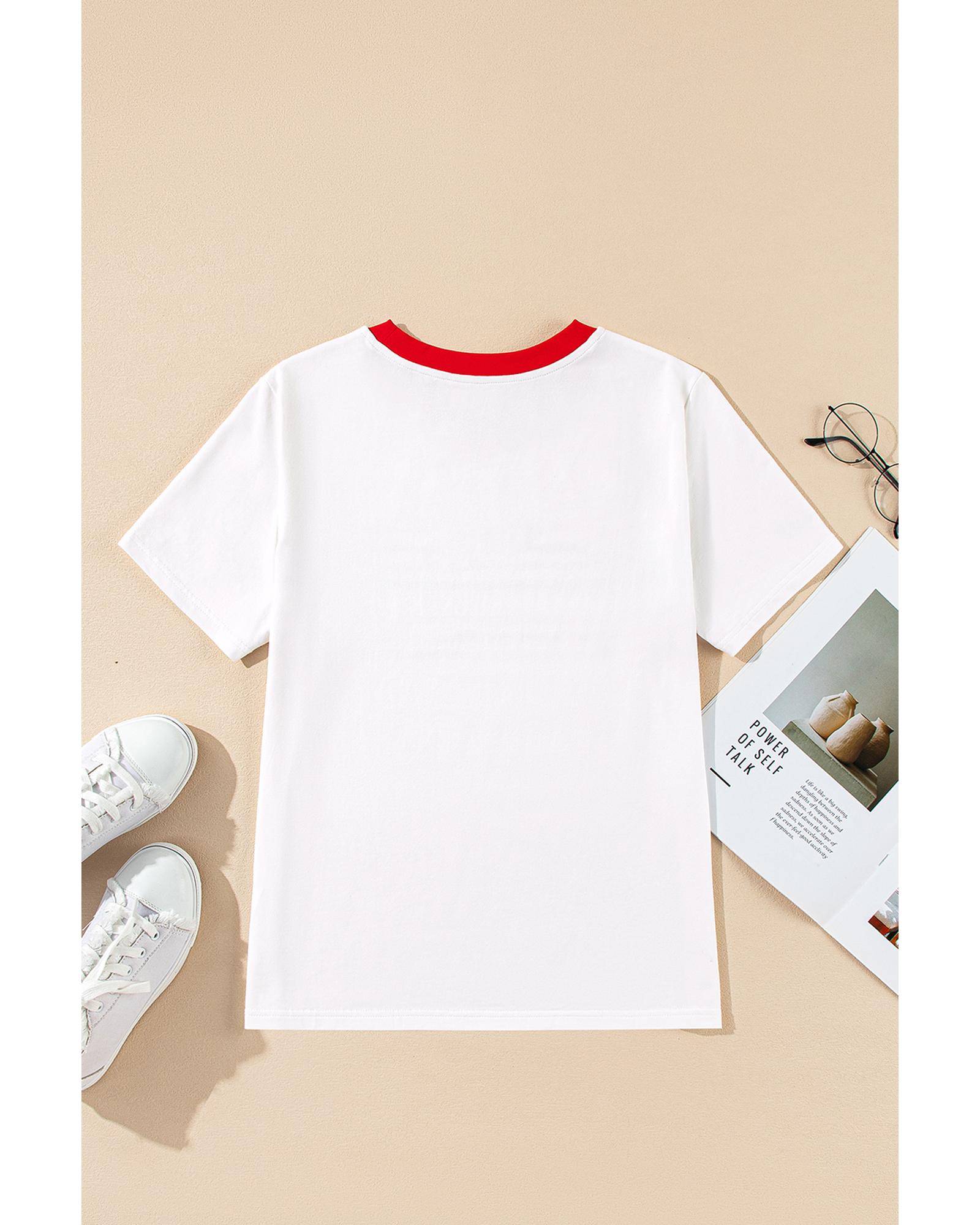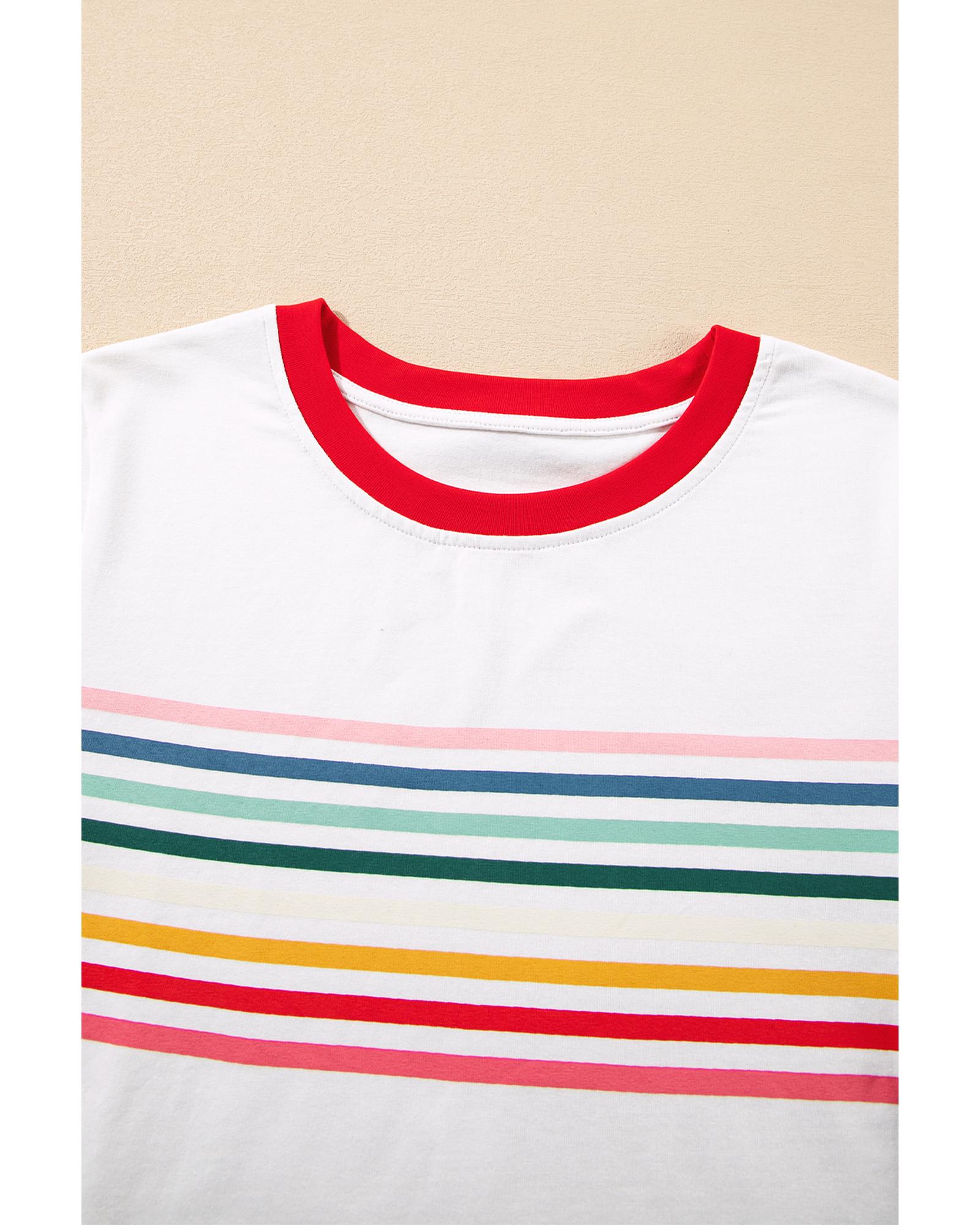 White Rainbow Stripe Print Contrast Crewneck T Shirt – S