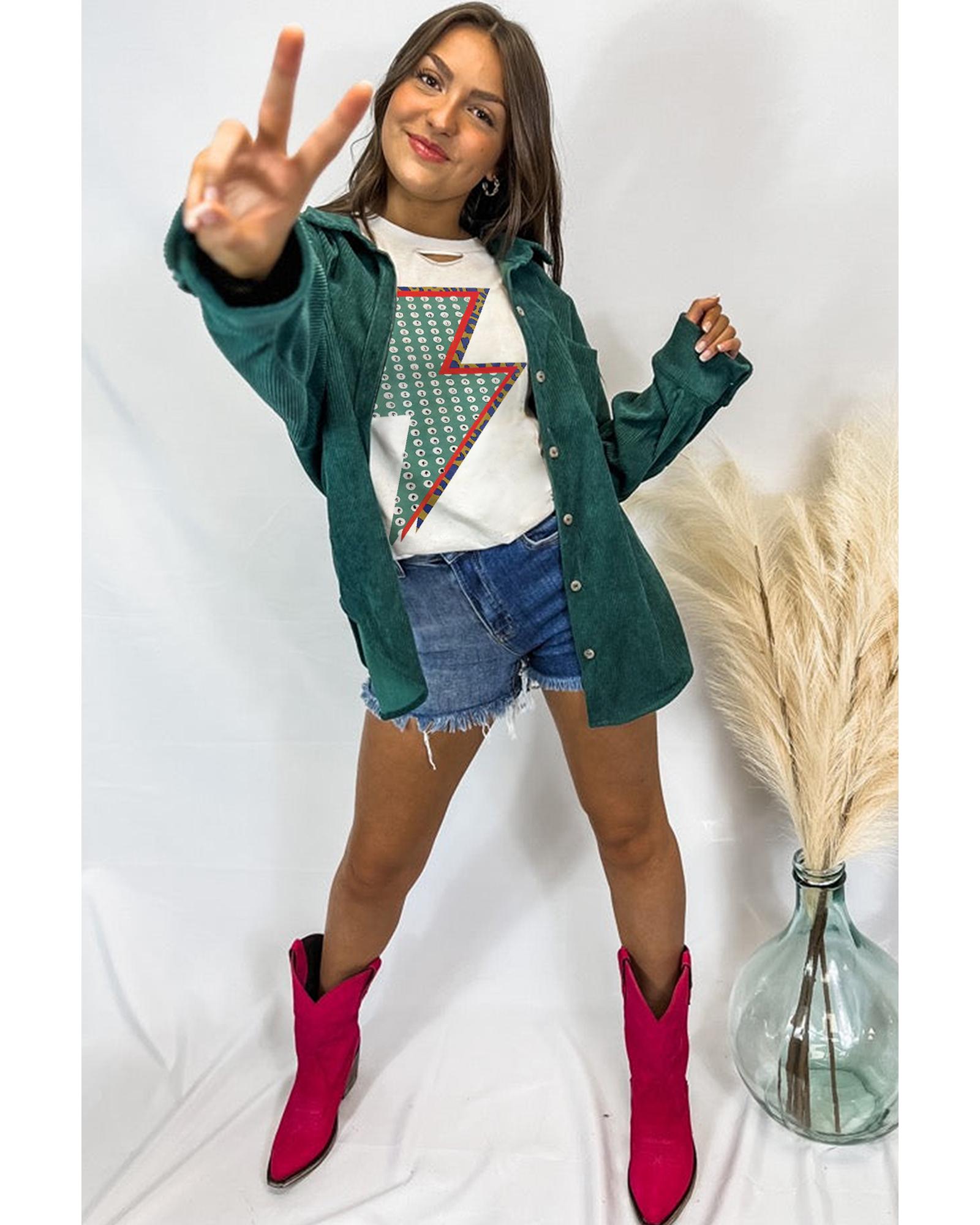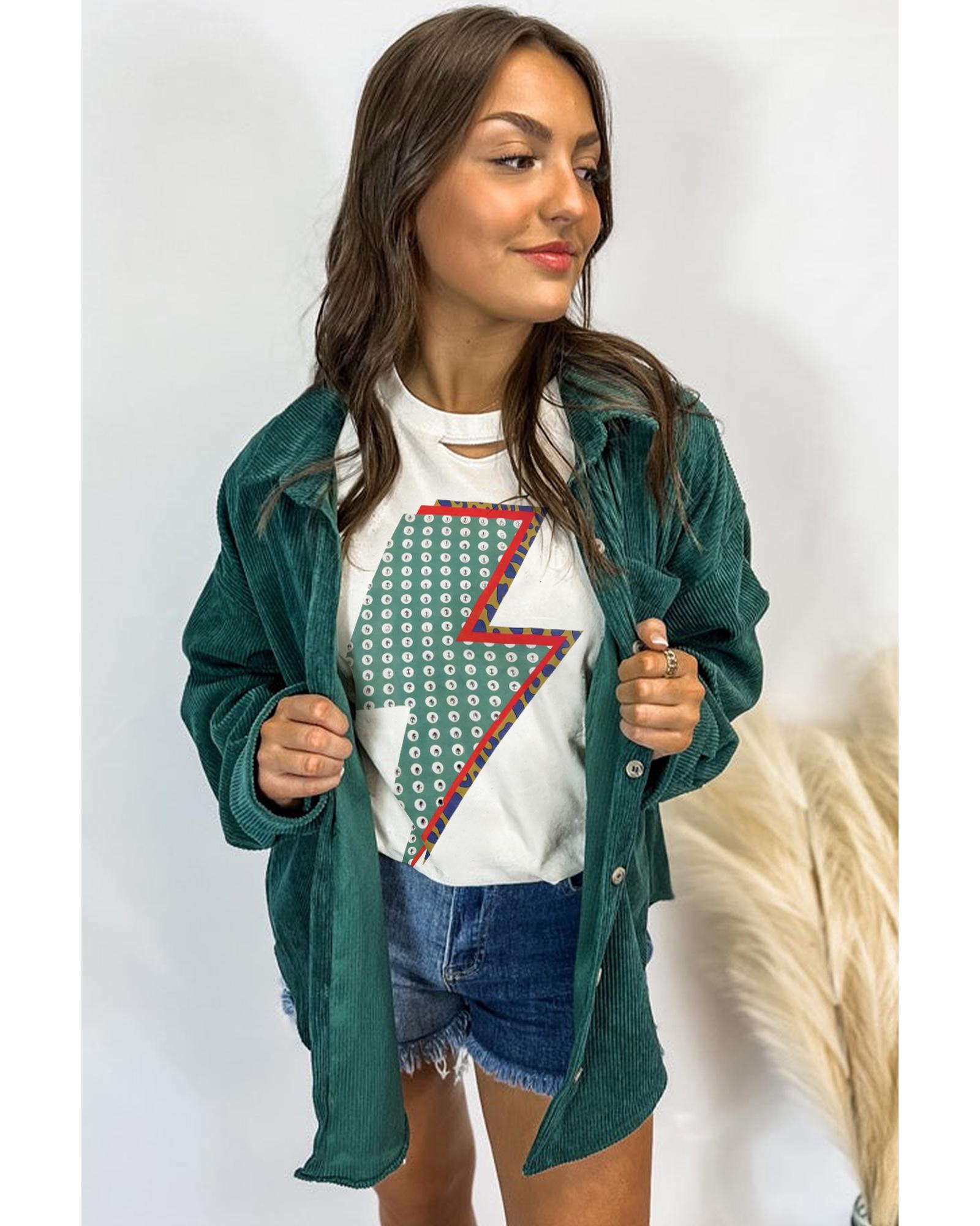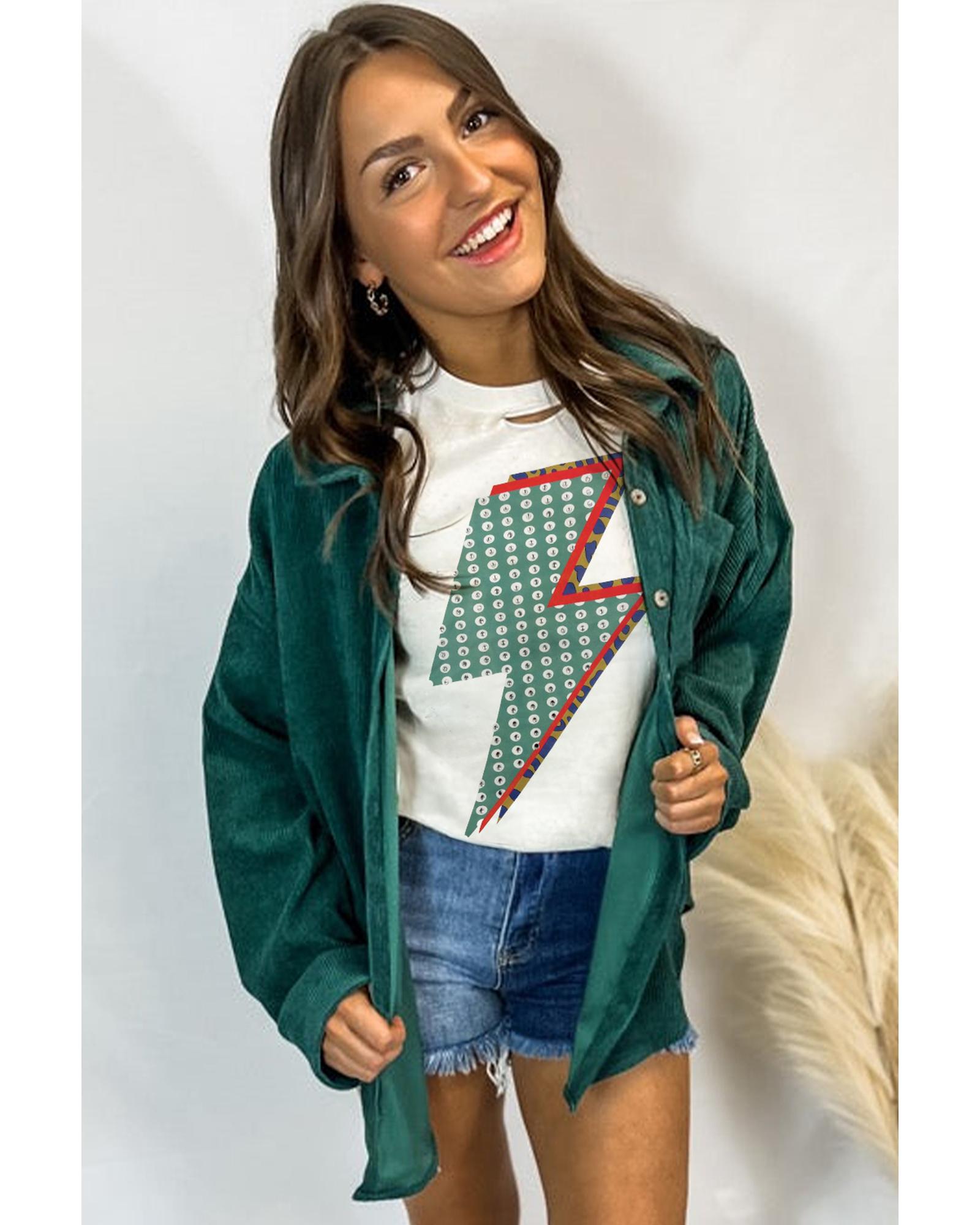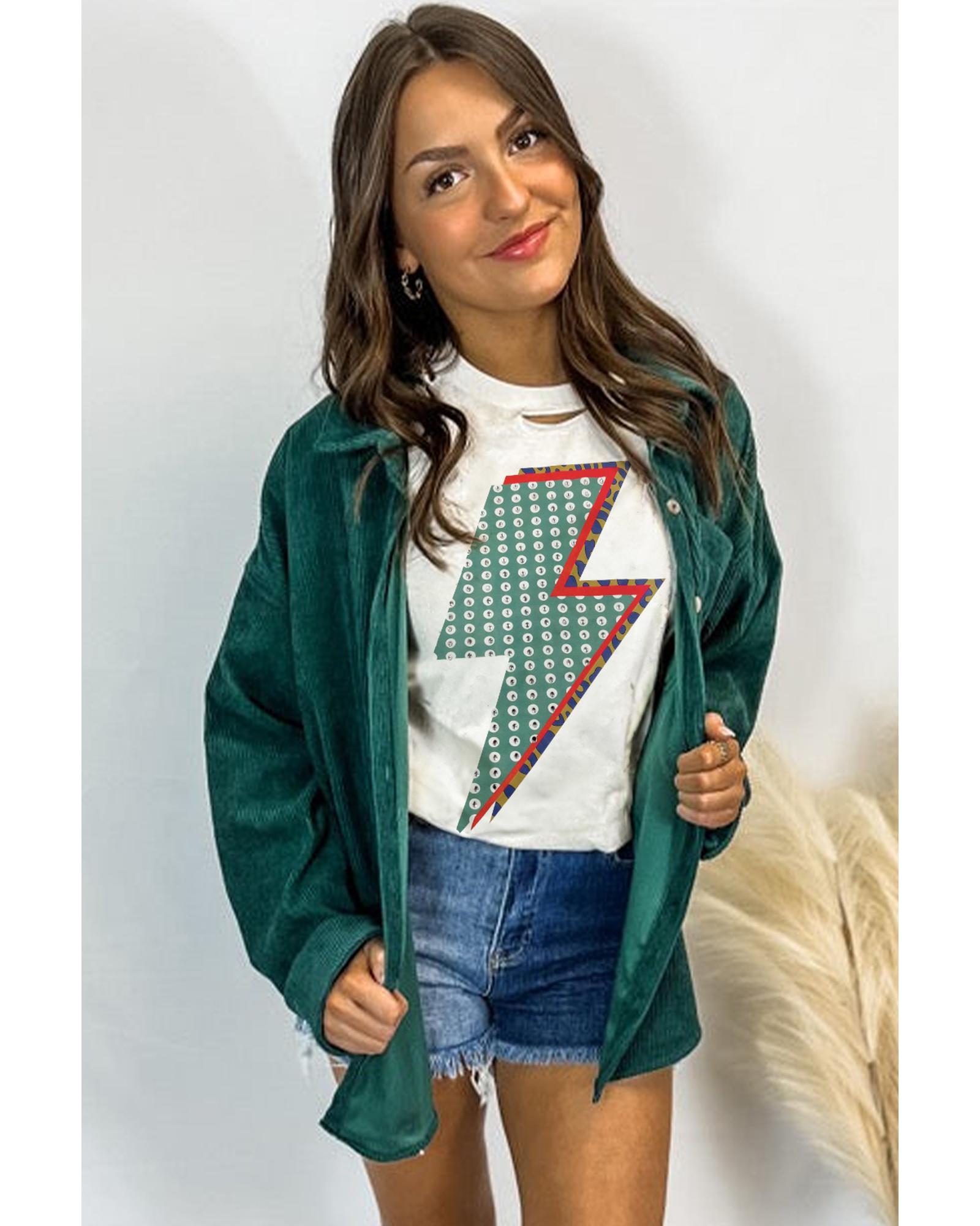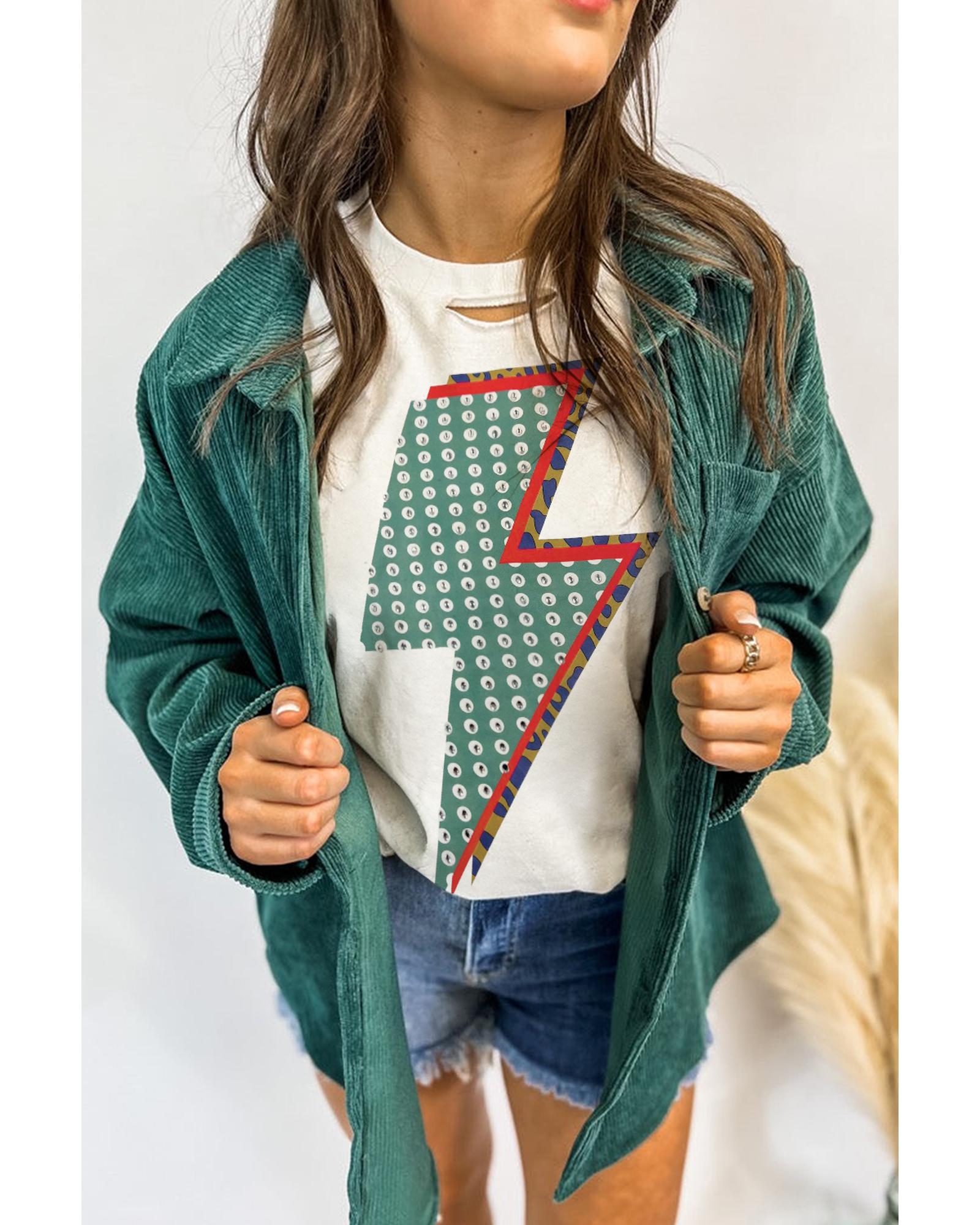 White Rhinestone Decor Bolt Graphic Ripped Western Tee – M