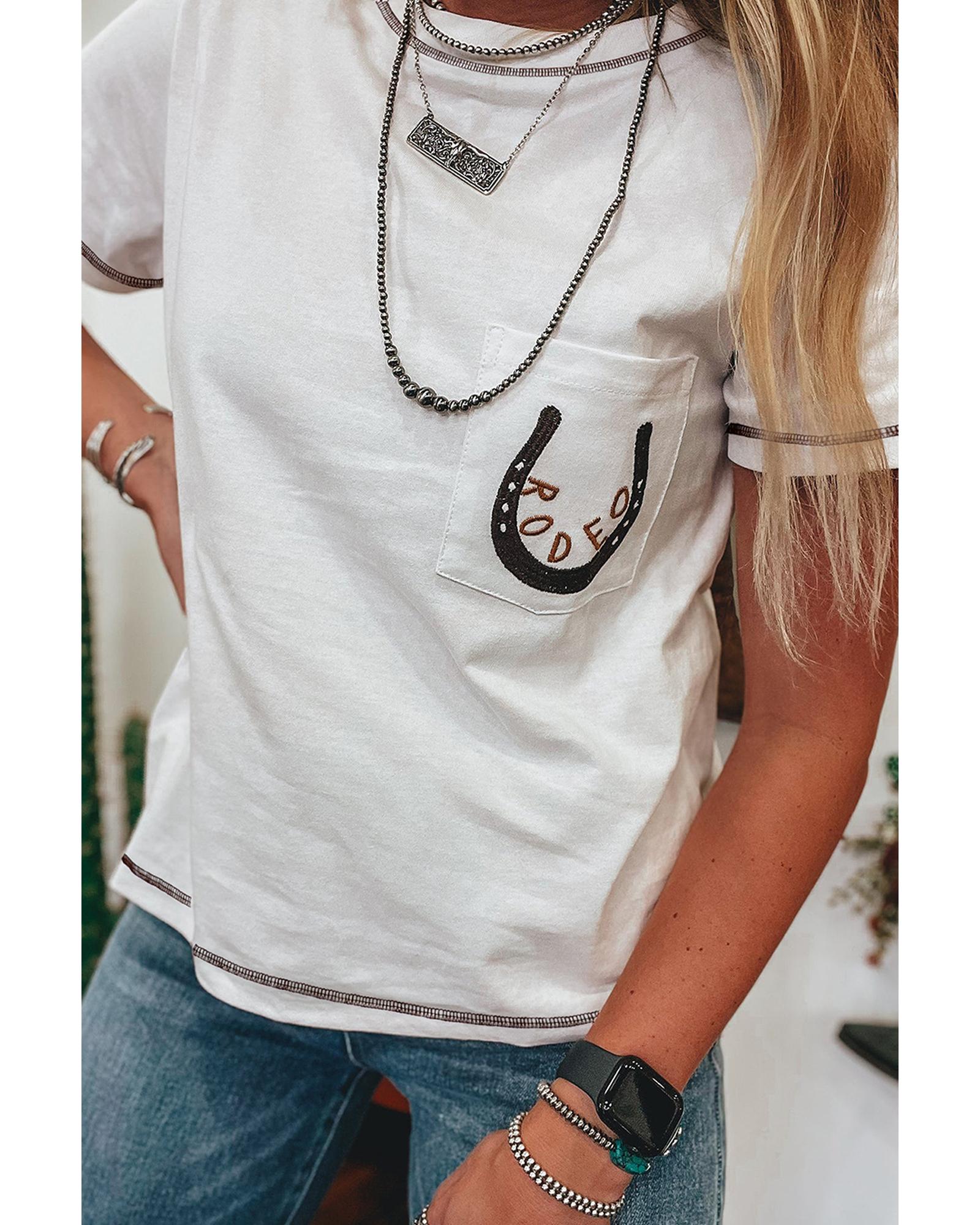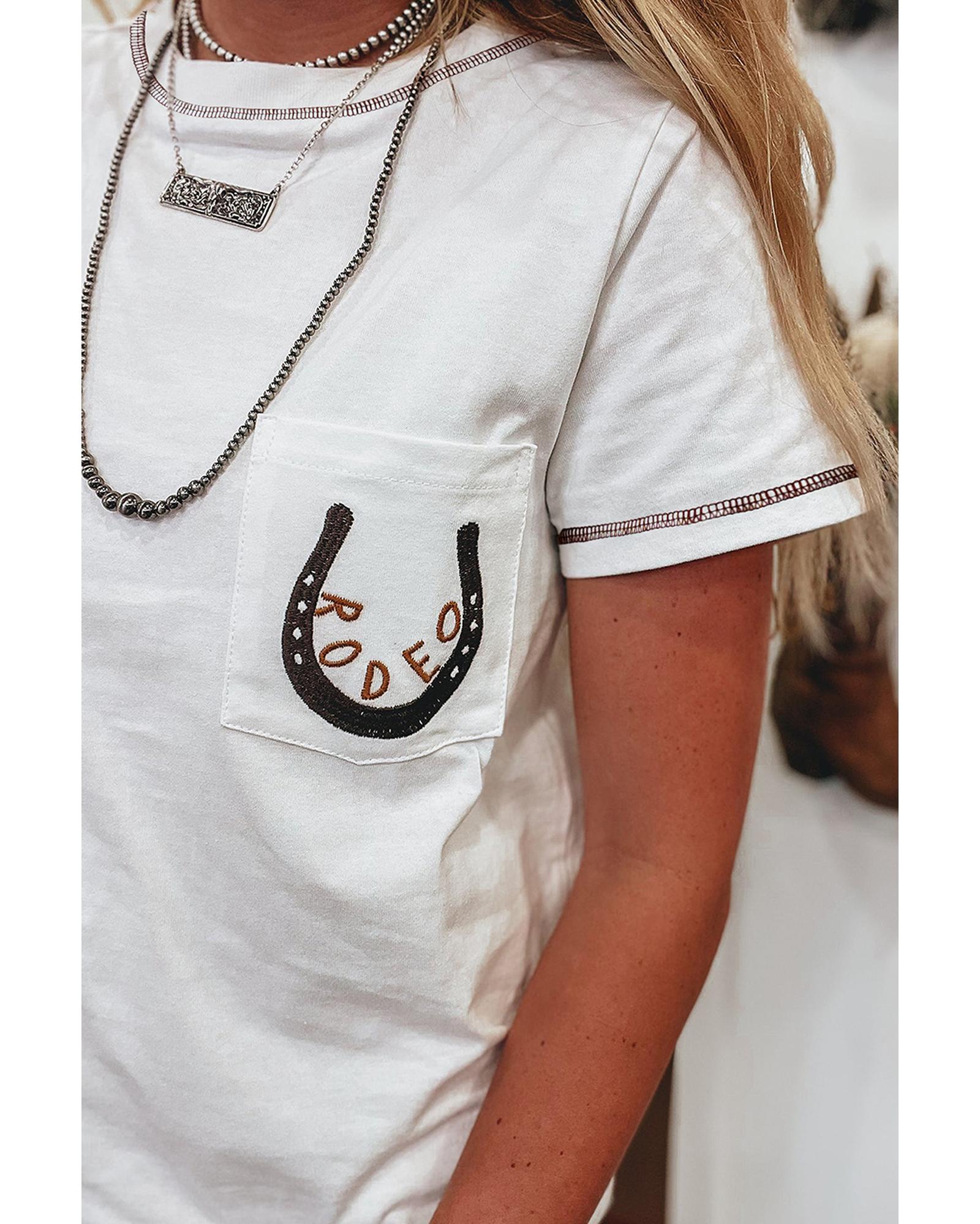 White RODEO Horseshoe Embroidered Patch Pocket T Shirt – XL