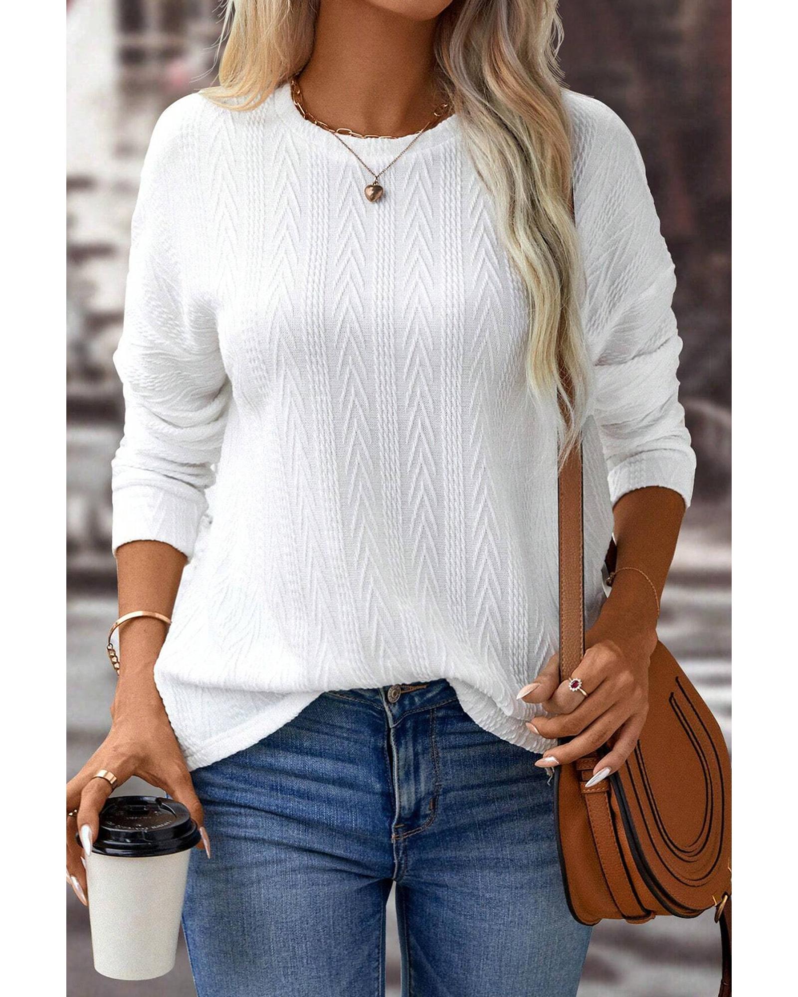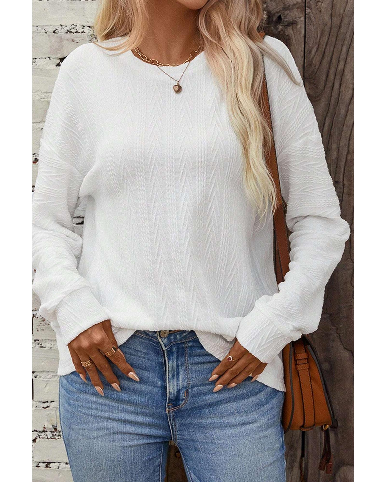 White Round Neck Drop Shoulder Textured Knit Top – XL