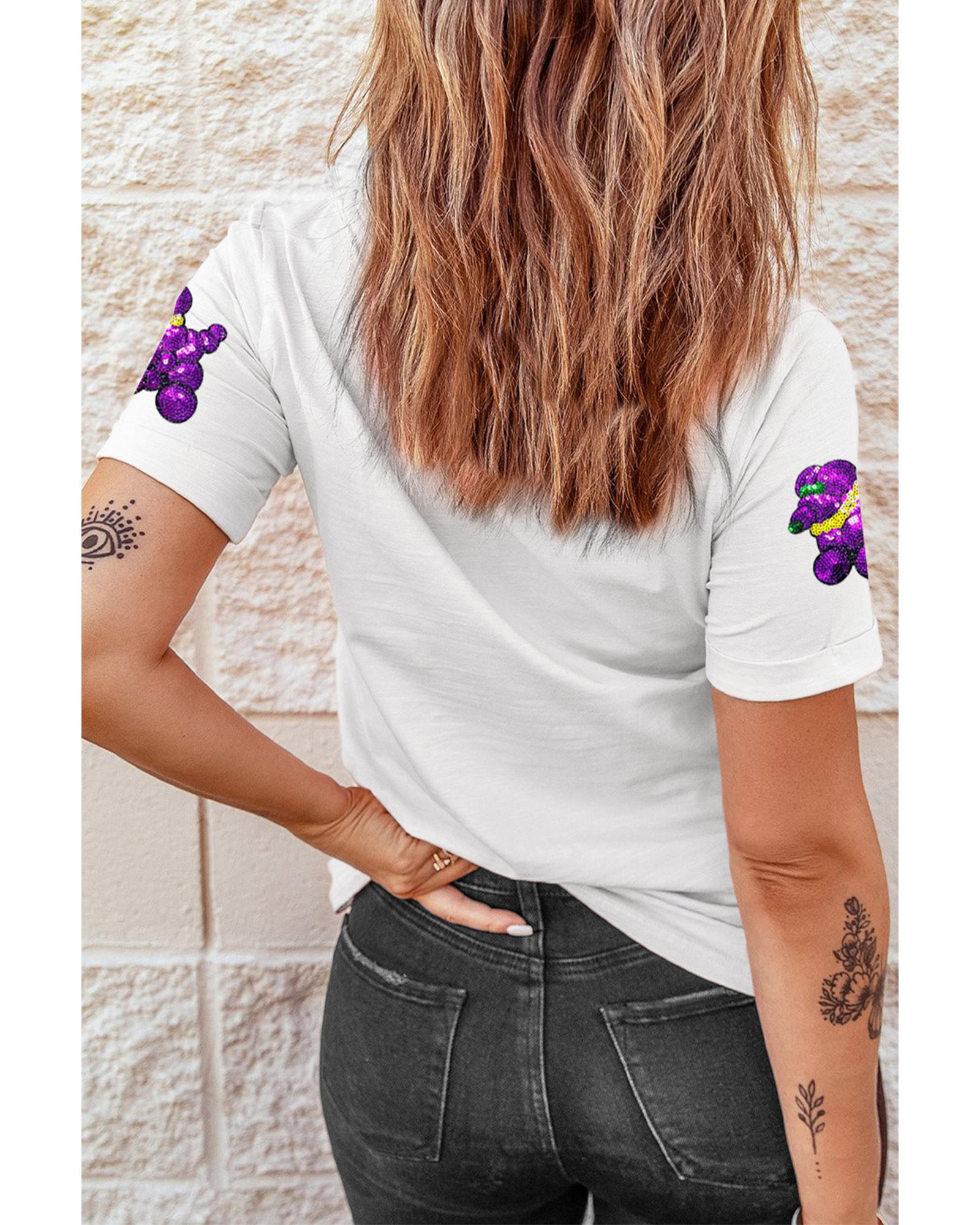 White Sequin Balloon Puppy Graphic Mardi Gras Tee – 3XL