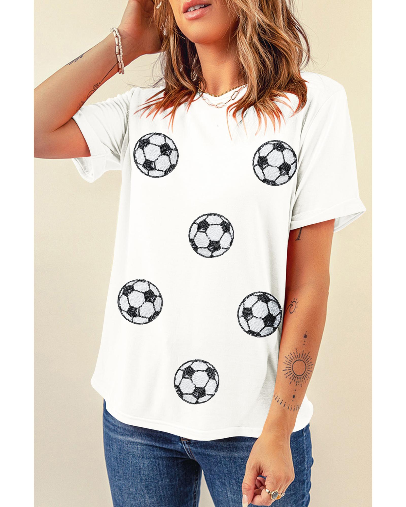 White Sequin Football Patched Graphic Game Day T Shirt – XL