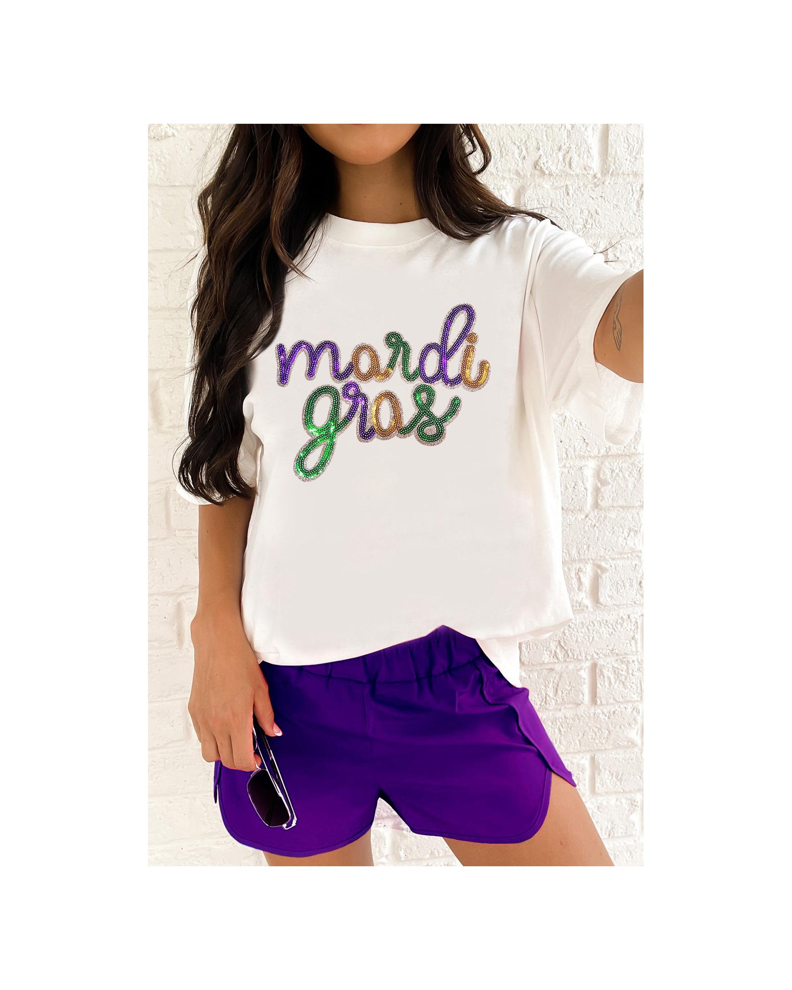 - White Sequin Mardi Gras Graphic T