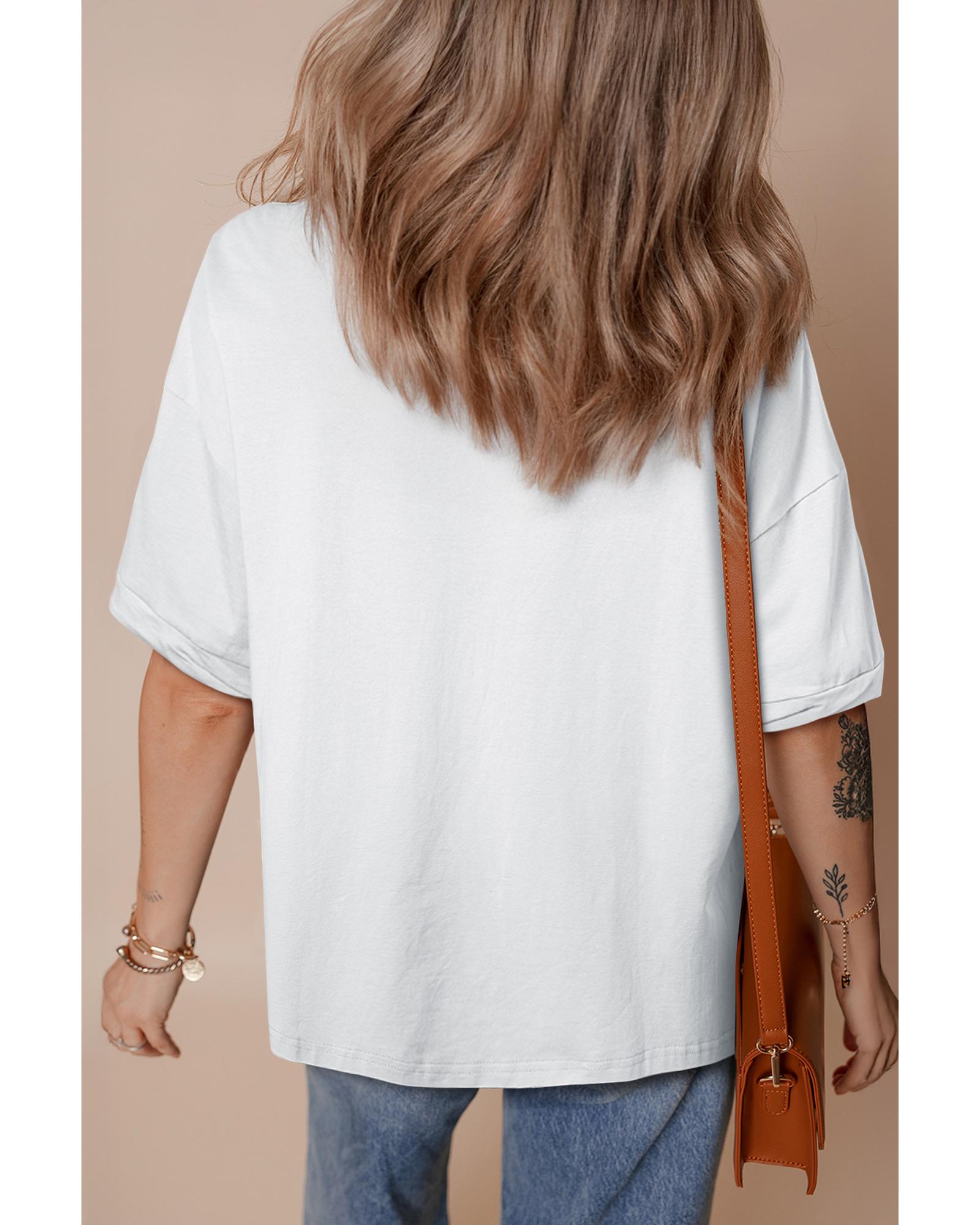 White Sequin stars & stripes Graphic Drop Shoulder Loose T Shirt – L