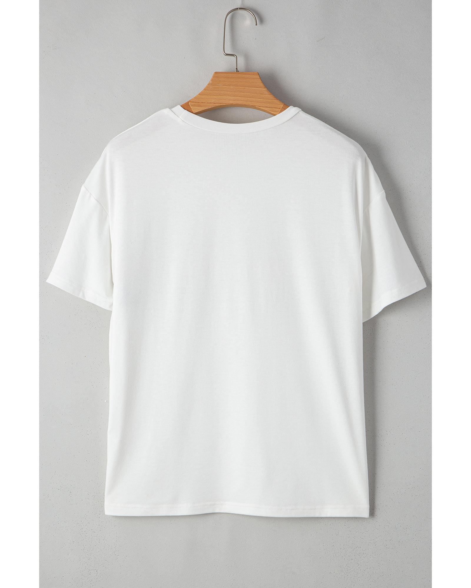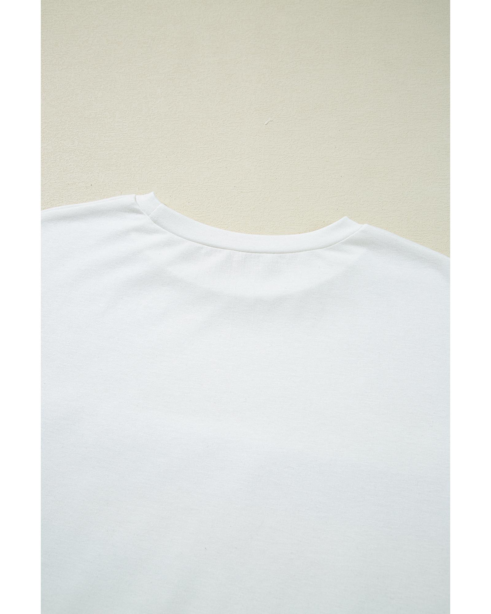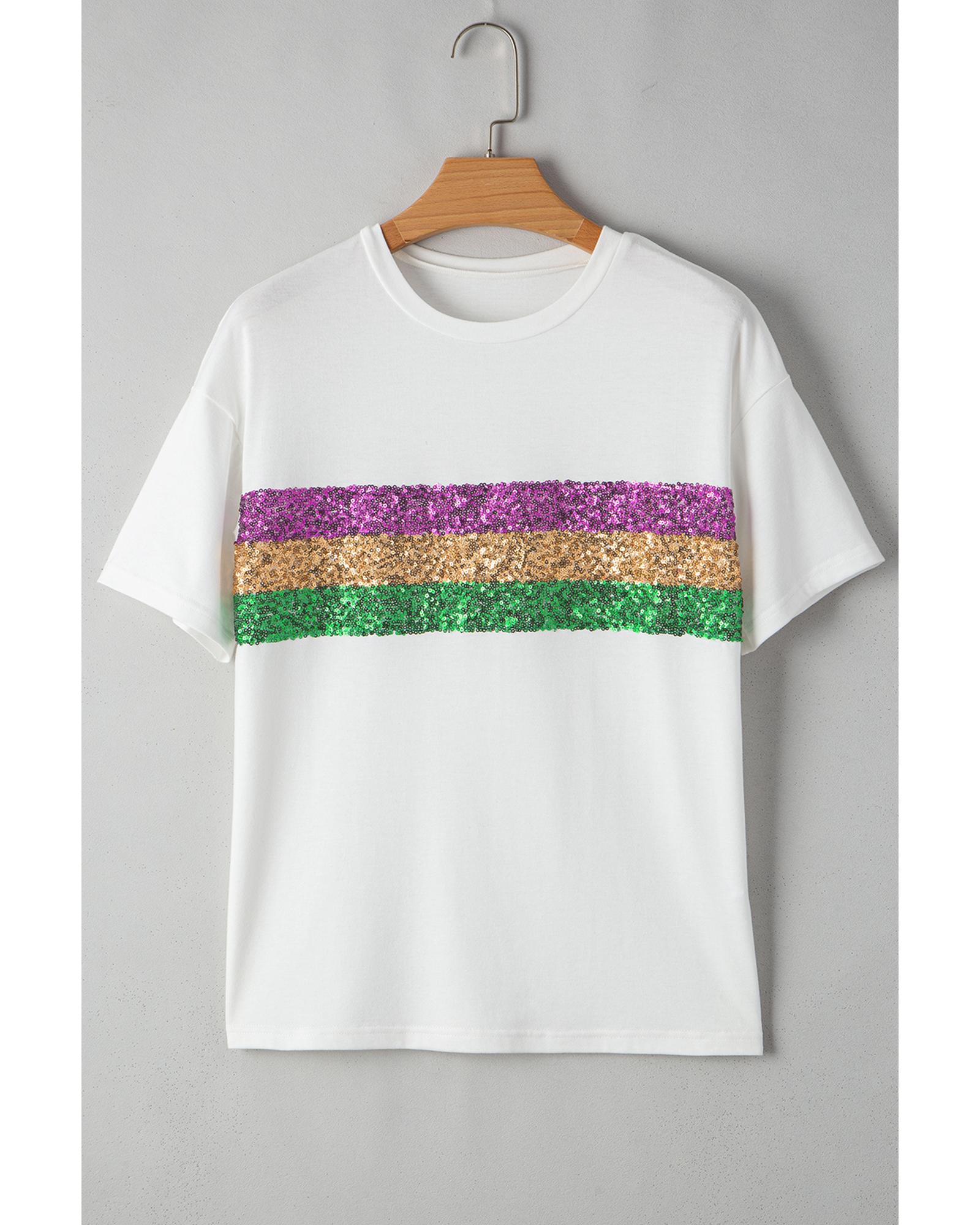 White Sequin Stripes Patchwork Mardi Gras Crew Neck T Shirt – L