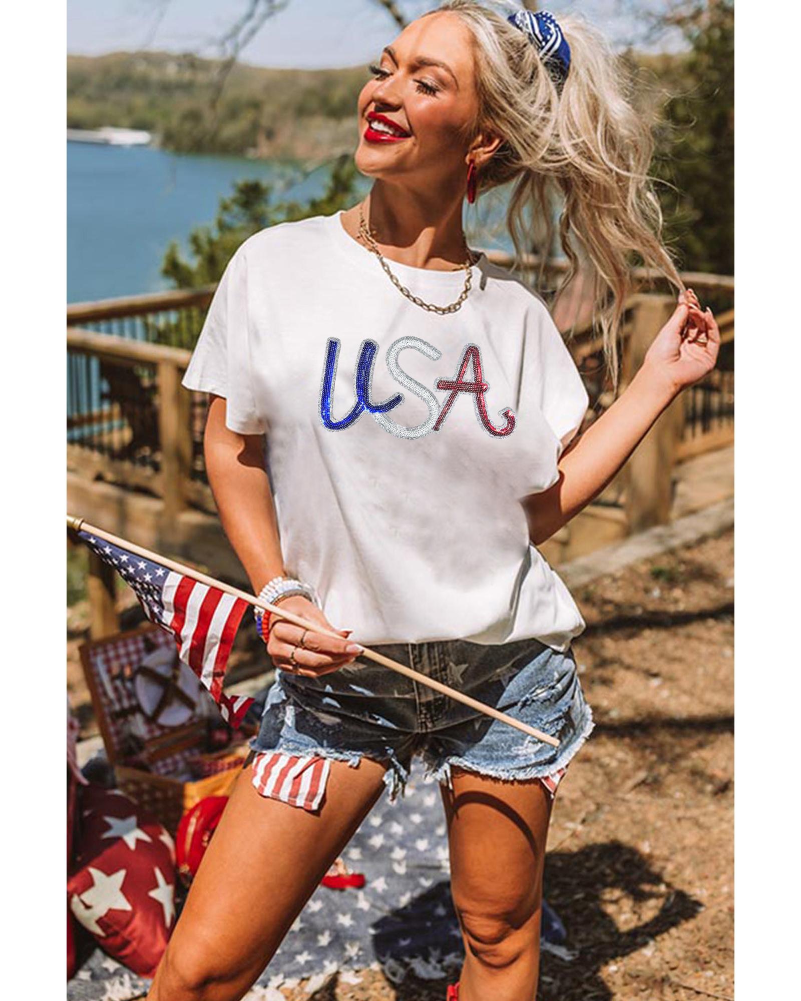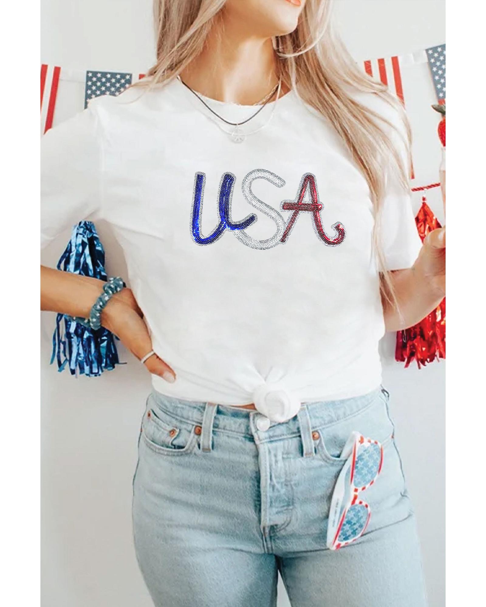 White Sequin USA Graphic Crew Neck Patriotic Tee – 3XL