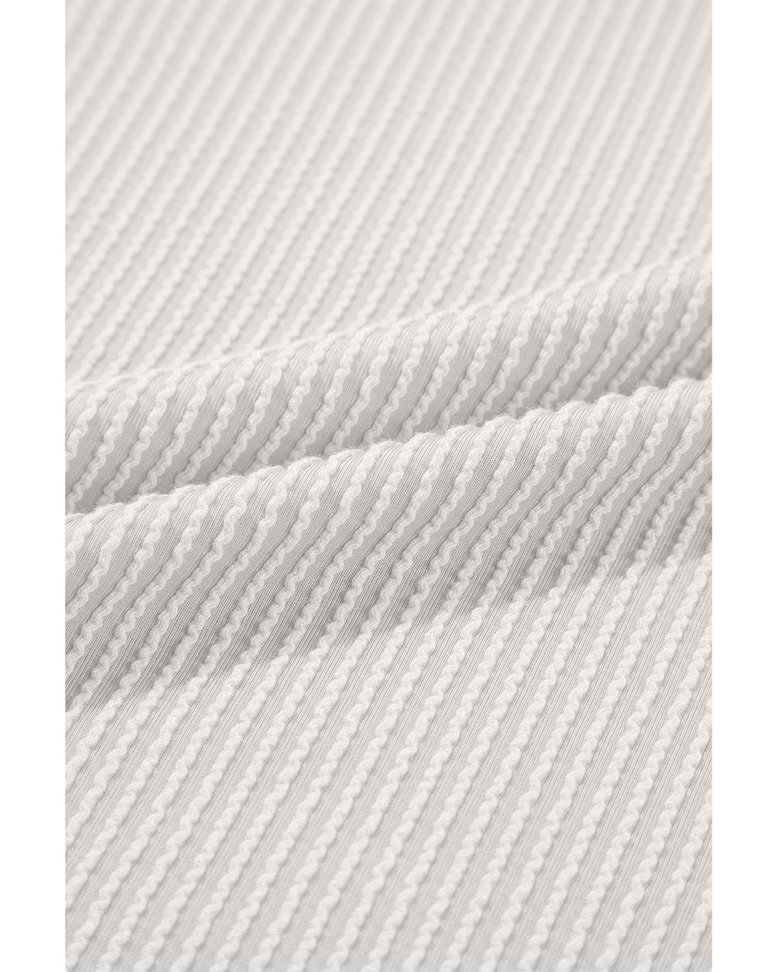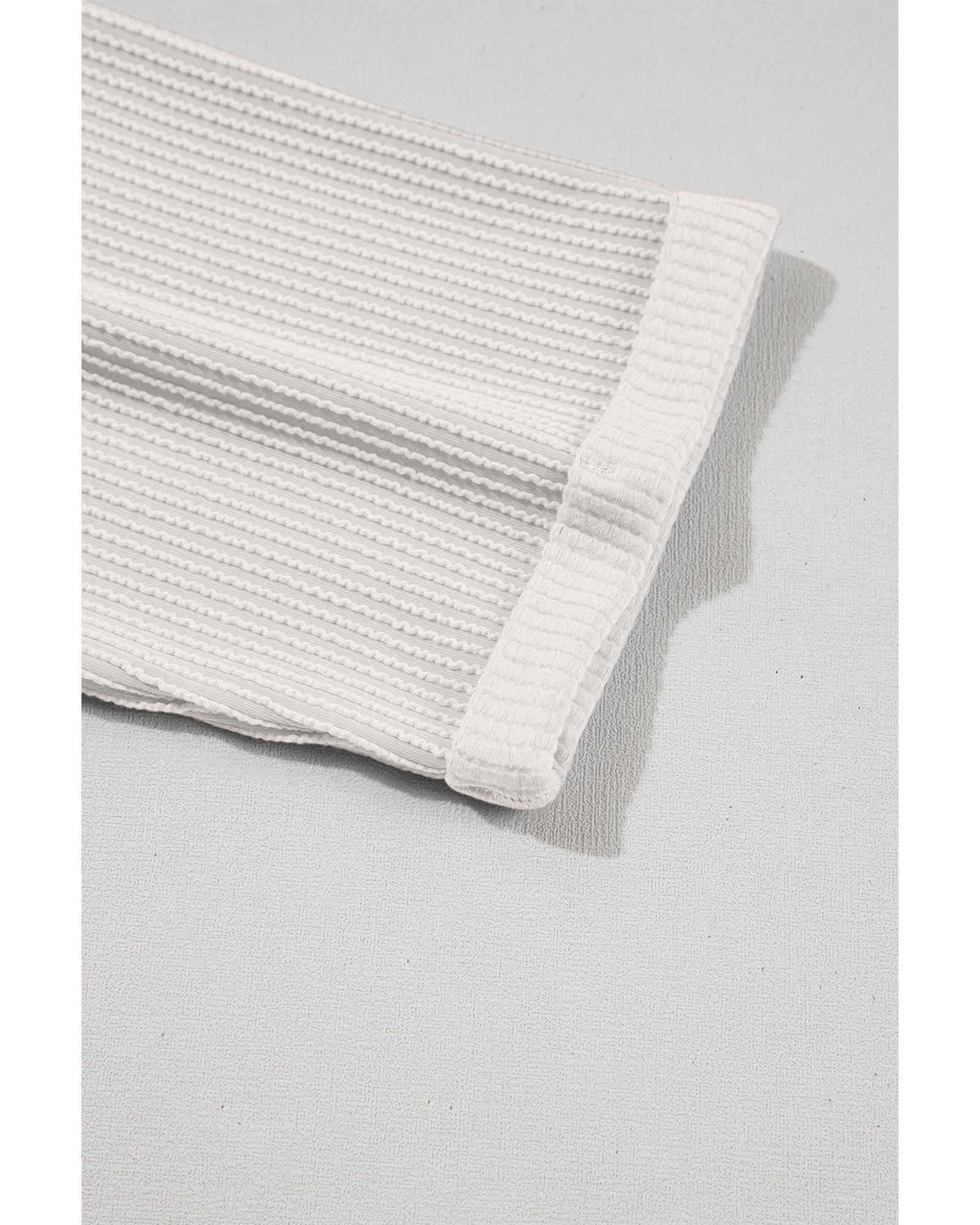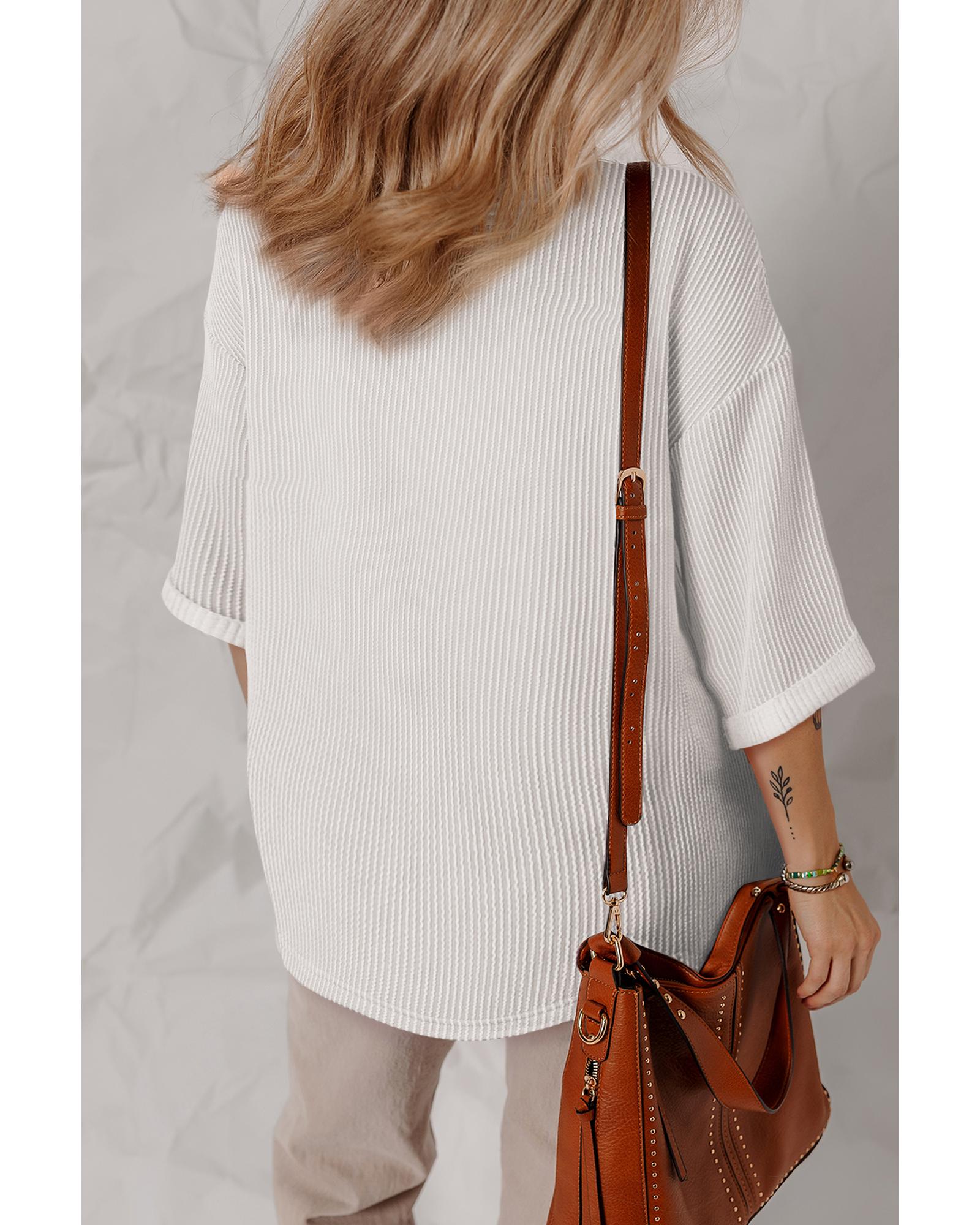 White Solid Color Corded Drop Shoulder 3/4 Sleeve V Neck Top – 2XL