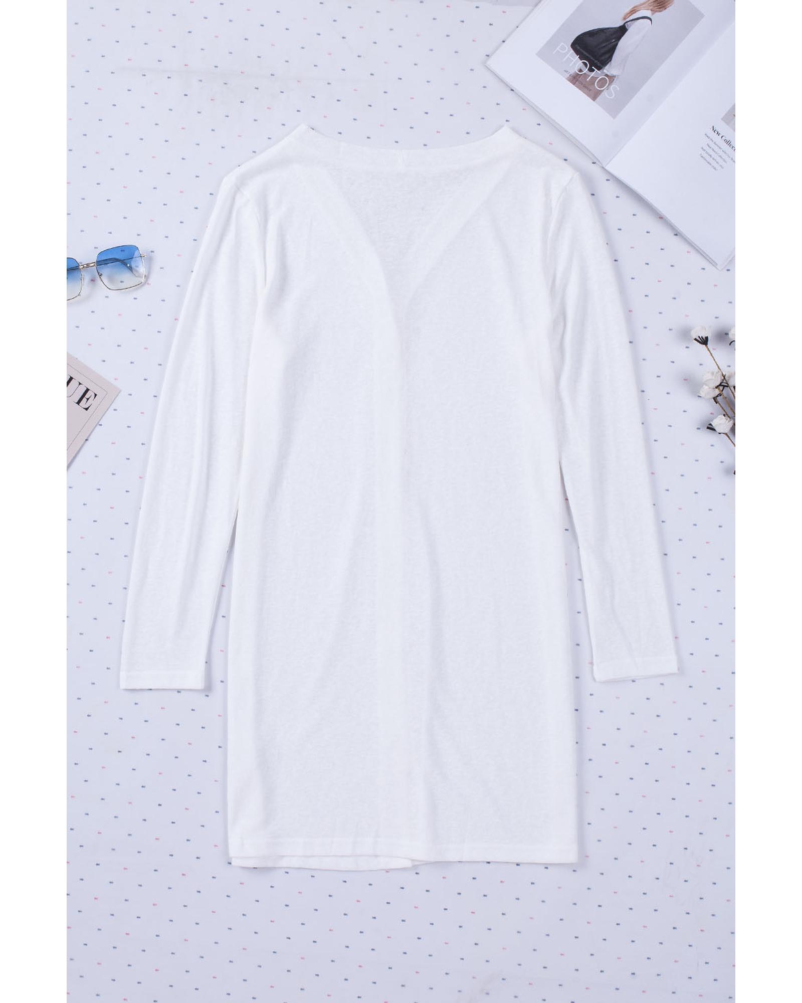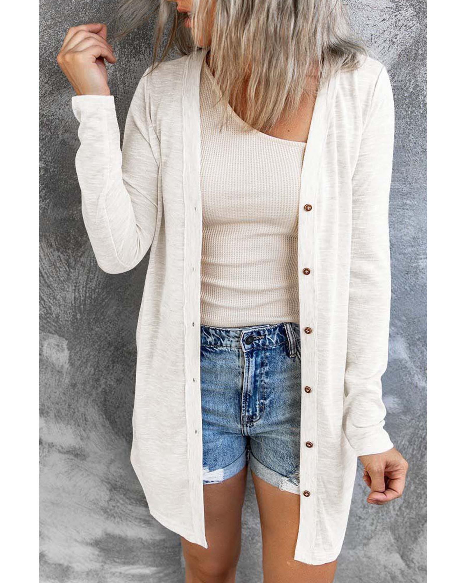 White Solid Color Open-Front Buttons Cardigan – 2XL