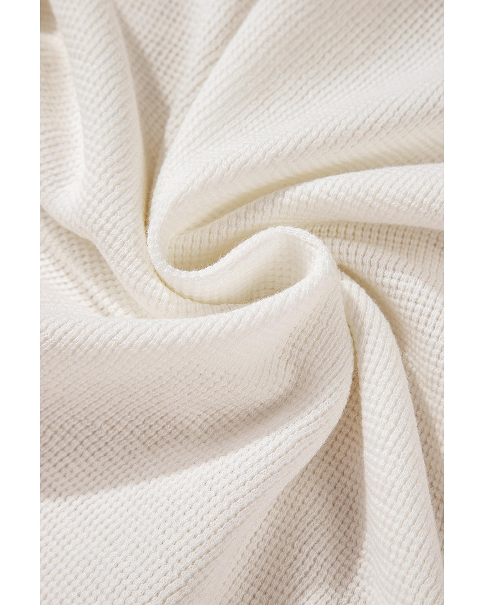 White Solid Color Waffle Half Button Long Sleeve Top – M