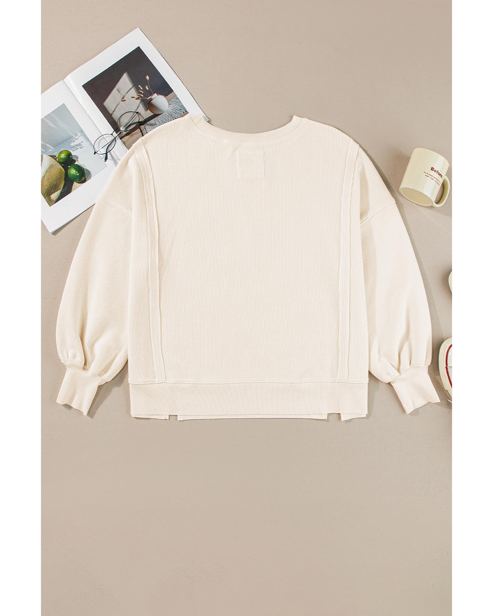 White Solid Color Waffle Knit Drop Shoulder Plus Size Sweatshirt – 1X