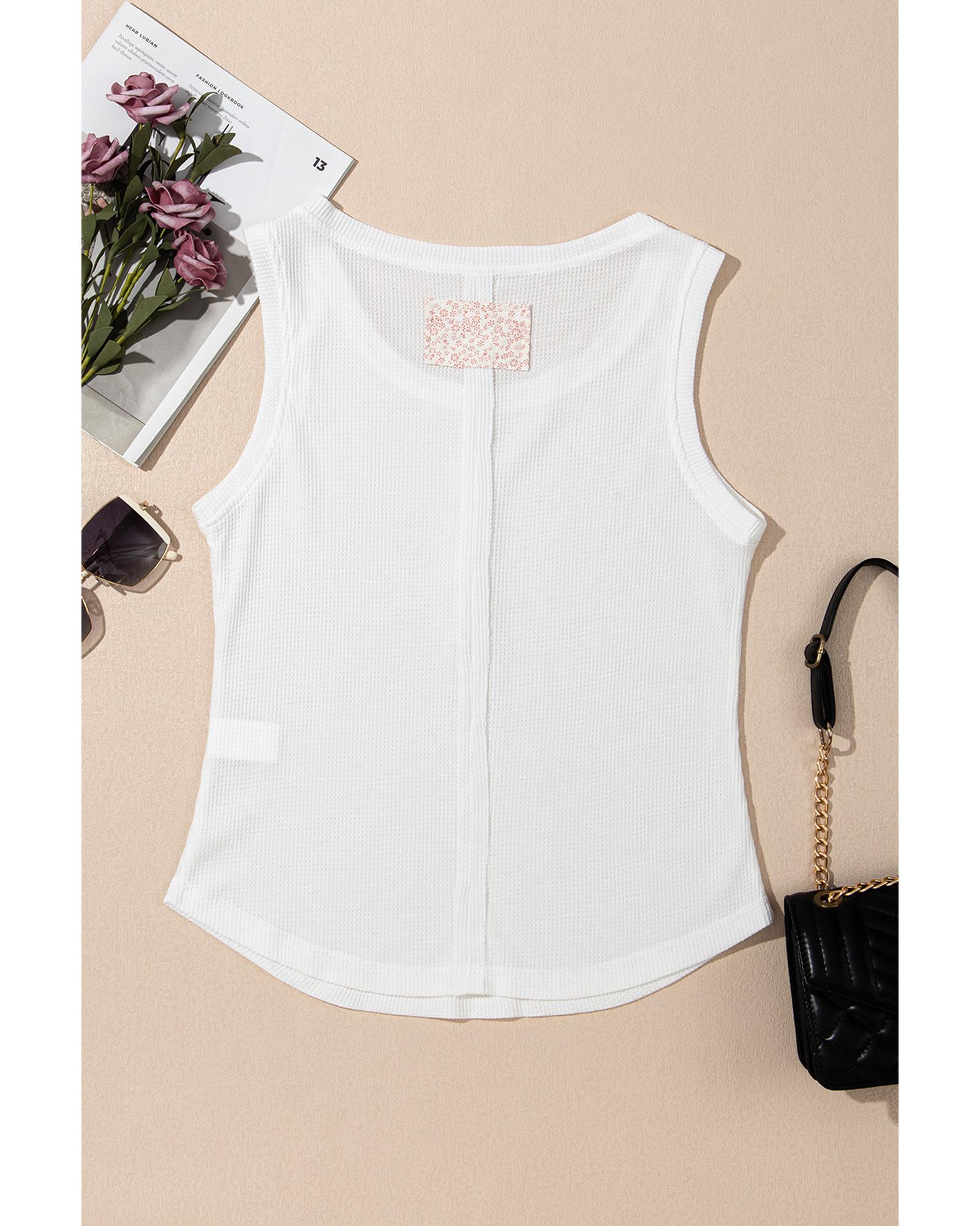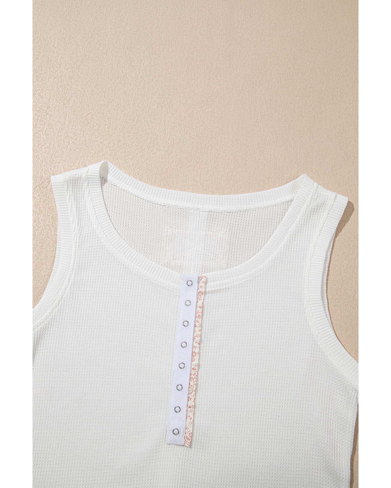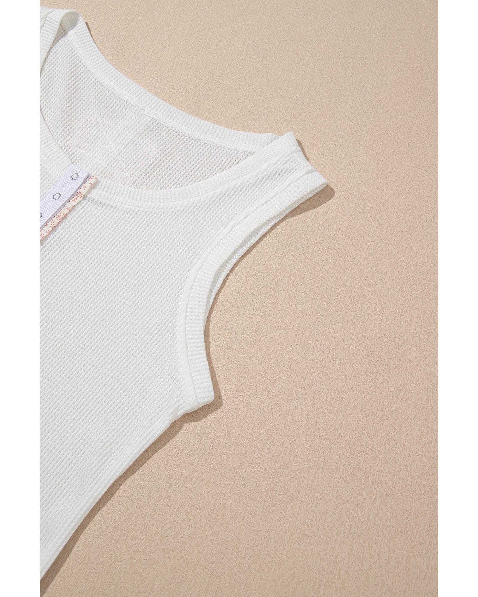 White Solid Color Waffle Knit Half Buttons Tank Top – M