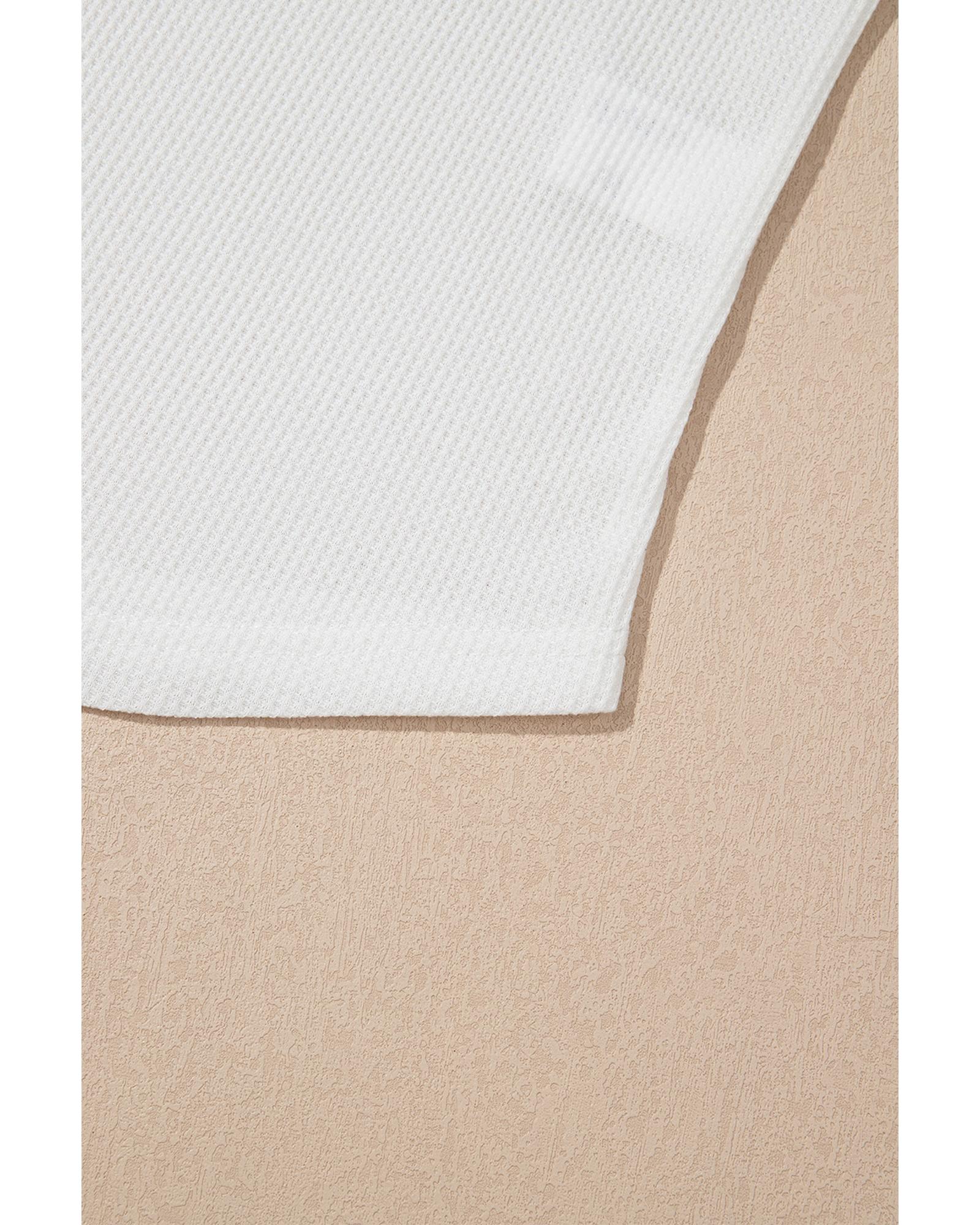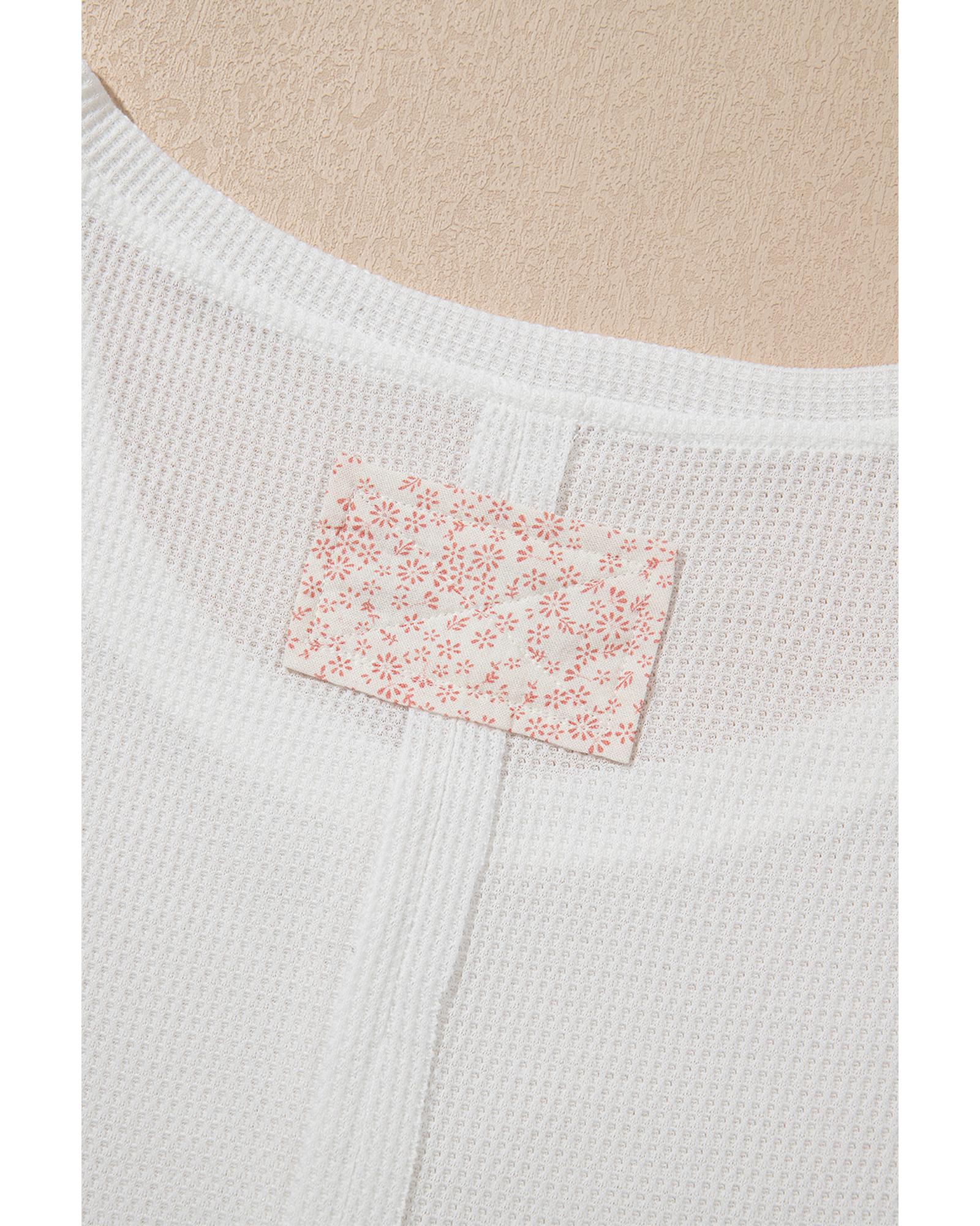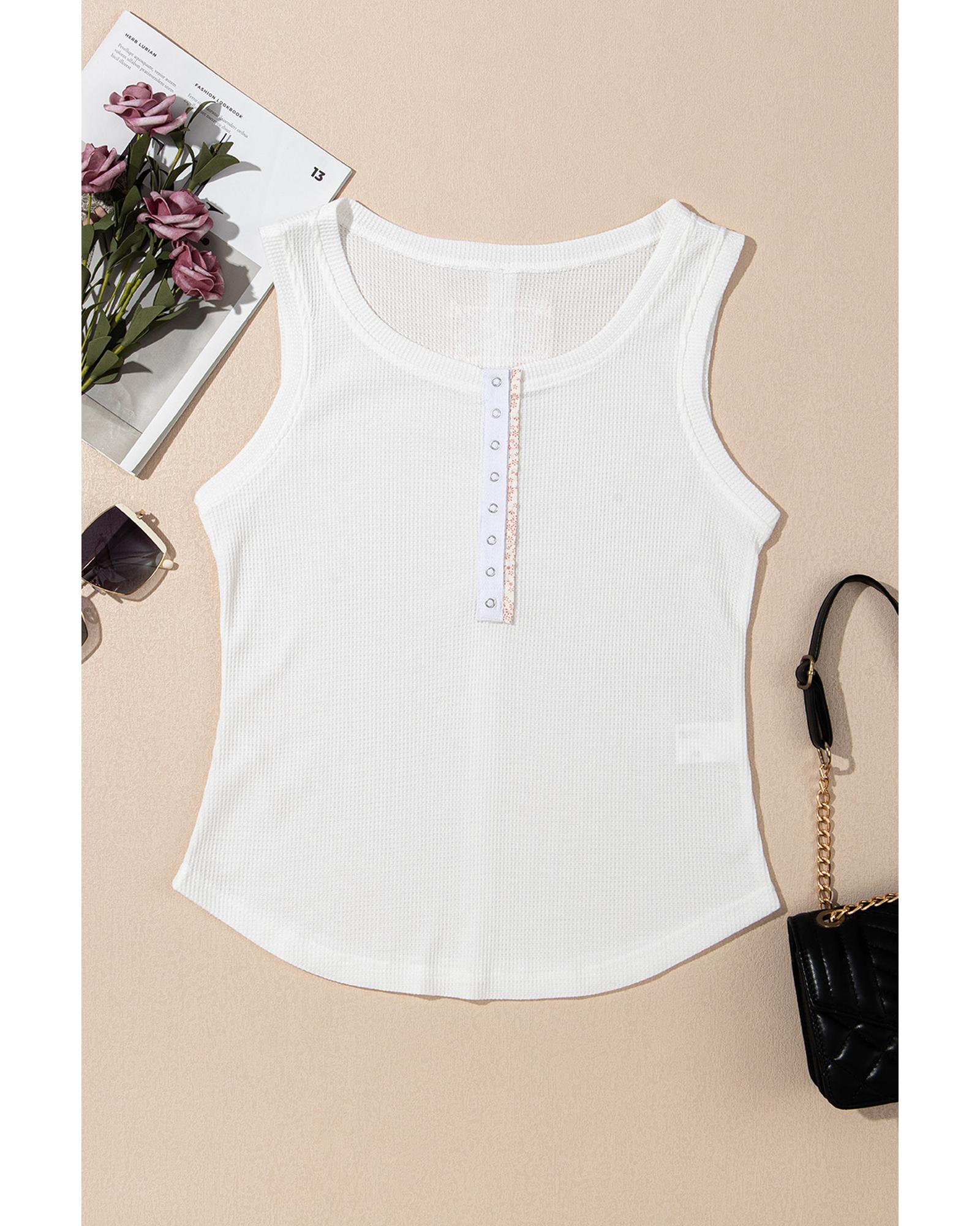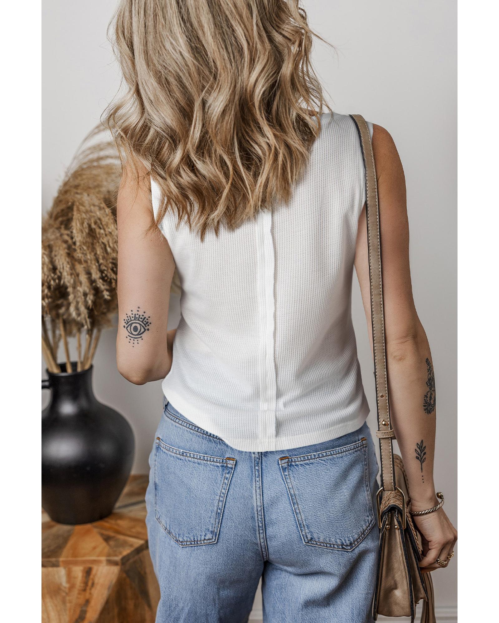 White Solid Color Waffle Knit Half Buttons Tank Top – M