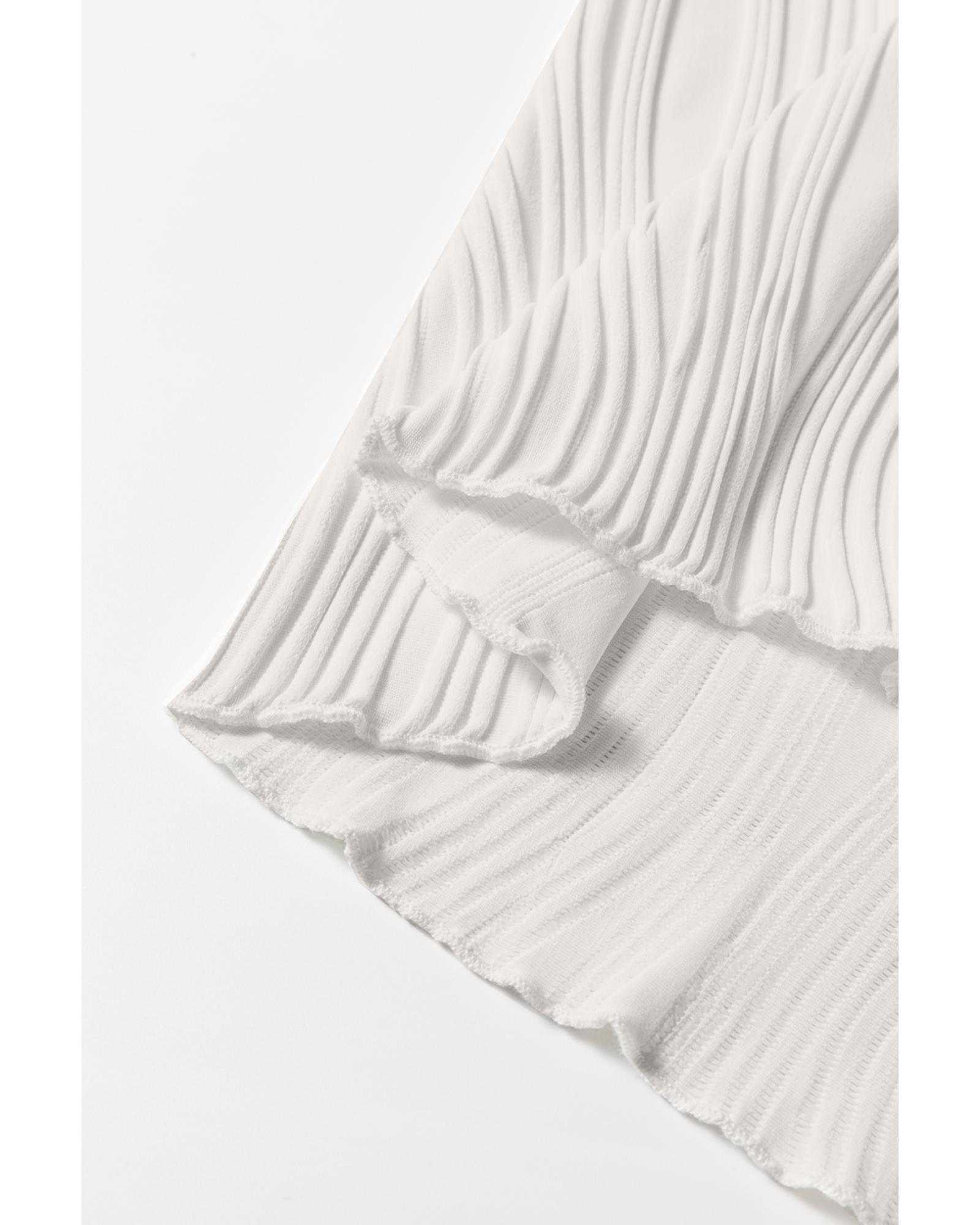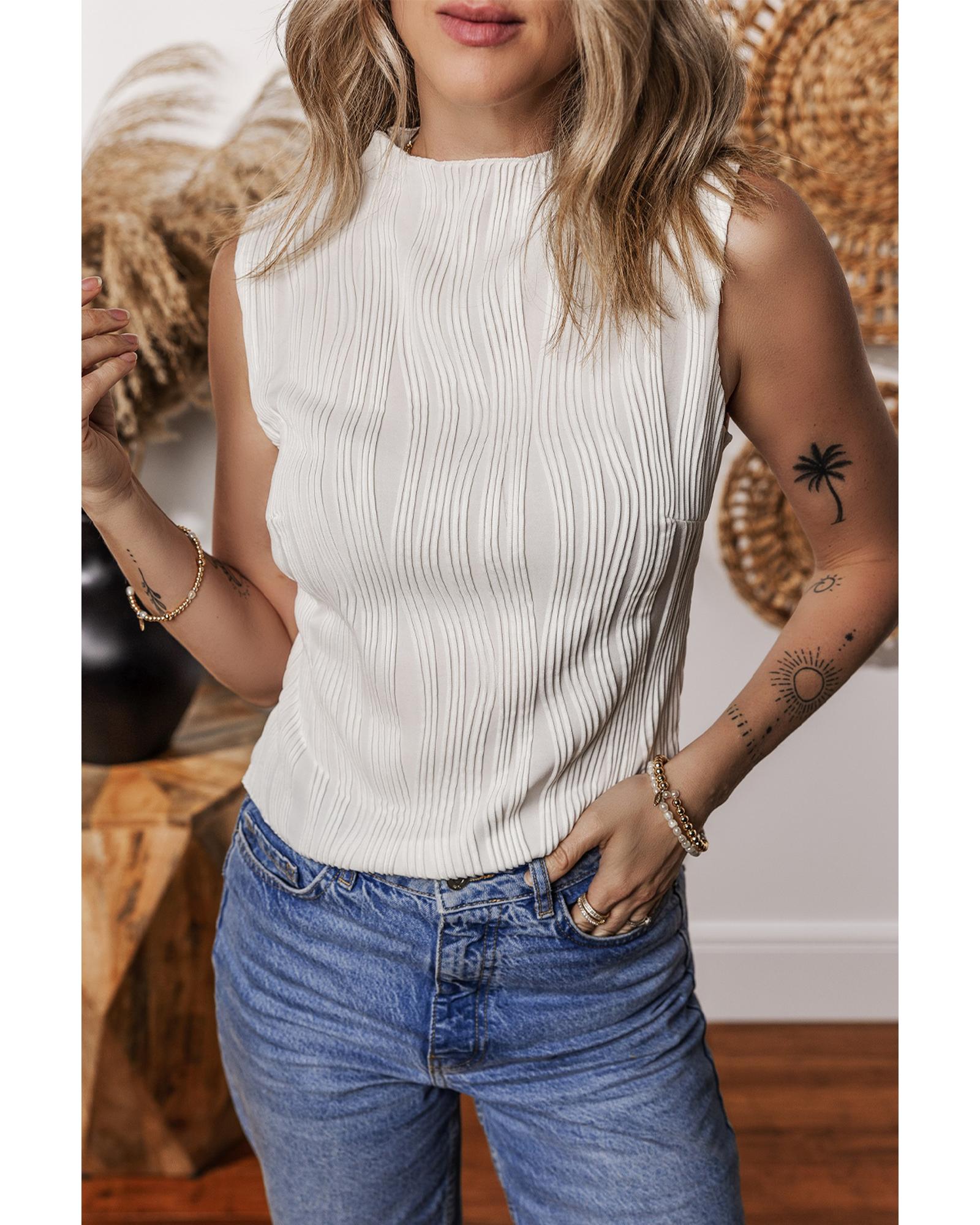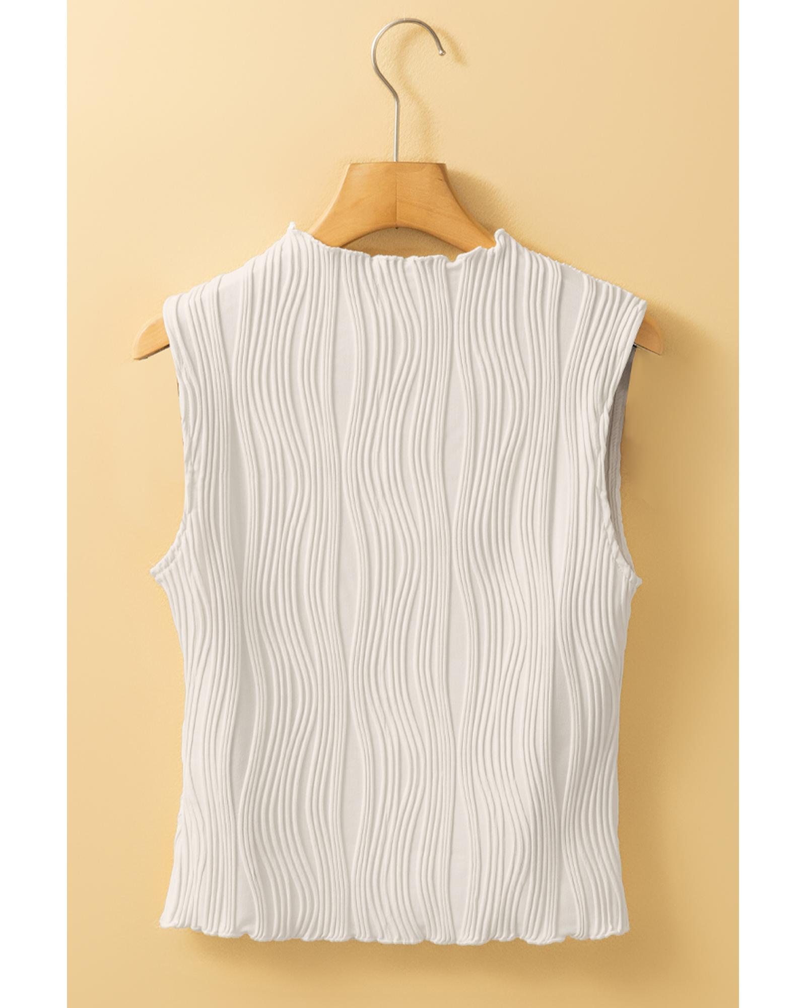 White Solid Color Wavy Textured Round Neck Tank Top – L